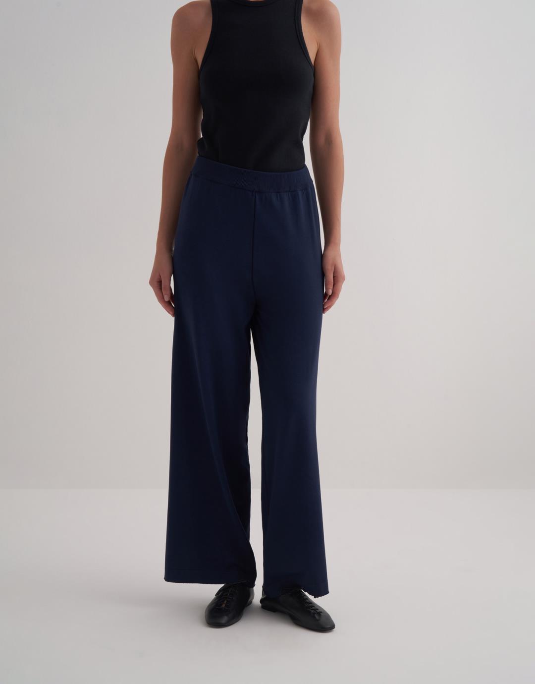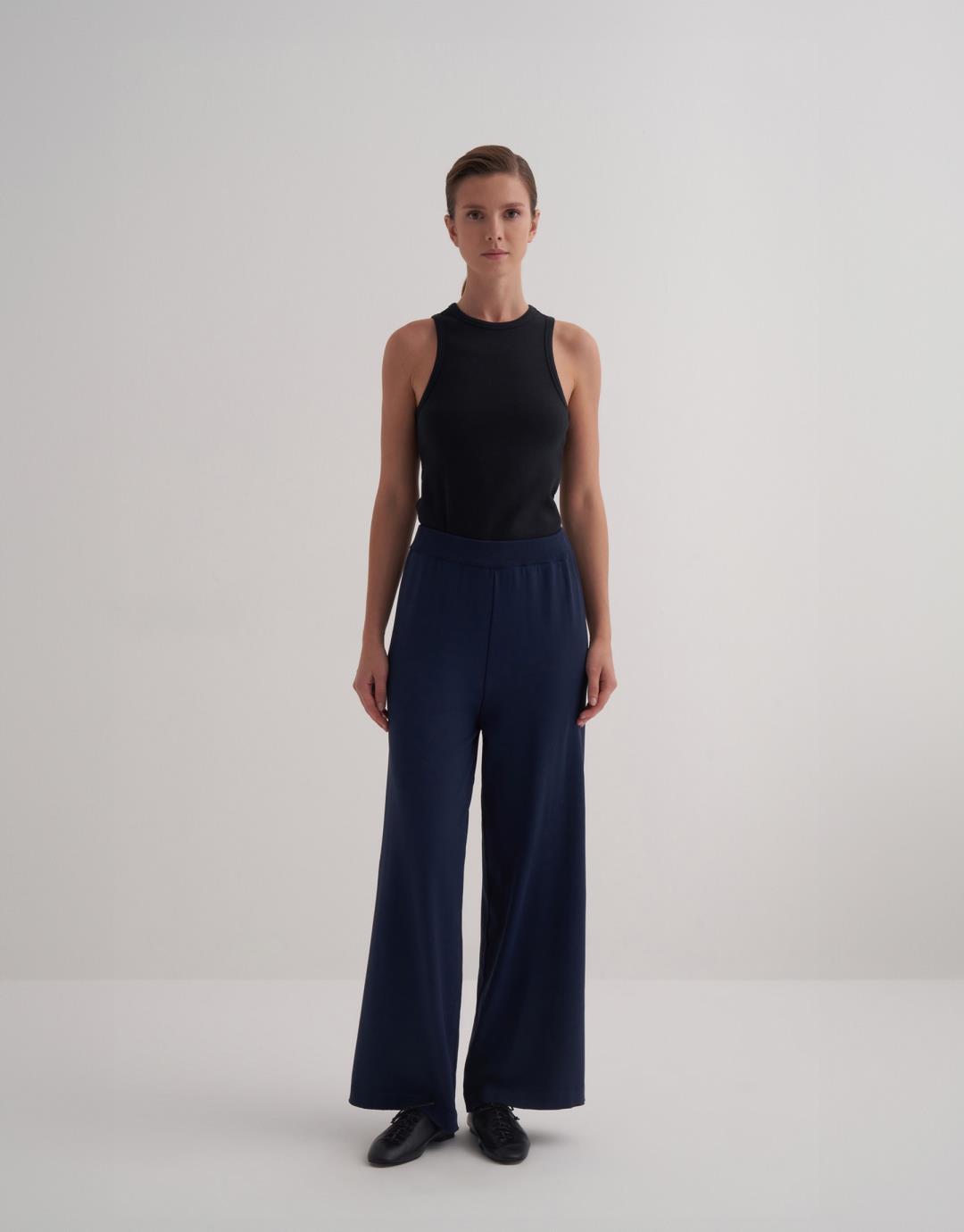 Rayon Mercerized Loose Trousers – Navy Blue – 38001