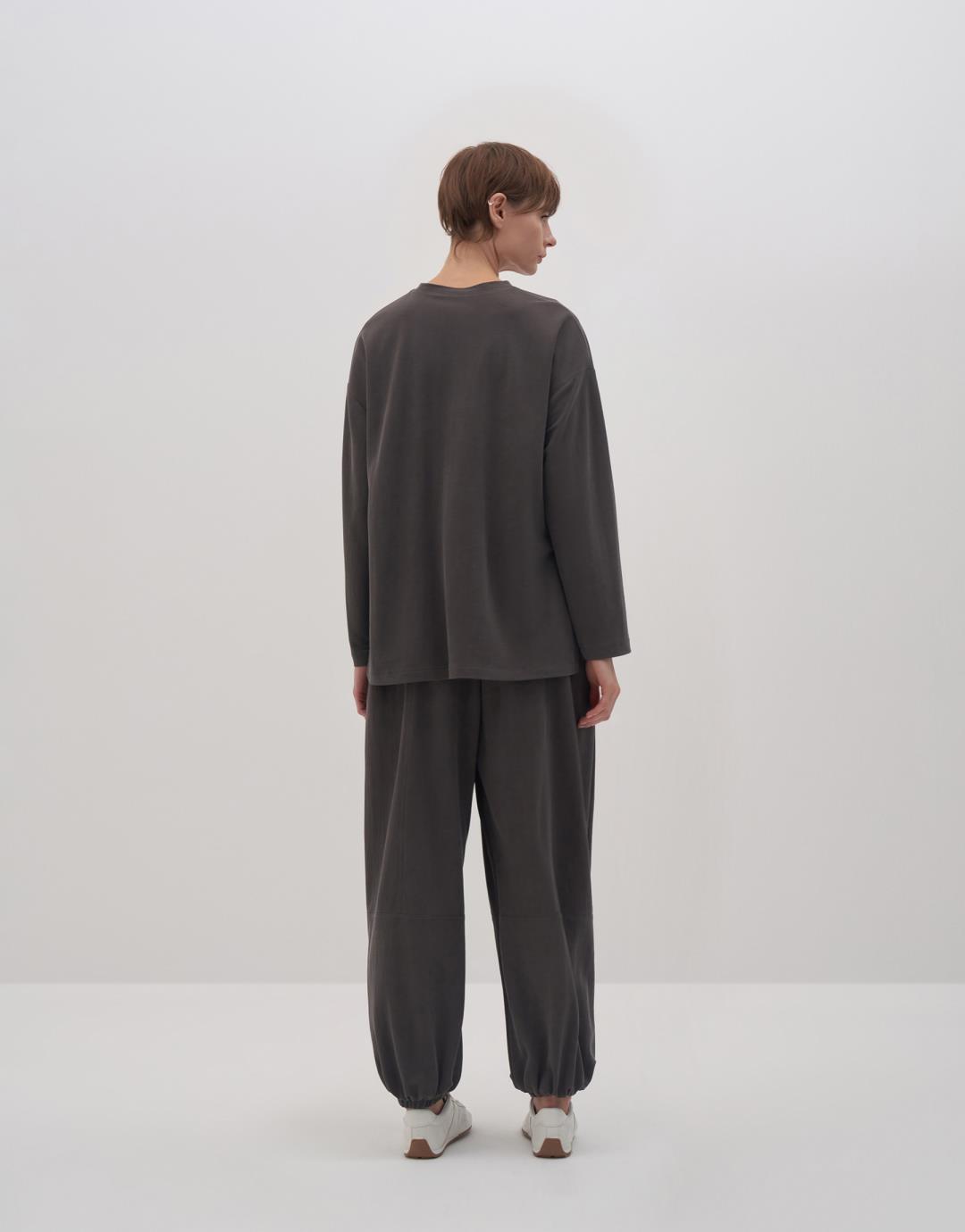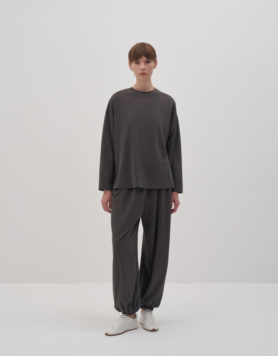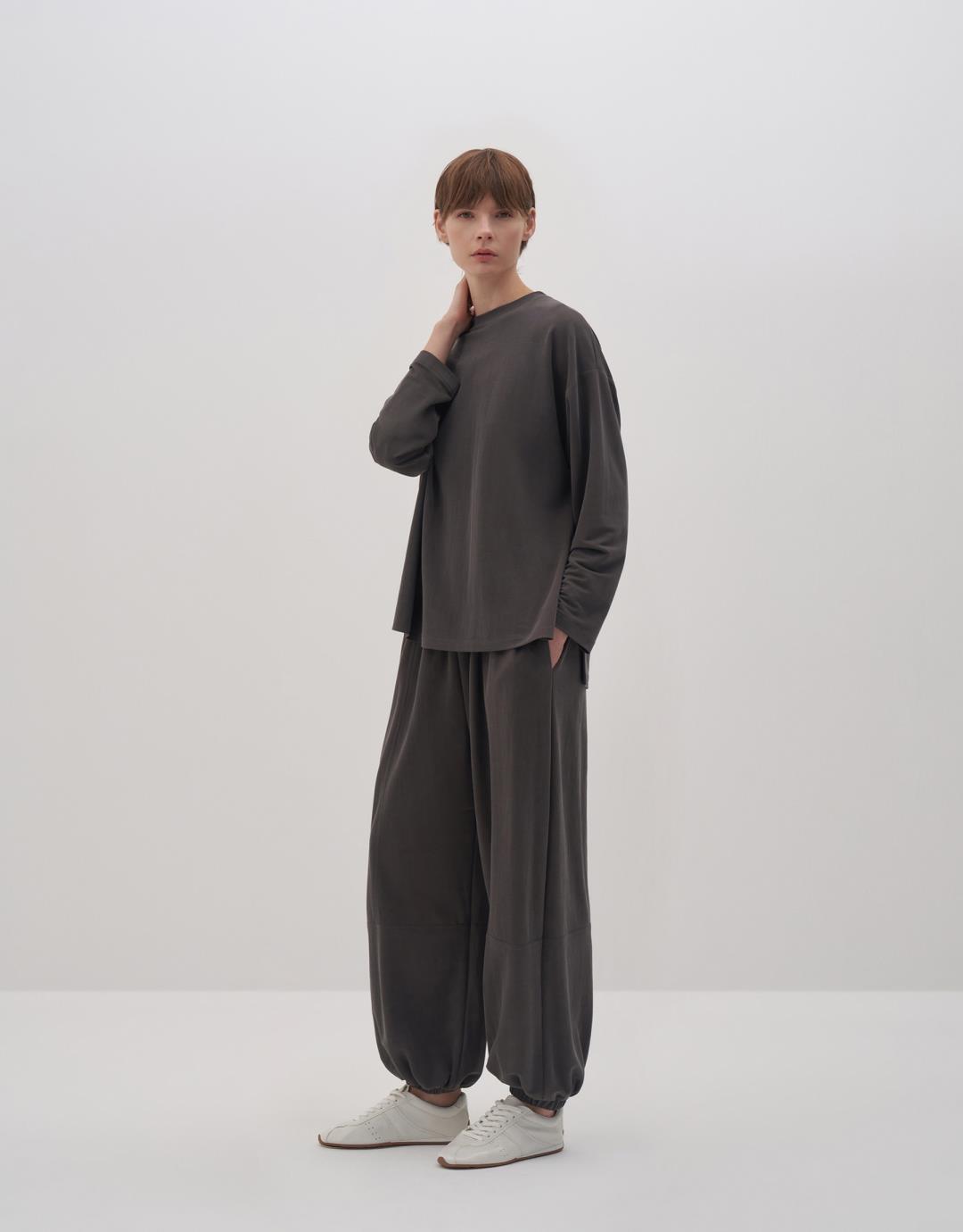 Fabric Content: 57% RAYON 43% NYLON Product Details UPPER: Loose fit. Crew neck. Side seam slit. LOWER: Loose fit. Longitudinal and transverse stitching detail. Waist and leg elastic drawstring. Two side pockets. Model Size: 36 Model Height: 1.78 The product on the model is Size 36. Usage and Washing Instructions: Tetrachloroethylene Dry Cleaning. Roller cleaning is not allowed. Tumble drying is not allowed. Bleach and bleach are not used.