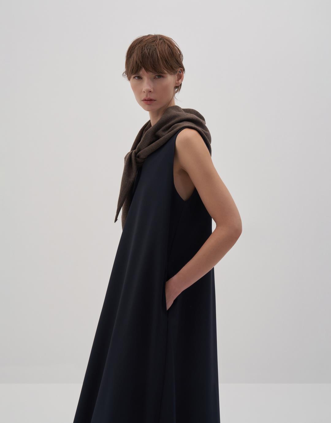 Fabric Content: 73% PES 22% VIS 5% EA Product Details: V-neck. Sleeveless. Flounce hem. Model Size: 36 Model Height: 1.78 The product on the model is S/M size. Usage and Washing Instructions: Tetrachloroethylene Dry Cleaning. No roller cleaning. No tumble drying. No bleach.