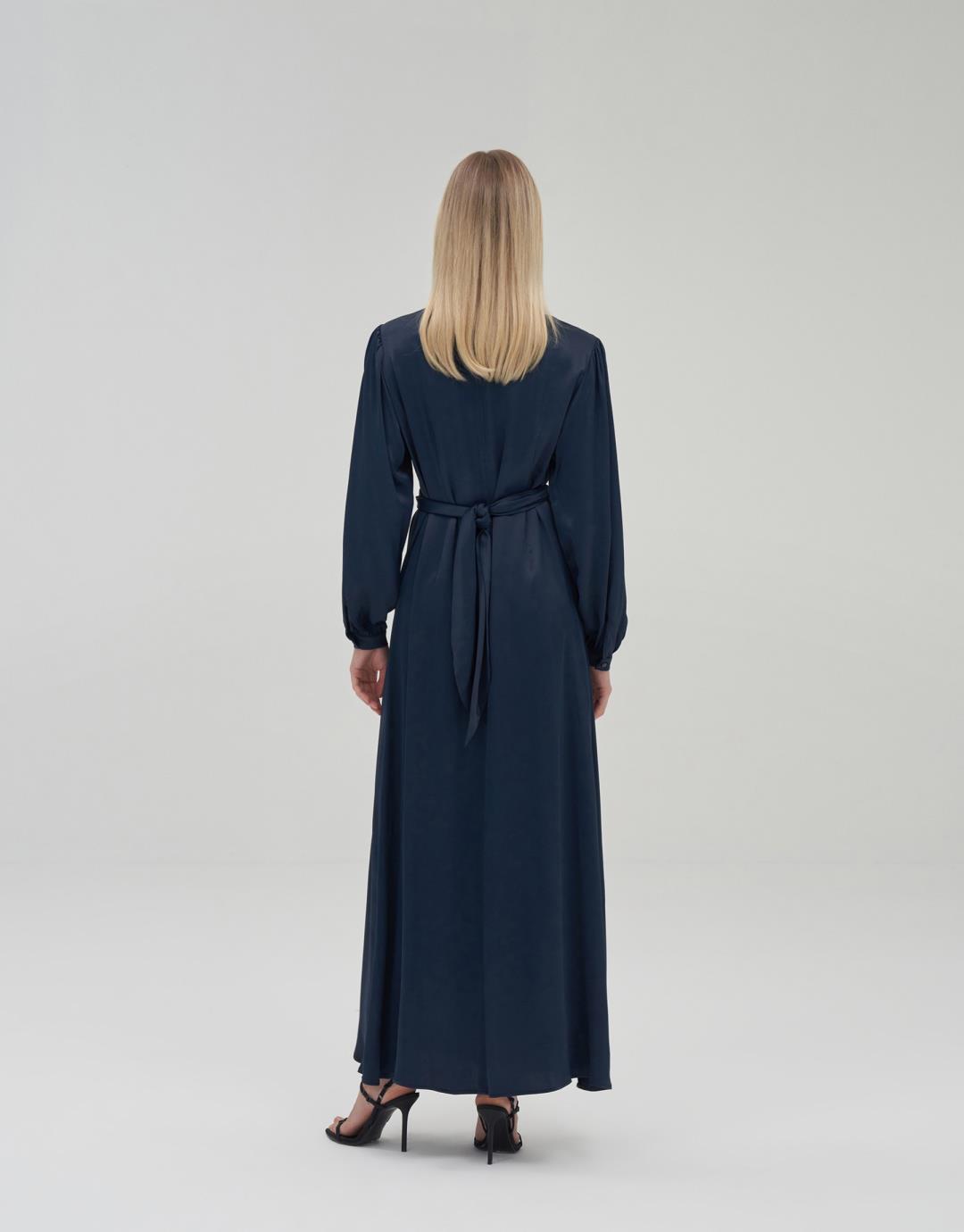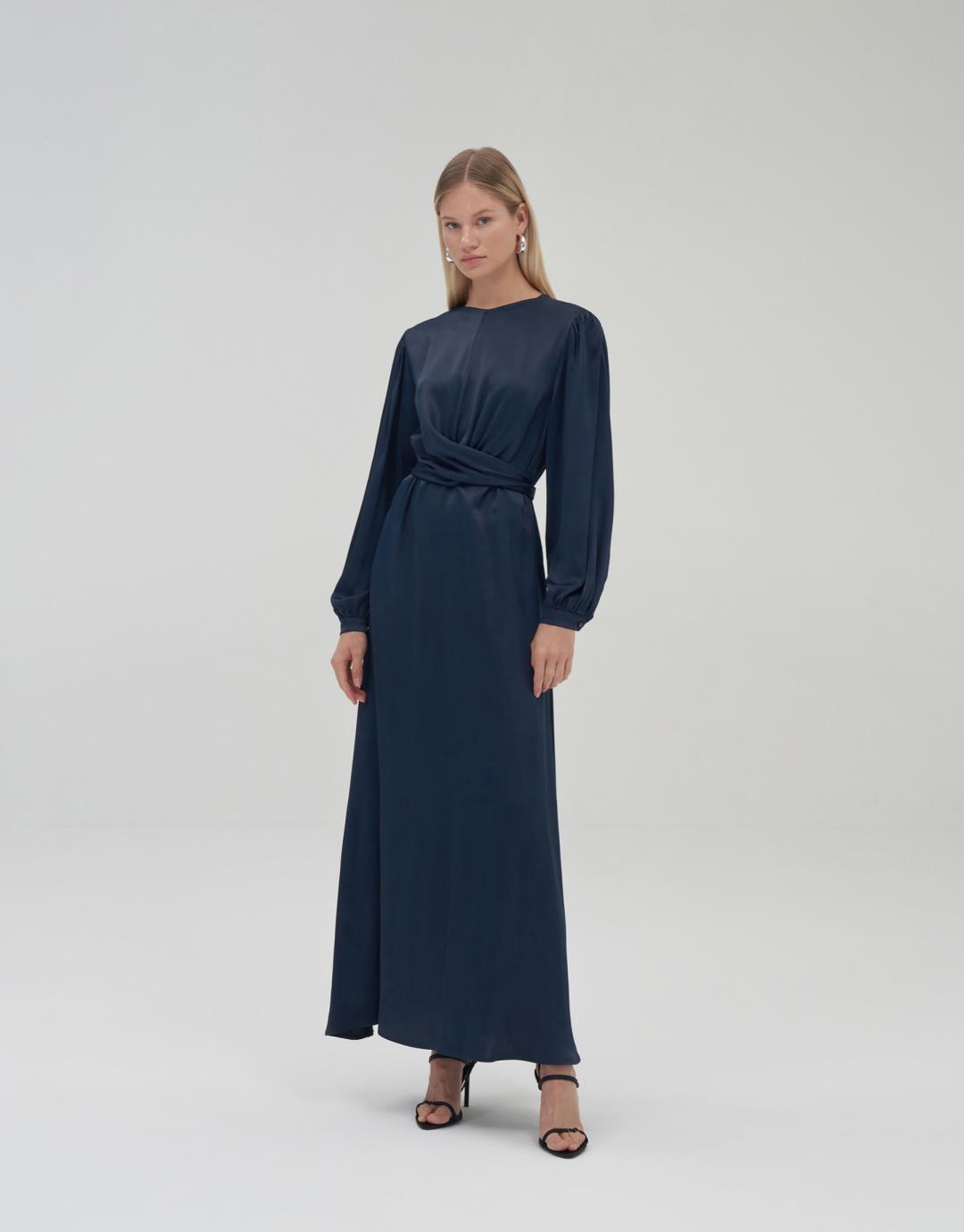 Fabric Content: 100% CV Product Details: Cuffed. Gathered sleeves. Waist tie detail. Flared cut long sleeve dress. Model Size: 36 Model Height: 1.72 The product on the model is size 36. Usage and Washing Instructions: Tetrachlorethylene Dry Cleaning. Roller cleaning is not possible. Tumble drying is not done. Bleach bleach is not used.
