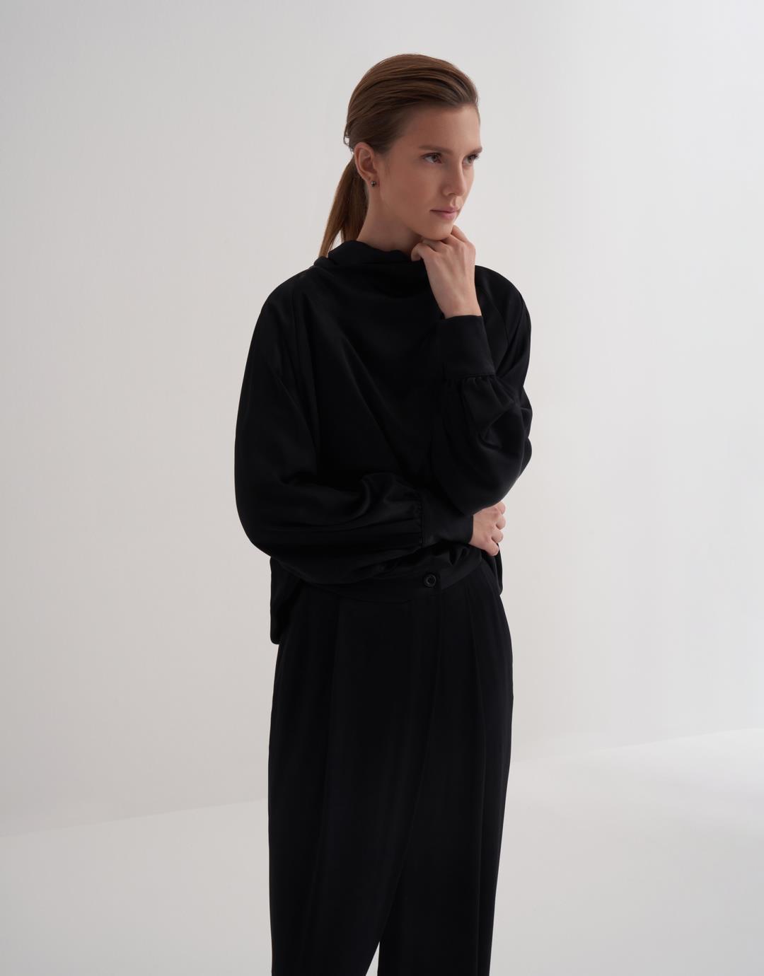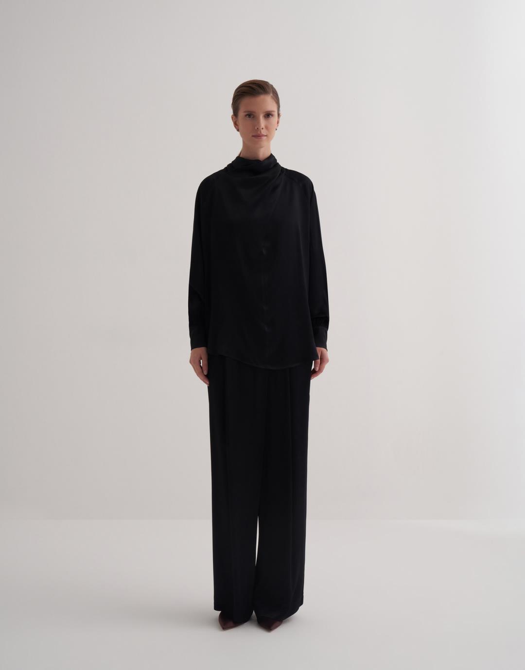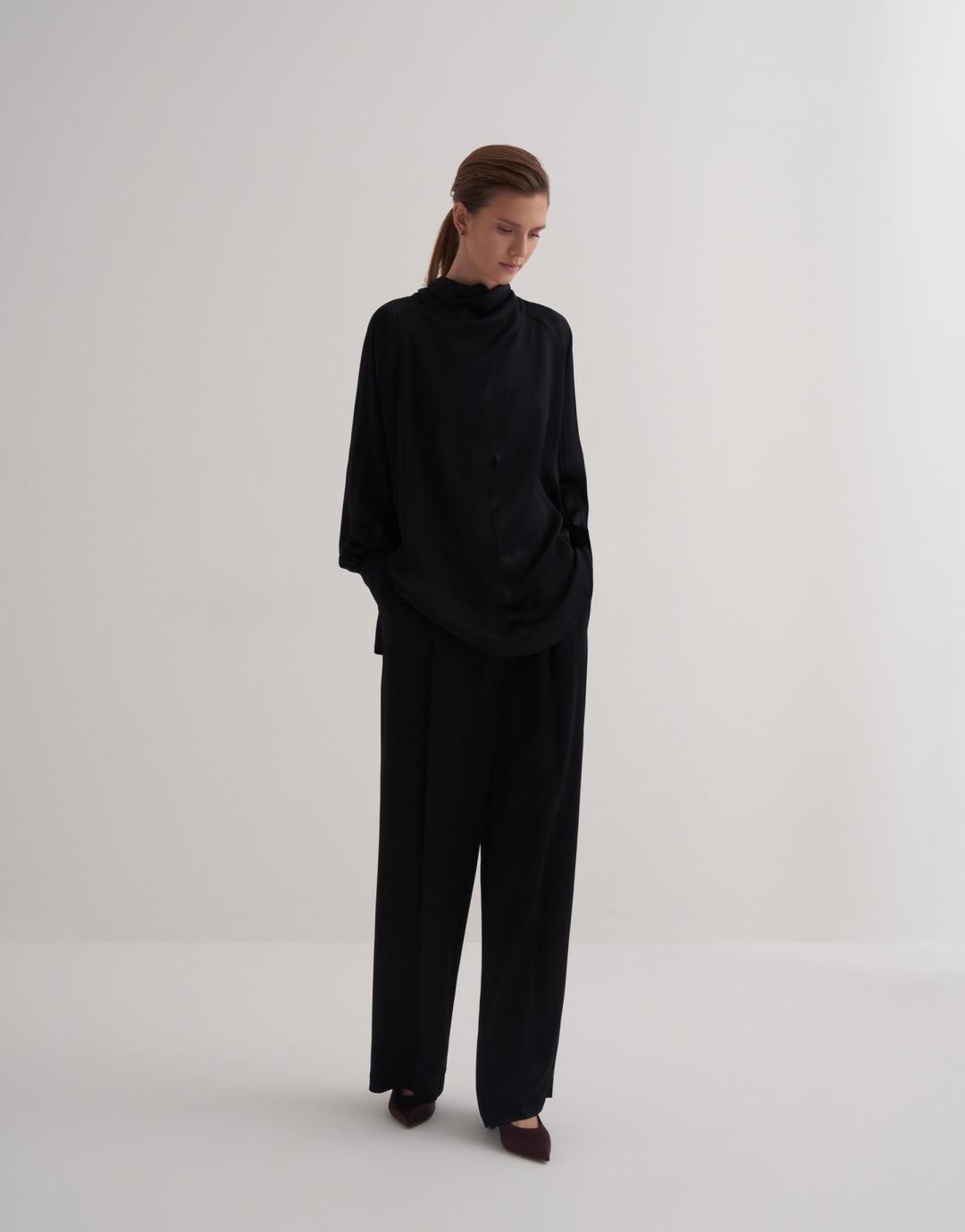 Fabric Content: 100% CV Product Details: UPPER: Cowl neck with tie-on belt. Button cuffs. LOWER: Waist with zipper and button closure belt. Wrapover cut. Two side pockets. Model Size: 36 Model Height: 1.78 The product on the model is Size 36. Usage and Washing Instructions: Tetrachloroethylene Dry Cleaning. No roller cleaning. No tumble drying. No bleach.