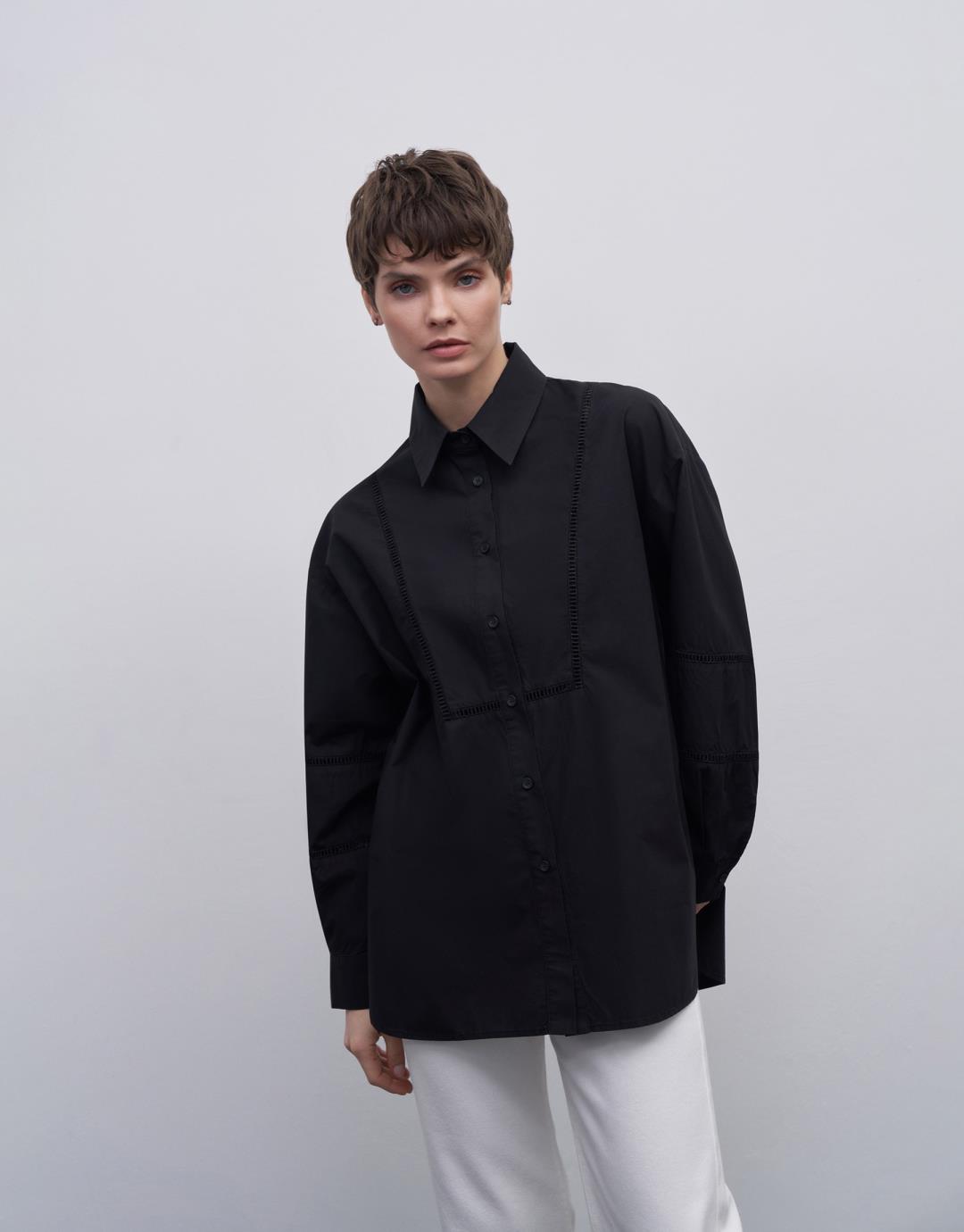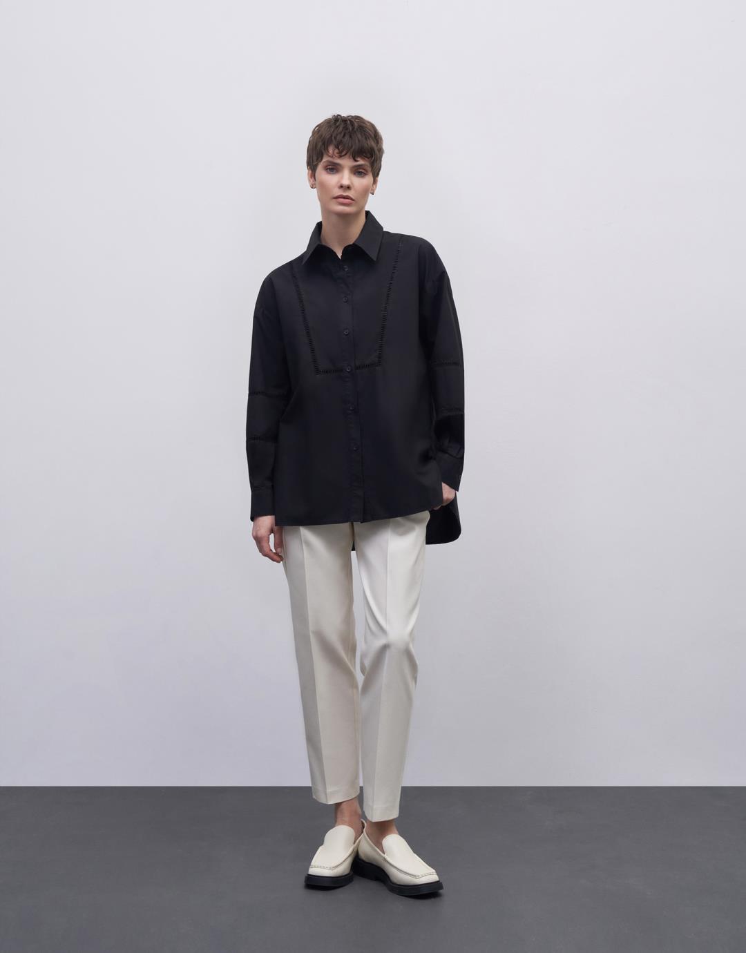 Fabric Content: 100% COTTON Product Details: Front button closure. Front yoke and sleeve with ribbon scallop detail. The back body has a yoke. Model Size: 36 Model Height: 1.72 The product on the model is size 36. Usage and Washing Instructions: Tetrachlorethylene Dry Cleaning. Roller cleaning is not possible. Tumble drying is not done. Bleach bleach is not used.