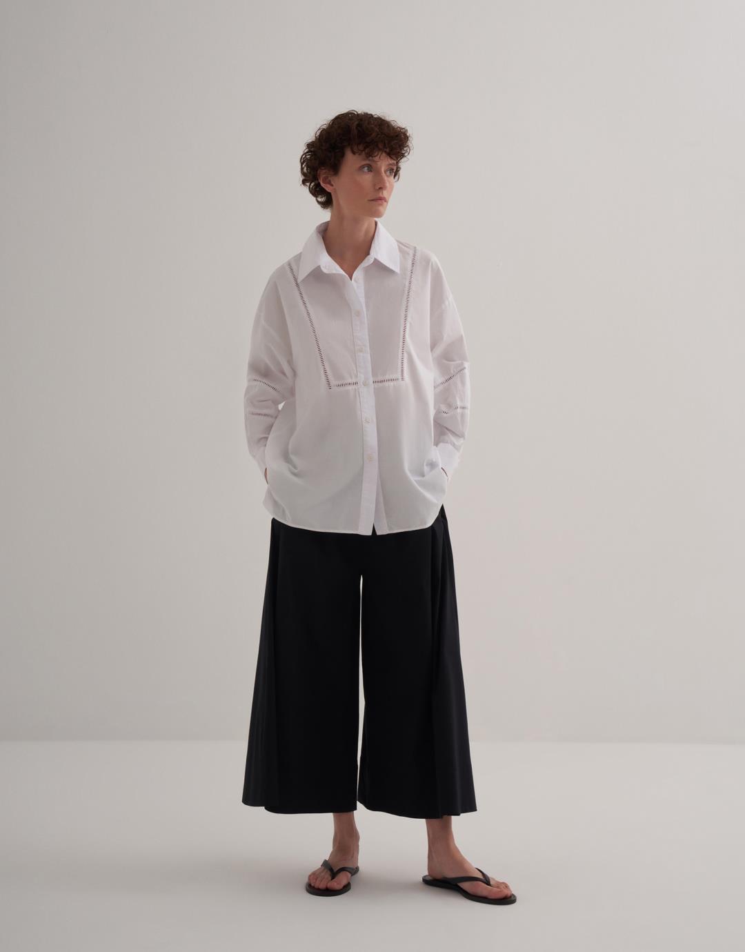 Scallop Detailed Cotton Shirt – Ecru – 24140