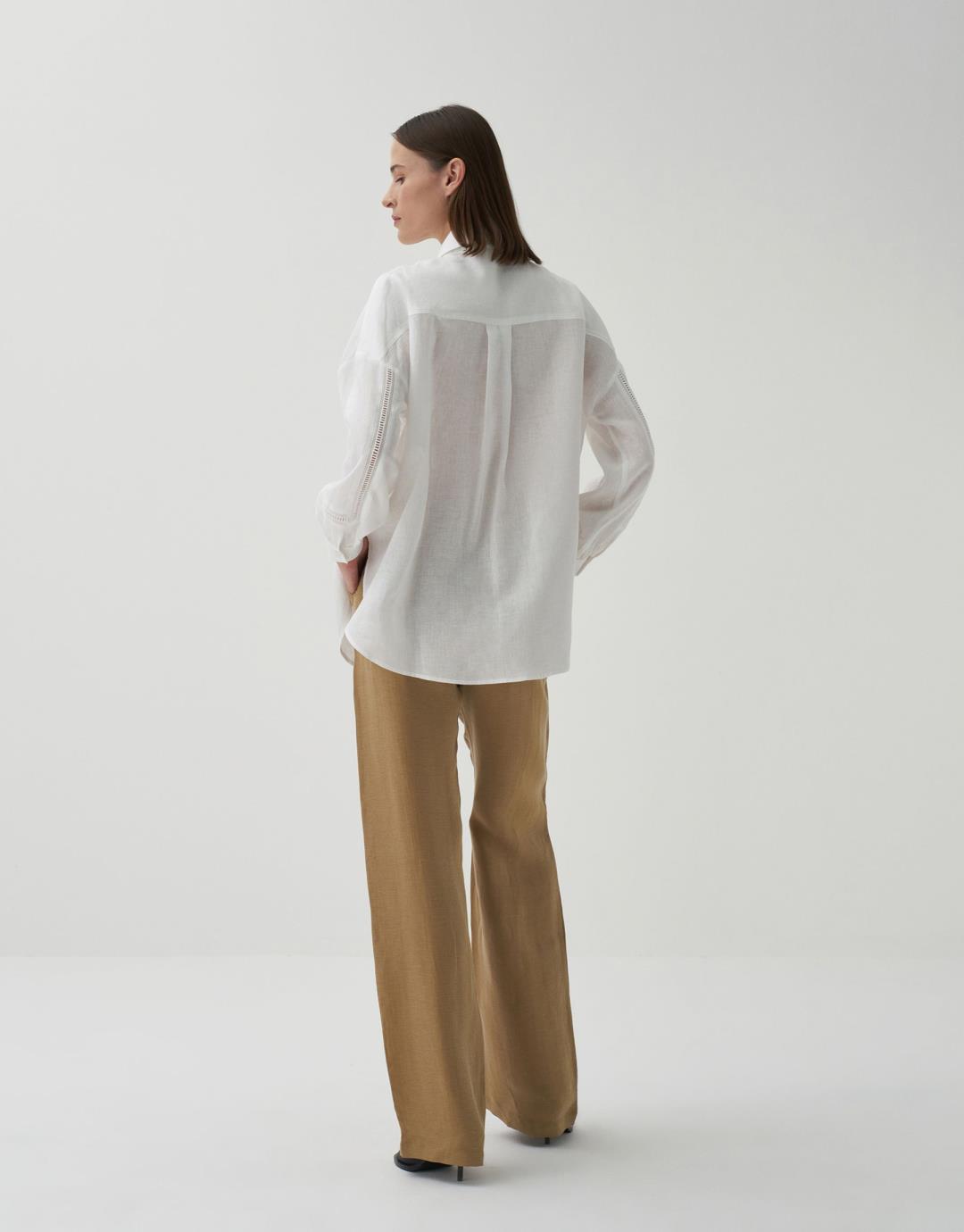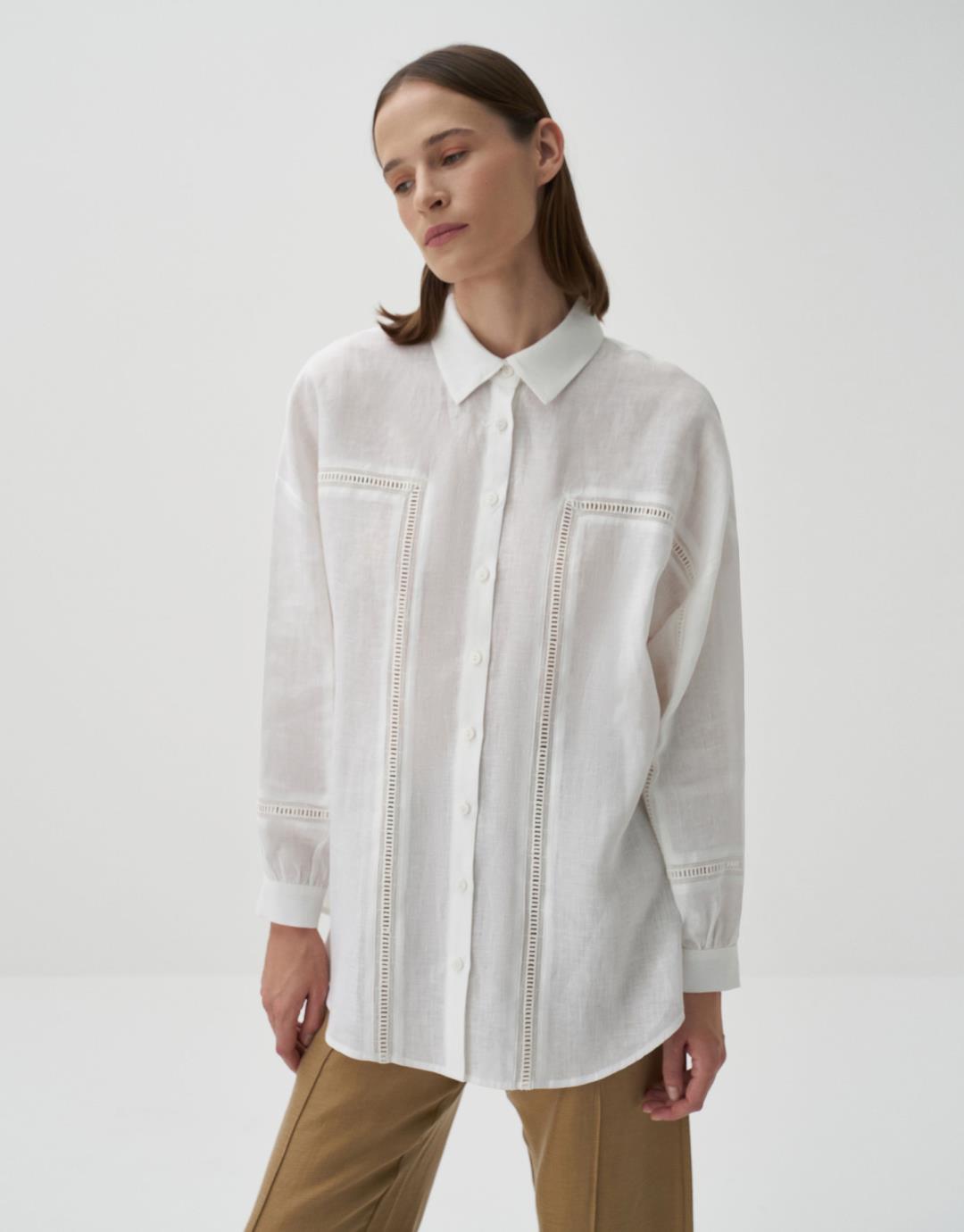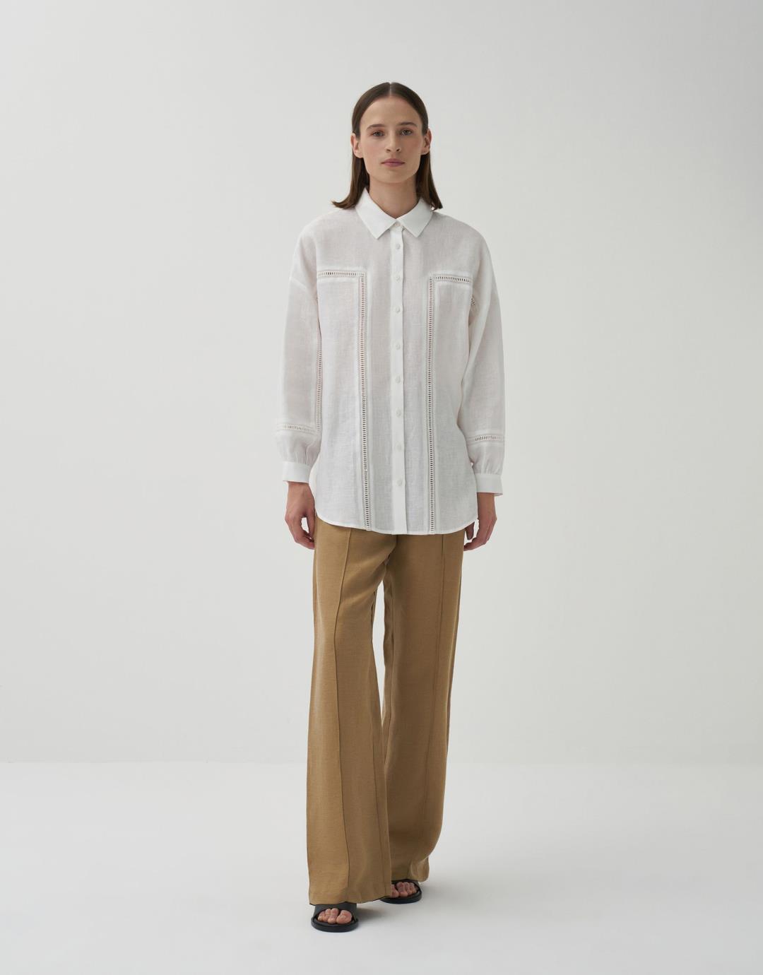 Scalloped Detail 100% Linen Shirt – Ecru – 22246