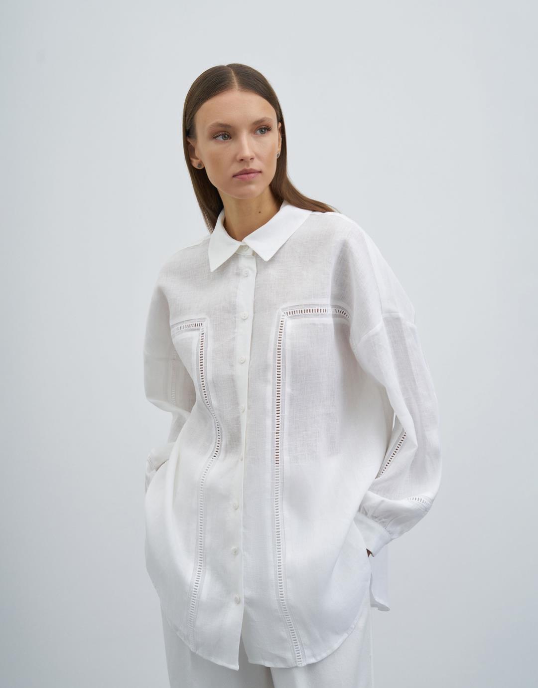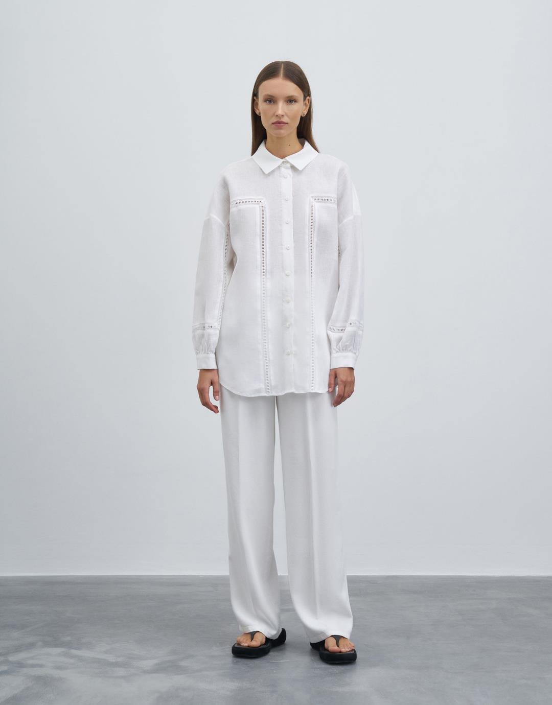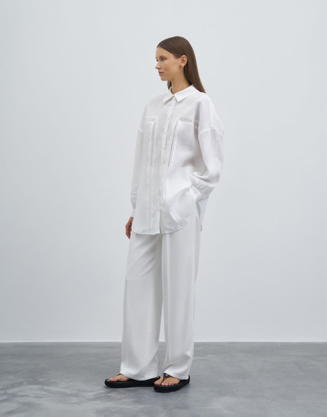 Scalloped Detail 100% Linen Shirt – Ecru – 22246
