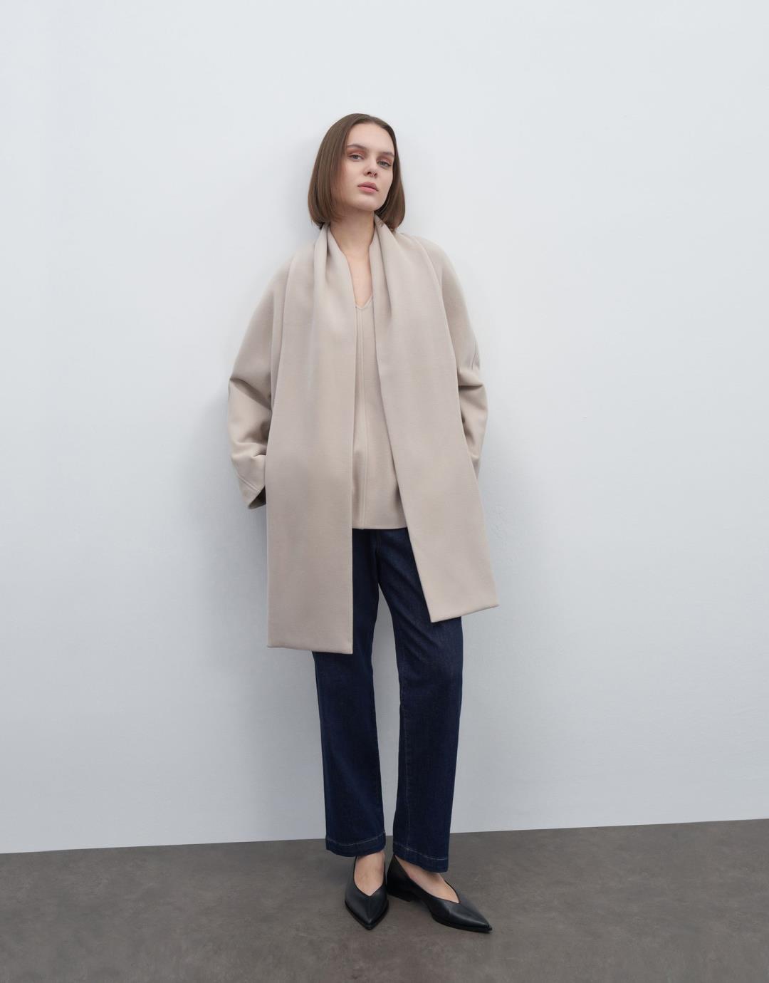 Fabric Content: 31%VIS 64%PES 5%LYC Product Details: The product is lined and has a portable scarf. Model Size: S/M Model Height: 1.74 The product on the mannequin is size S/M. Usage and Washing Instructions: Tetrachlorethylene Dry Cleaning. It is not washed. Roller cleaning is not possible. Tumble drying is not done. No bleach is used.
