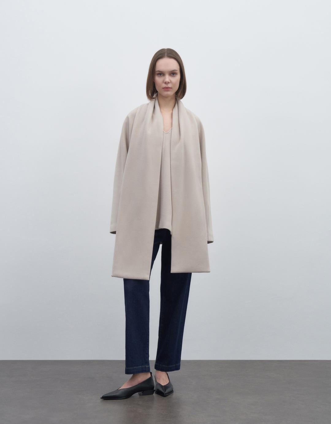 Fabric Content: 31%VIS 64%PES 5%LYC Product Details: The product is lined and has a portable scarf. Model Size: S/M Model Height: 1.74 The product on the mannequin is size S/M. Usage and Washing Instructions: Tetrachlorethylene Dry Cleaning. It is not washed. Roller cleaning is not possible. Tumble drying is not done. No bleach is used.