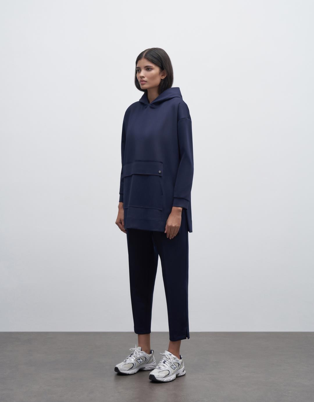 Fabric Content: 92%PES 8%EA Product Details: Hoodie. Kangaroo pocket. It is a sensitive product. Do not use with metal accessories. Model Size: 36 Model Height: 1.78 The product on the mannequin is size S/M. Usage and Washing Instructions: Hand wash at maximum 30ºC. Bleach bleach is not used. Roller Cleaning is Not Made. Wash inside out. Tetrachlorethylene Dry Cleaning. Dryer is not used.