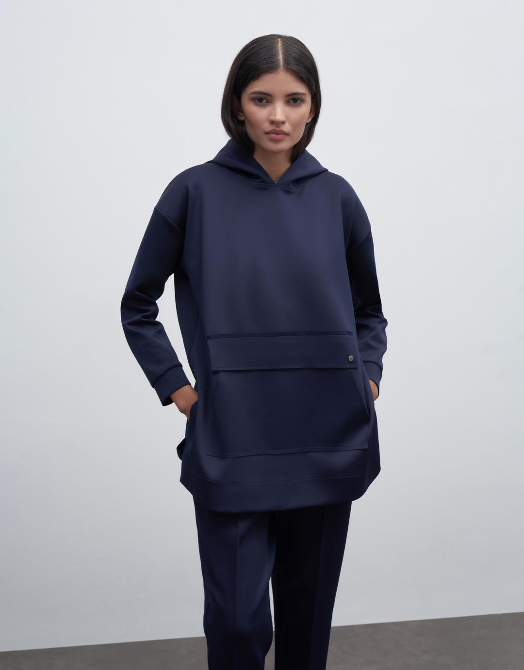 Scuba Sweatshirt with Kangaroo Pocket – Navy Blue – 23327