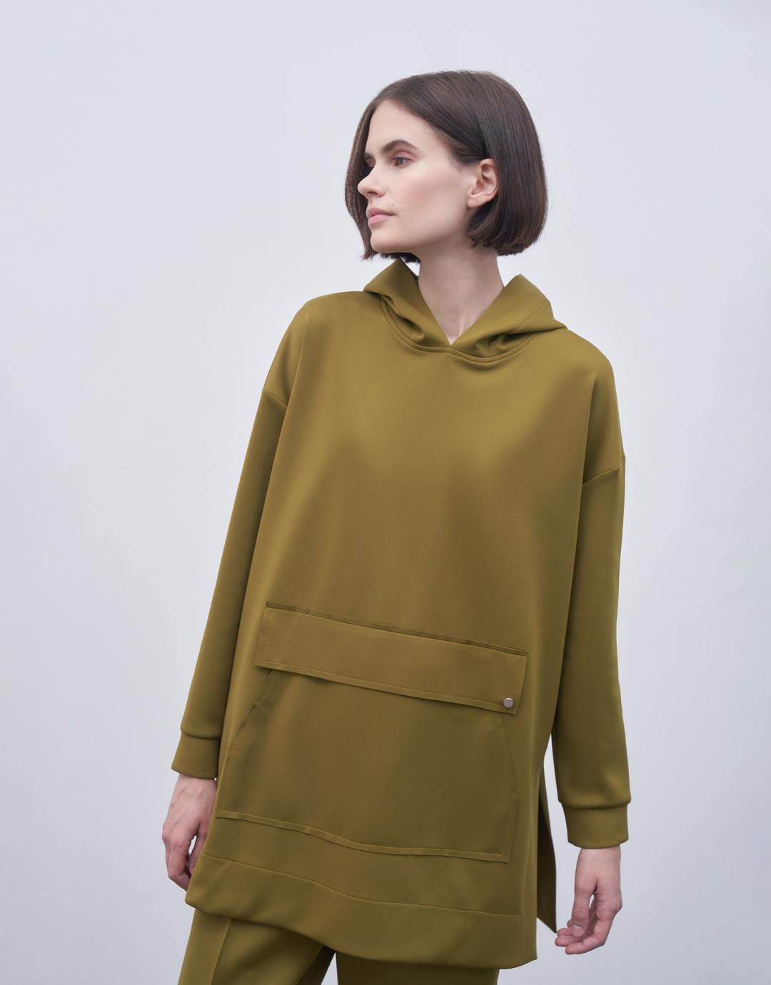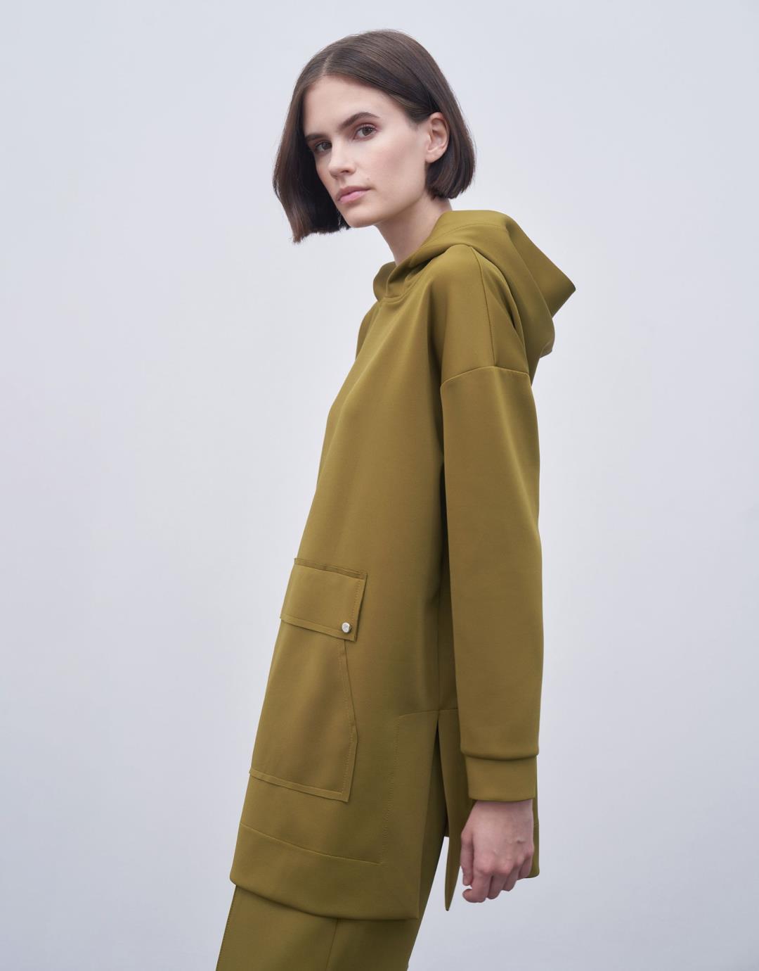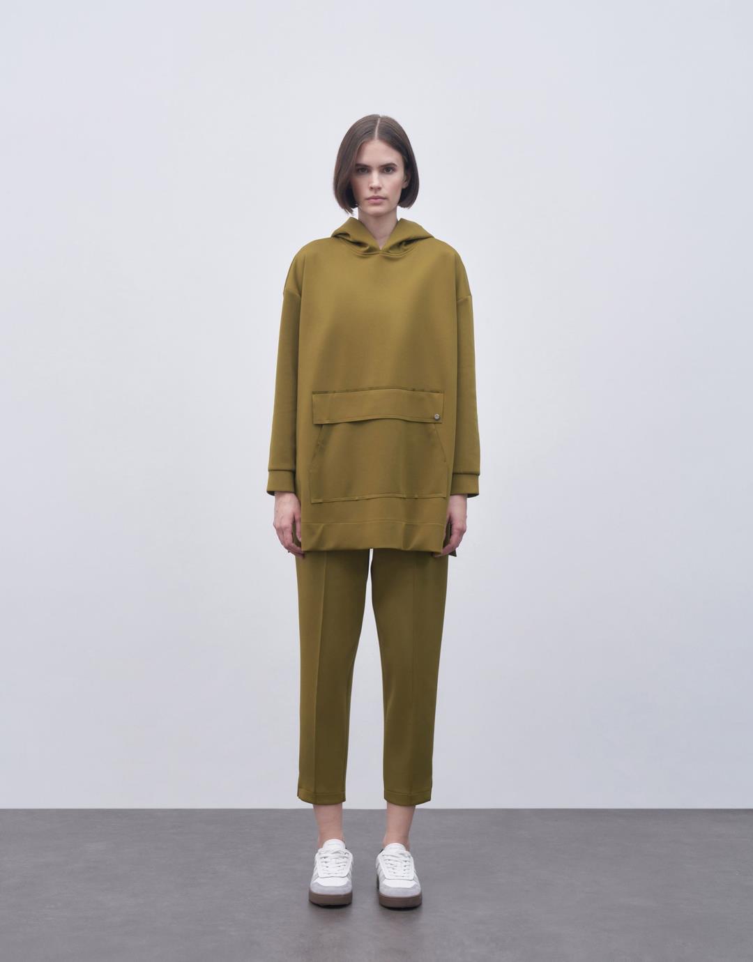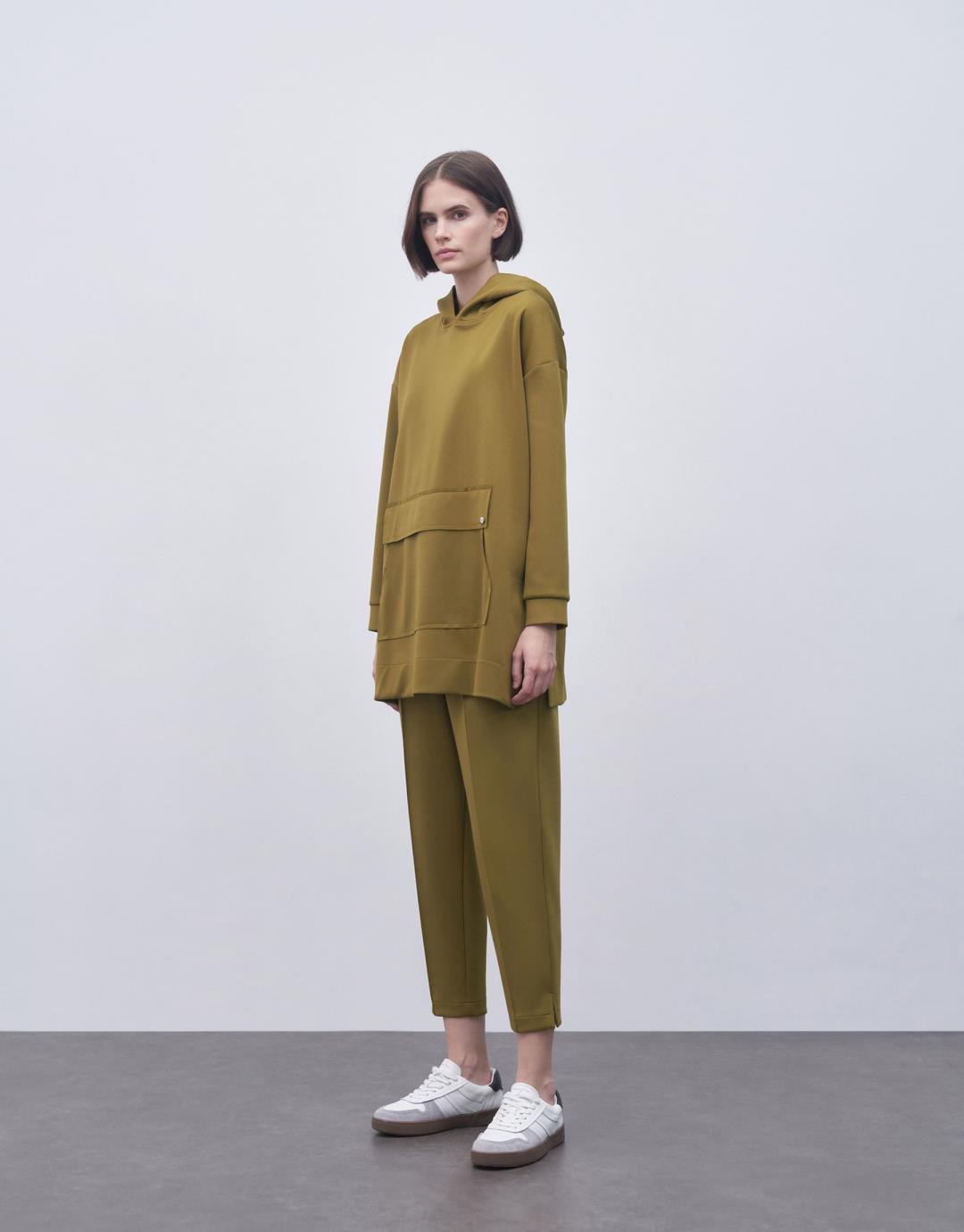Fabric Content: 92%PES 8%EA Product Details: Hoodie. Kangaroo pocket. It is a sensitive product. Do not use with metal accessories. Model Size: 36 Model Height: 1.78 The product on the mannequin is size S/M. Usage and Washing Instructions: Hand wash at maximum 30ºC. Bleach bleach is not used. Roller Cleaning is Not Made. Wash inside out. Tetrachlorethylene Dry Cleaning. Dryer is not used.