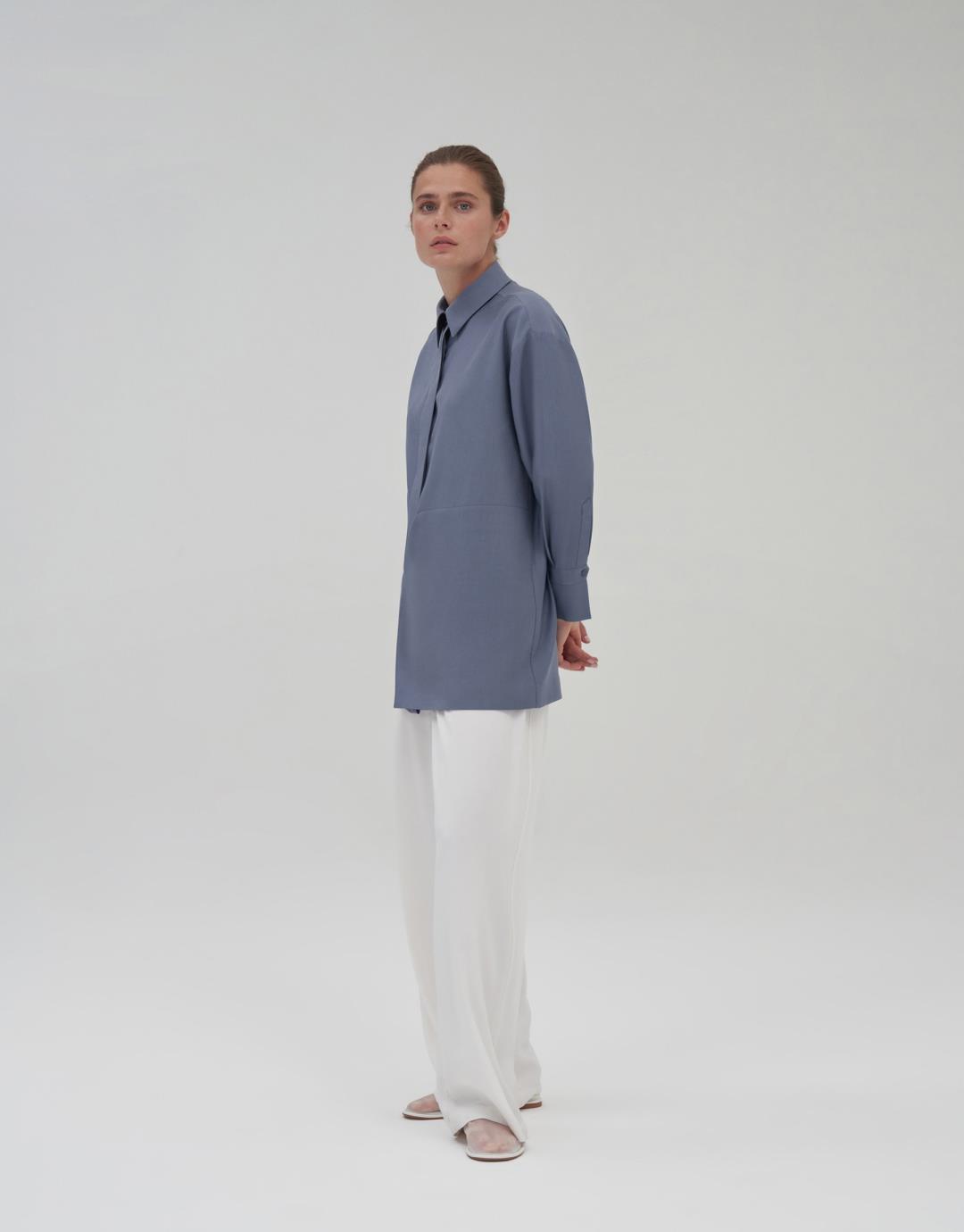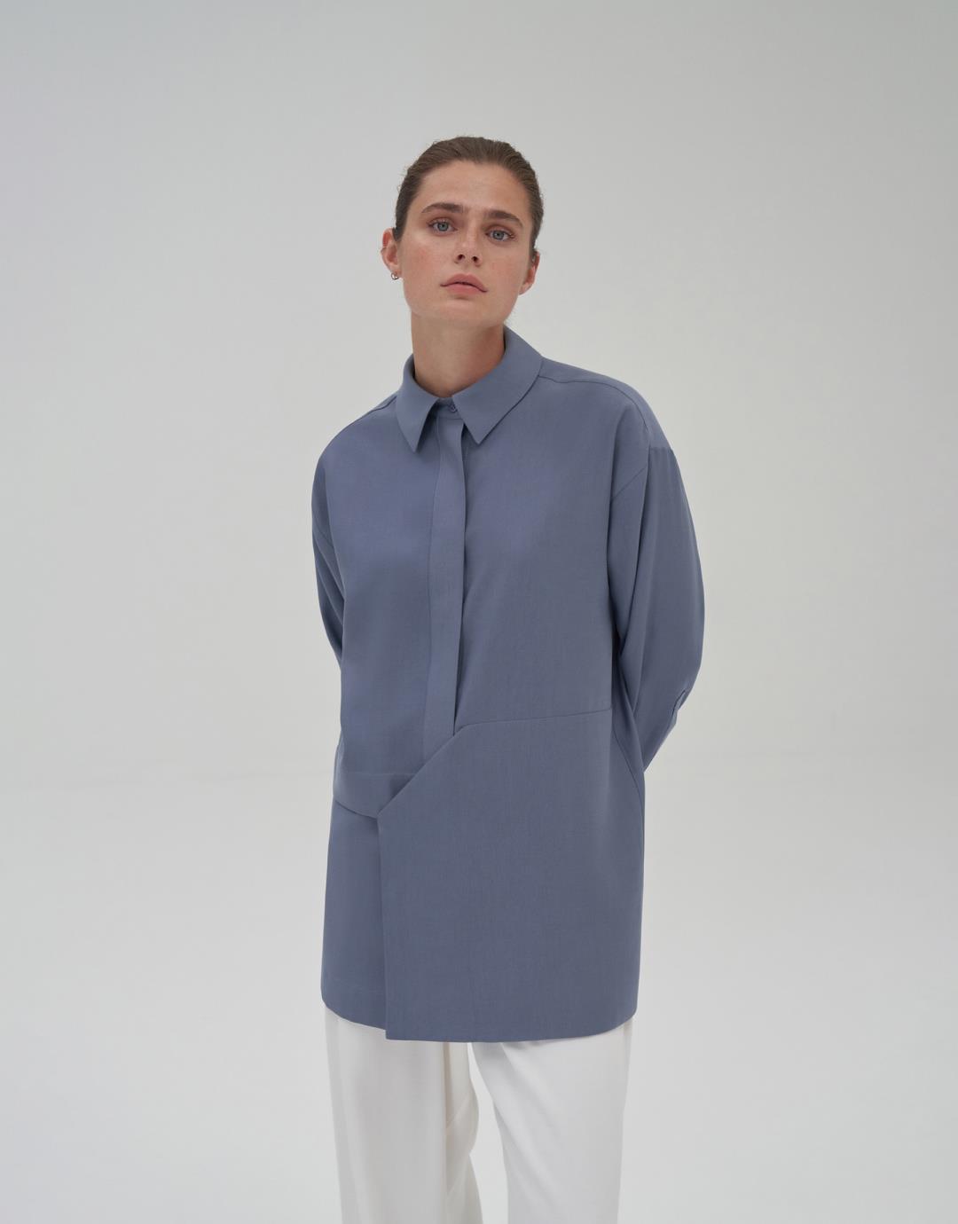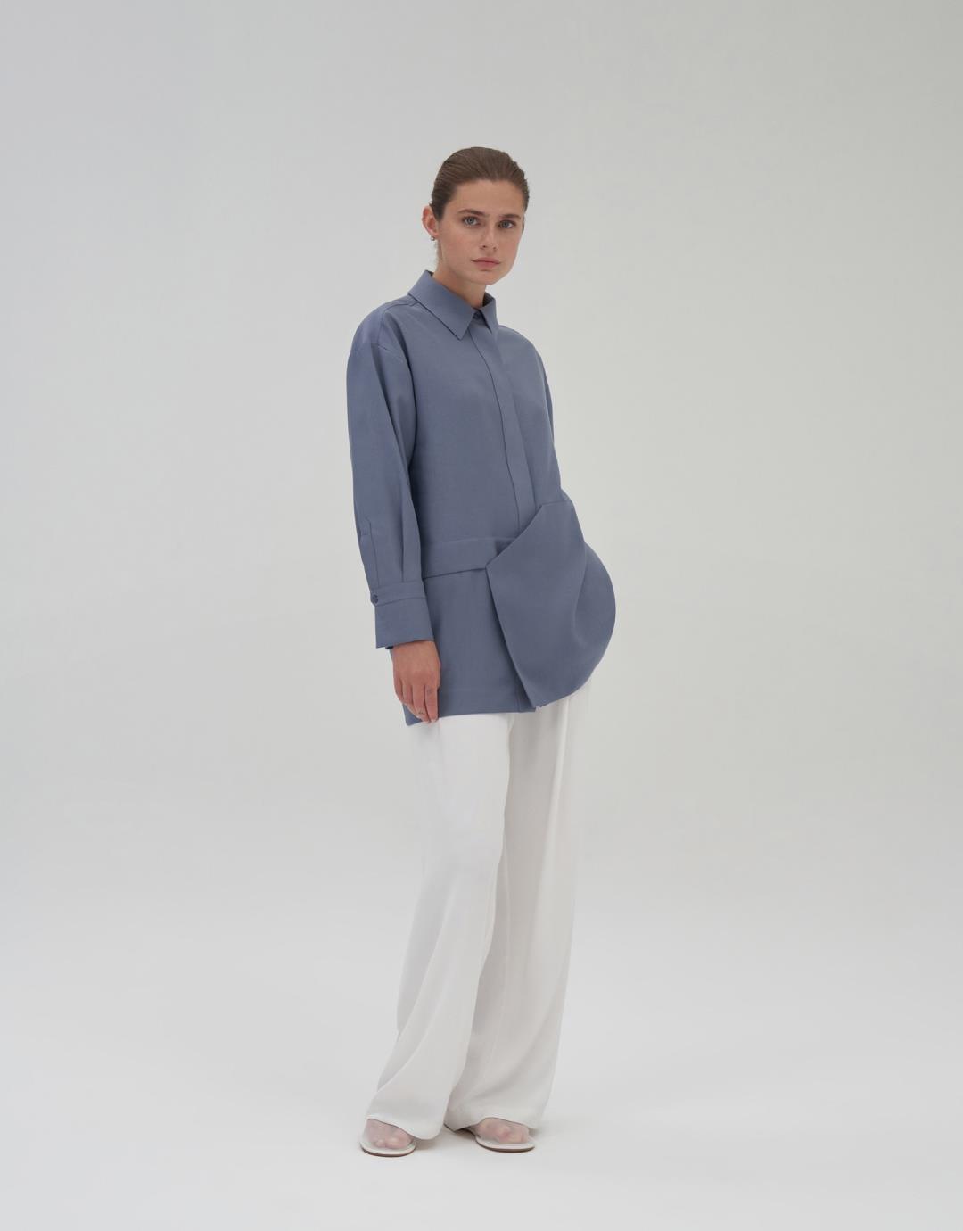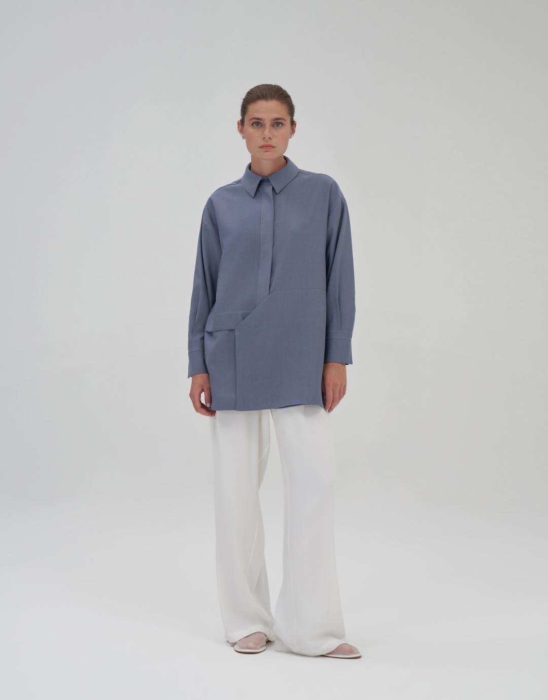 Fabric Content: 86% TENCEL 14% PES Product Details: Shirt collar. Concealed placket with front body button closure. Button-closed cuff. Asymmetric cut detail on the front body. Model Size: 36 Model Height: 1.72 The product on the mannequin is size S/M. Usage and Washing Instructions: Tetrachlorethylene Dry Cleaning. Roller cleaning is not done. Tumble drying is not done. Bleach bleach is not used.
