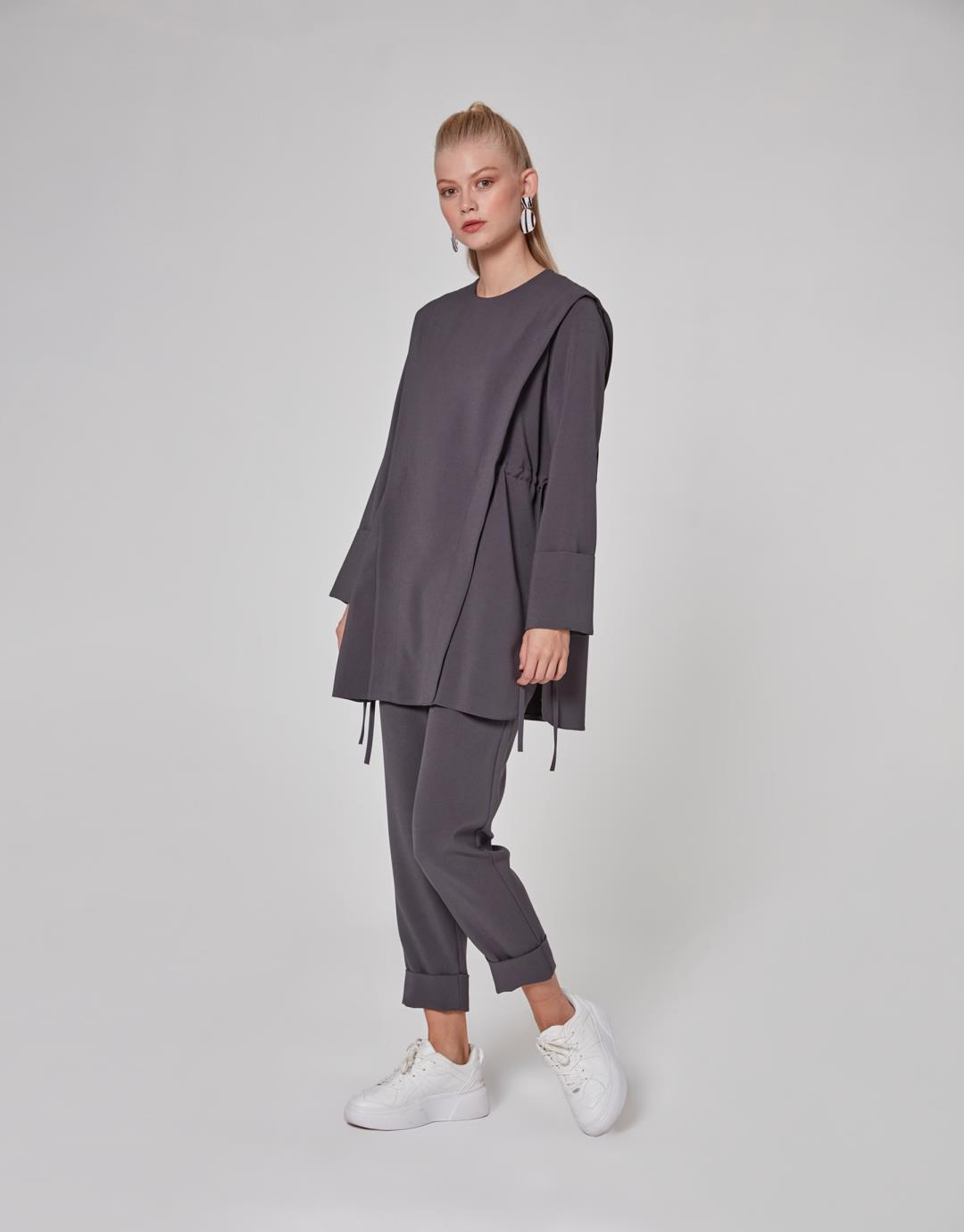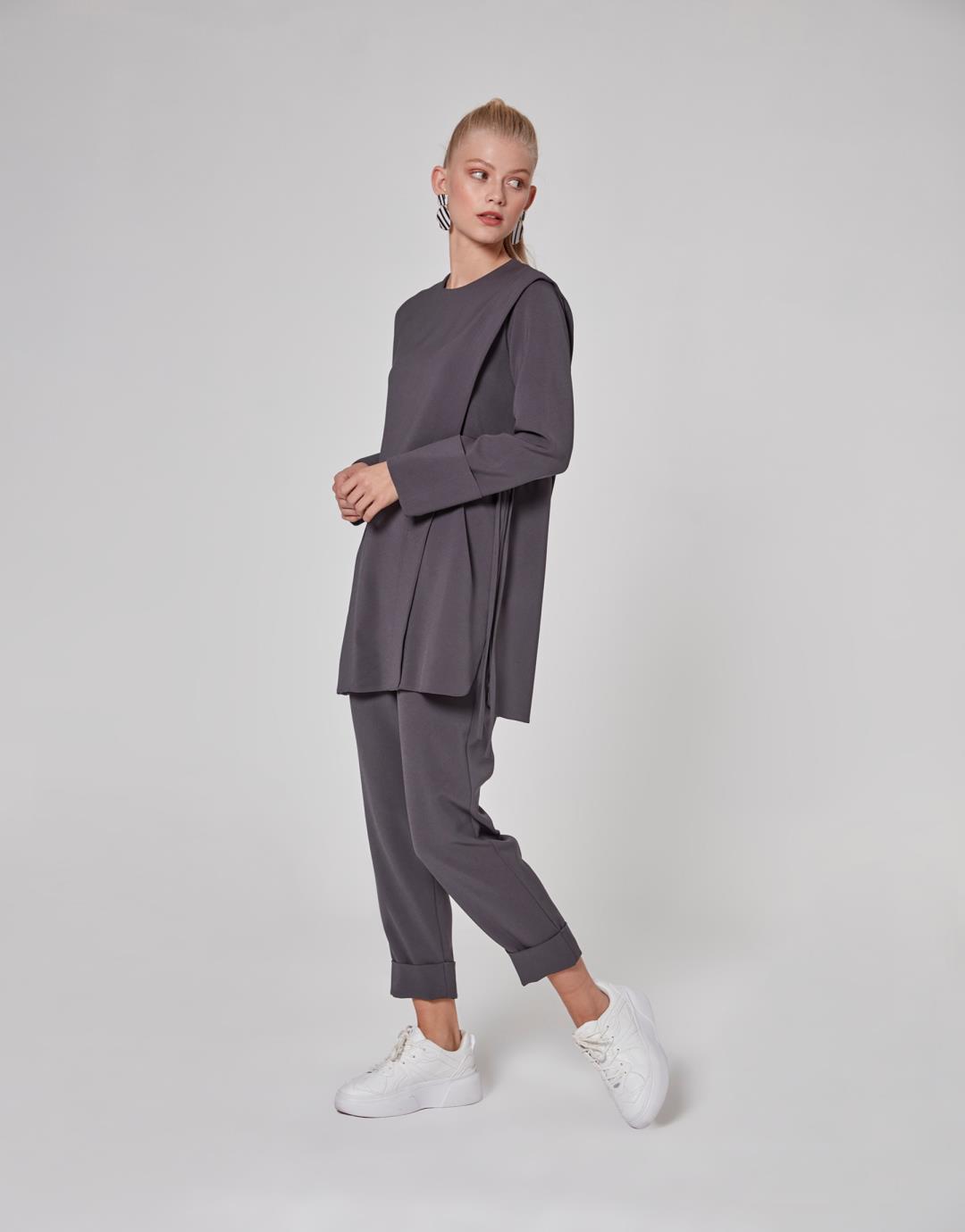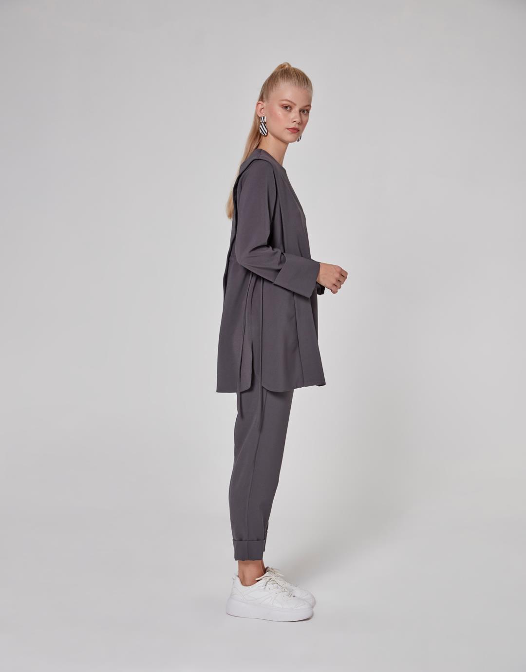Home2020 Fall / WinterSide Shirred Tie Mira Suit – Anthracite Color – 1064 Side Shirred Tie Mira Suit – Anthracite Color – 1064 Category: 2020 Fall / Winter Product ID: 22724 Description Description Sample Size : 36 Fabric Information : Crepe 98% Pes 2% Lycra Usage and Washing Instructions : Dry clean.