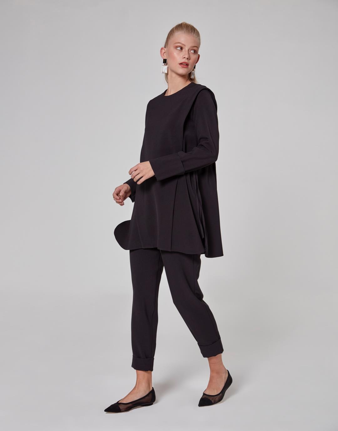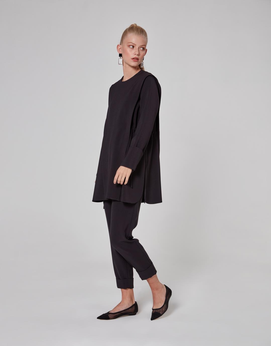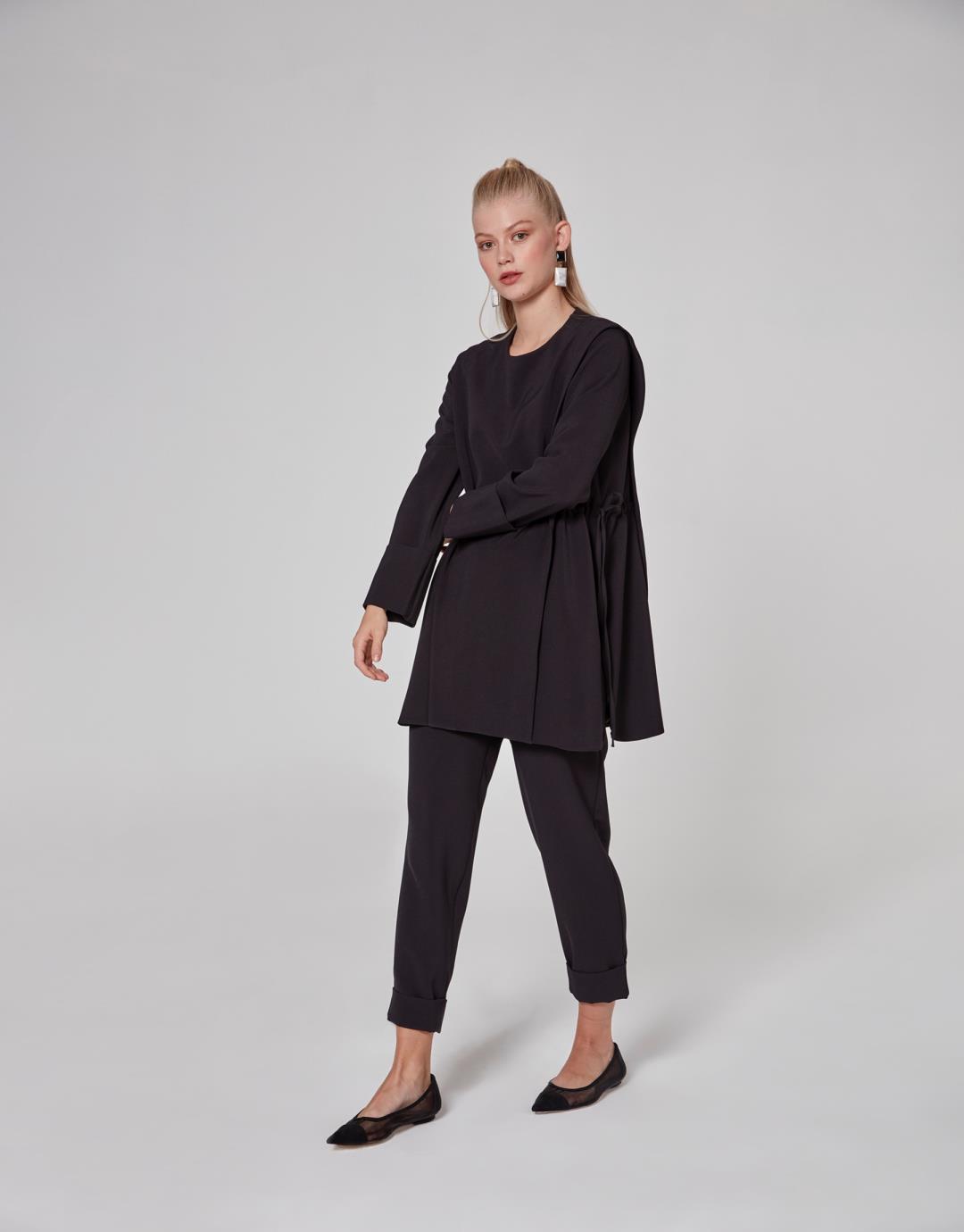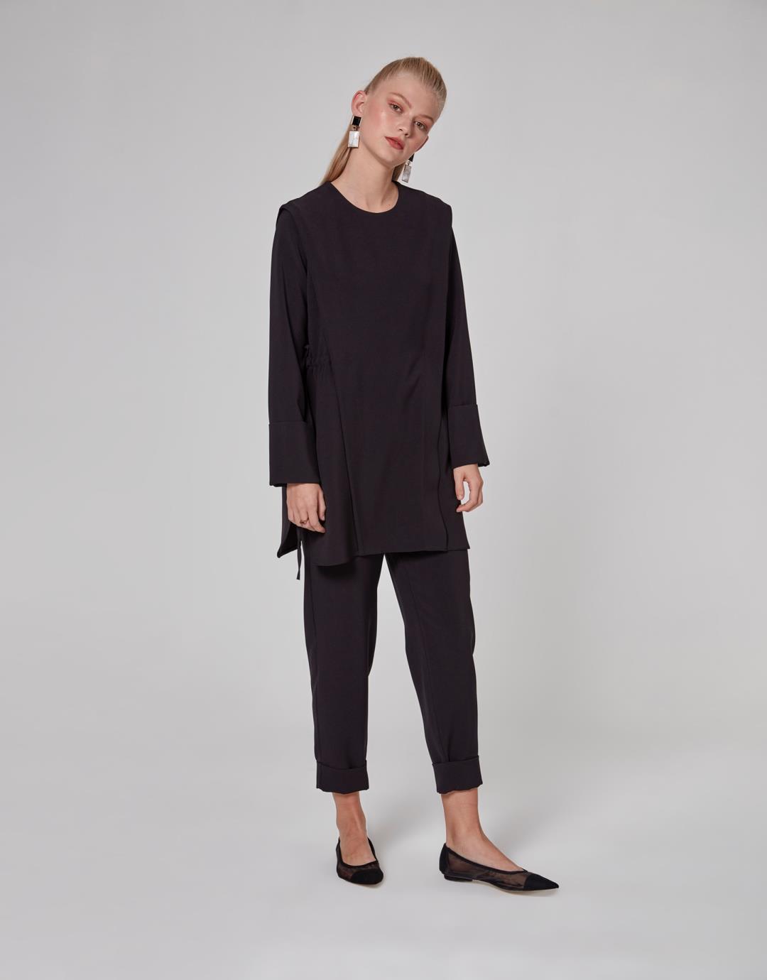 Side Shirred Tie Mira Suit – Black – 1064