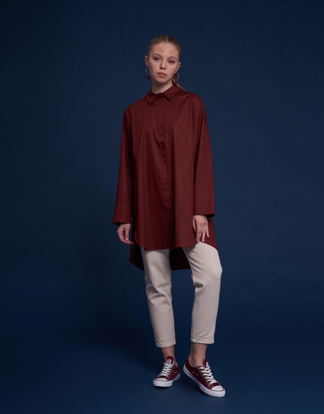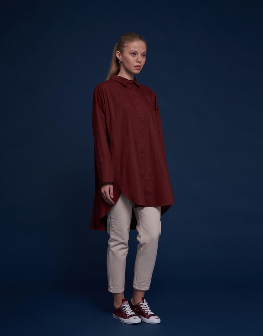 Sleeve Detailed Oversized Shirt – Brick Color – 1107
