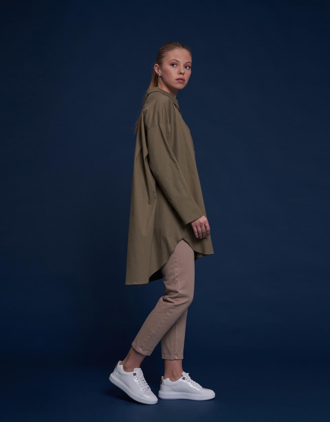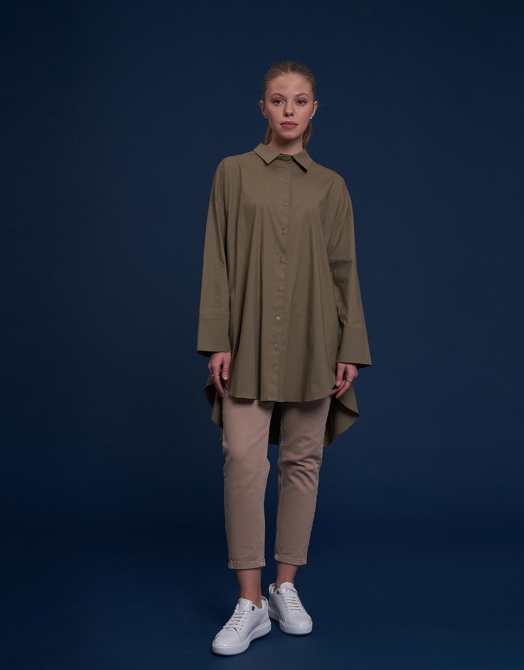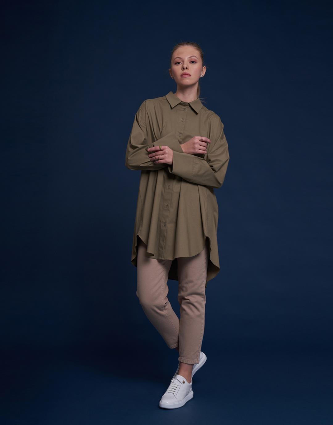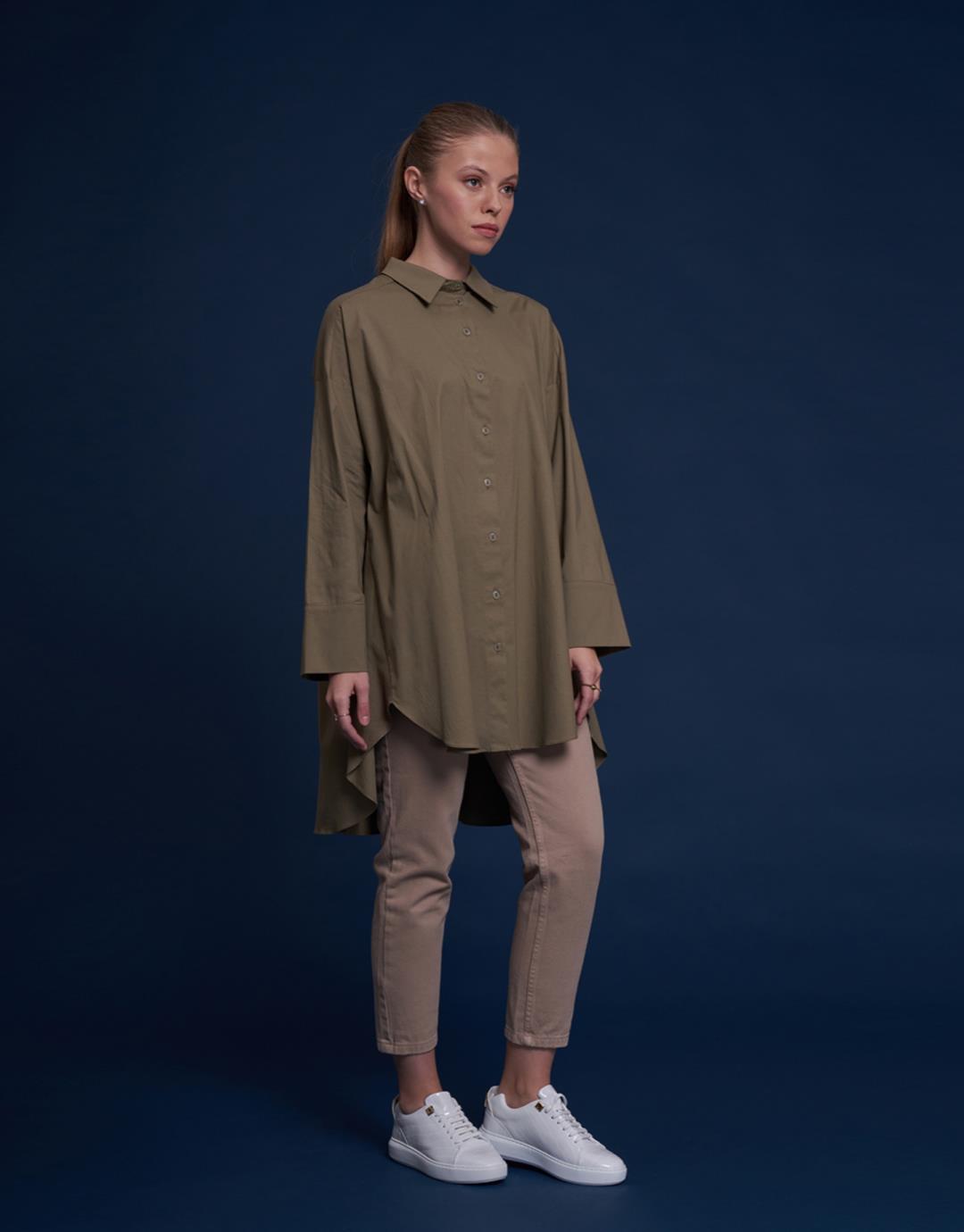 Sleeve Detailed Oversized Shirt – Green – 1107