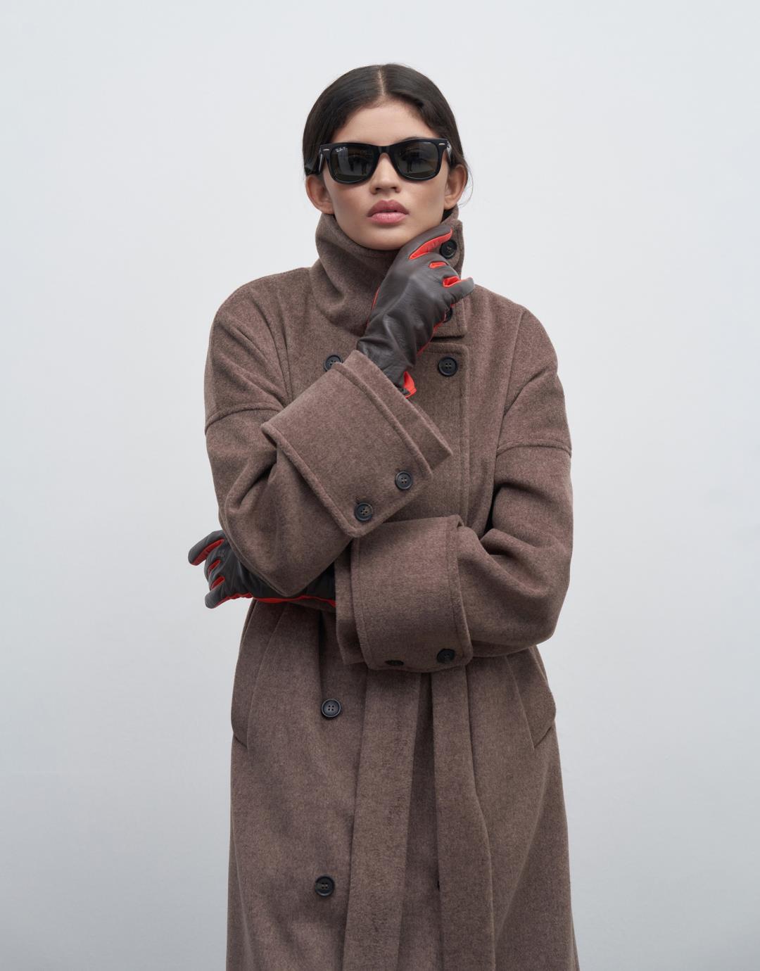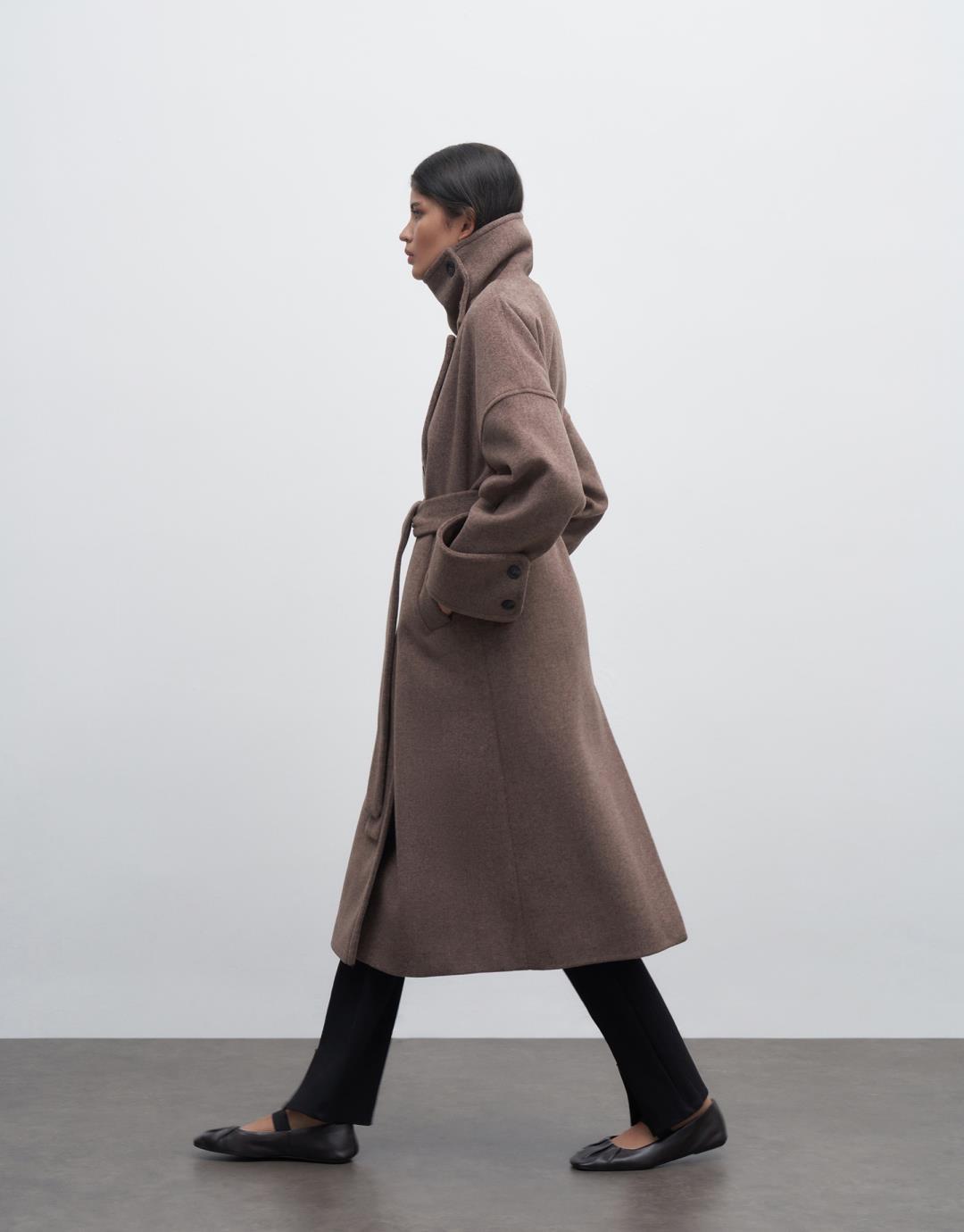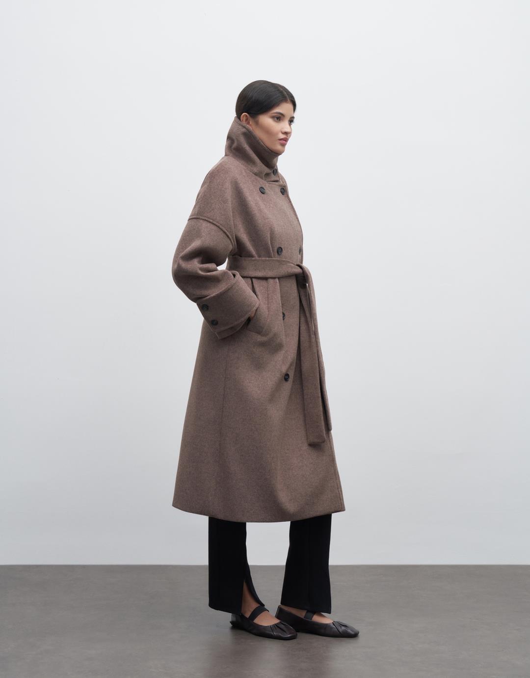 Fabric Content: 80% PES 20% RAYON Product Details: The product is lined. It has a high collar, dropped shoulders, long sleeves, 2 pockets, belt detail on the sleeves and a mobile belt. Model Size: 36 Model Height: 1.78 The product on the model is size 36. Usage and Washing Instructions: Tetrachlorethylene Dry Cleaning. It is not washed. Roller cleaning is not possible. Tumble drying is not done. No bleach is used.