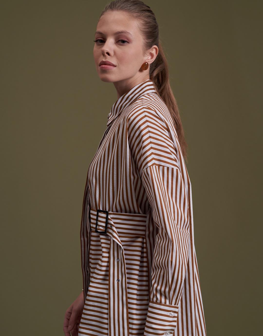 Home2020 Fall / WinterStriped Buckle Shirt – Camel Color – 1080 Striped Buckle Shirt – Camel Color – 1080 Category: 2020 Fall / Winter Product ID: 23479 Description Description Sample Size: 1 Fabric Information: 97% Cotton 3% Lycra Usage and Washing Instruction: Recommended Dry Clean.
