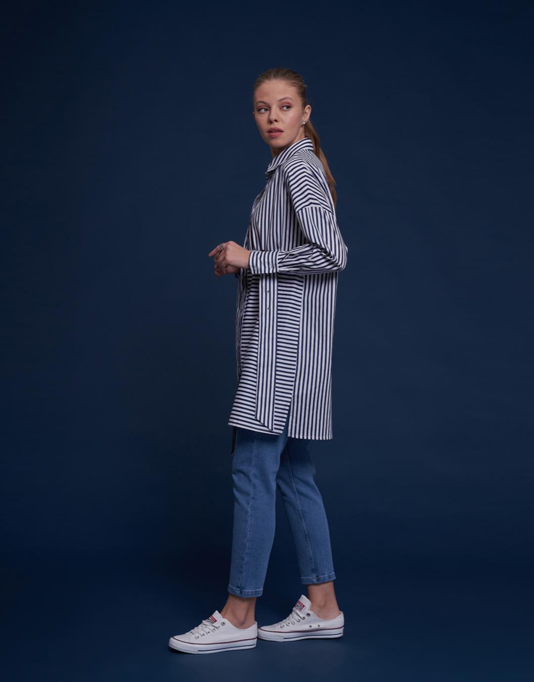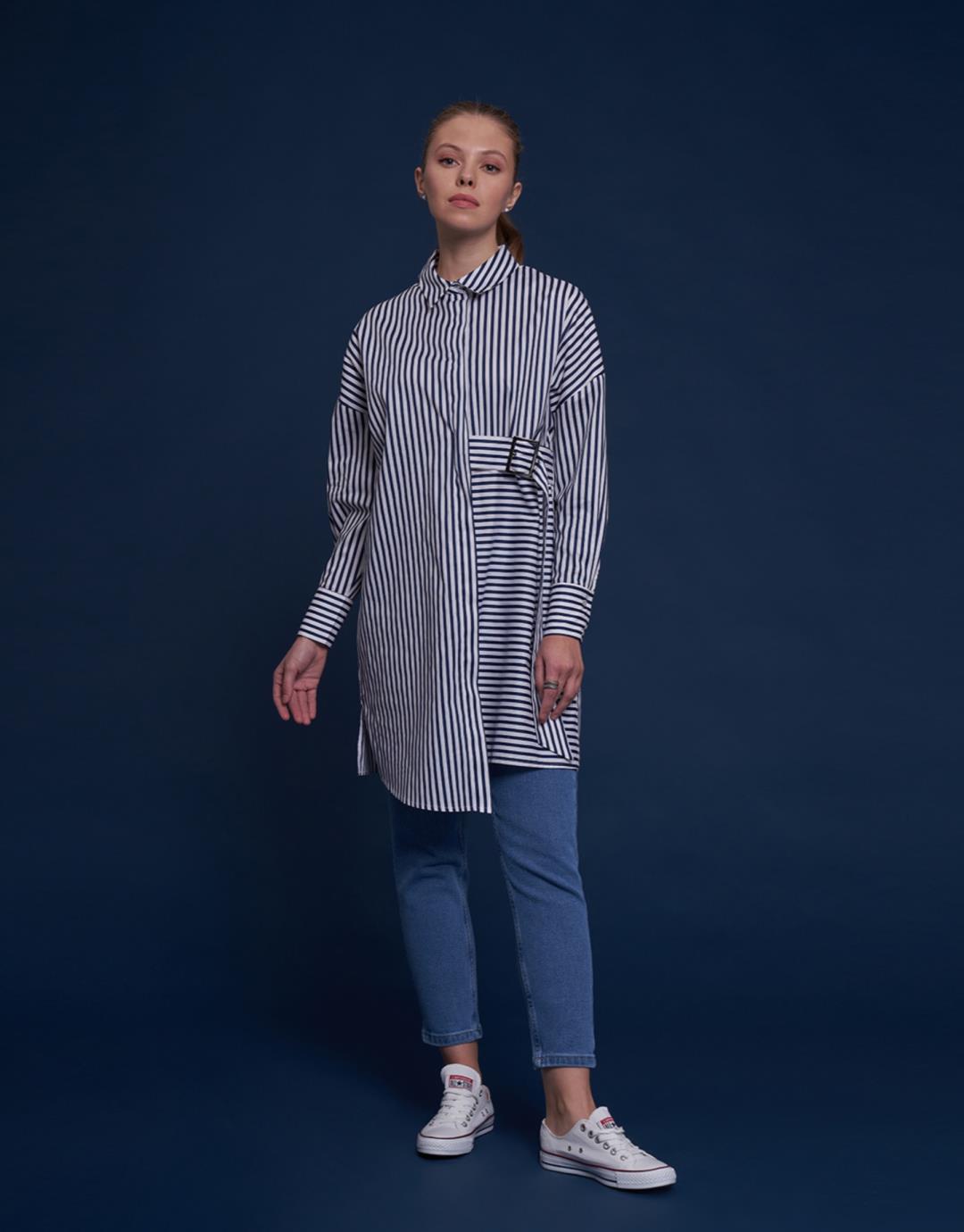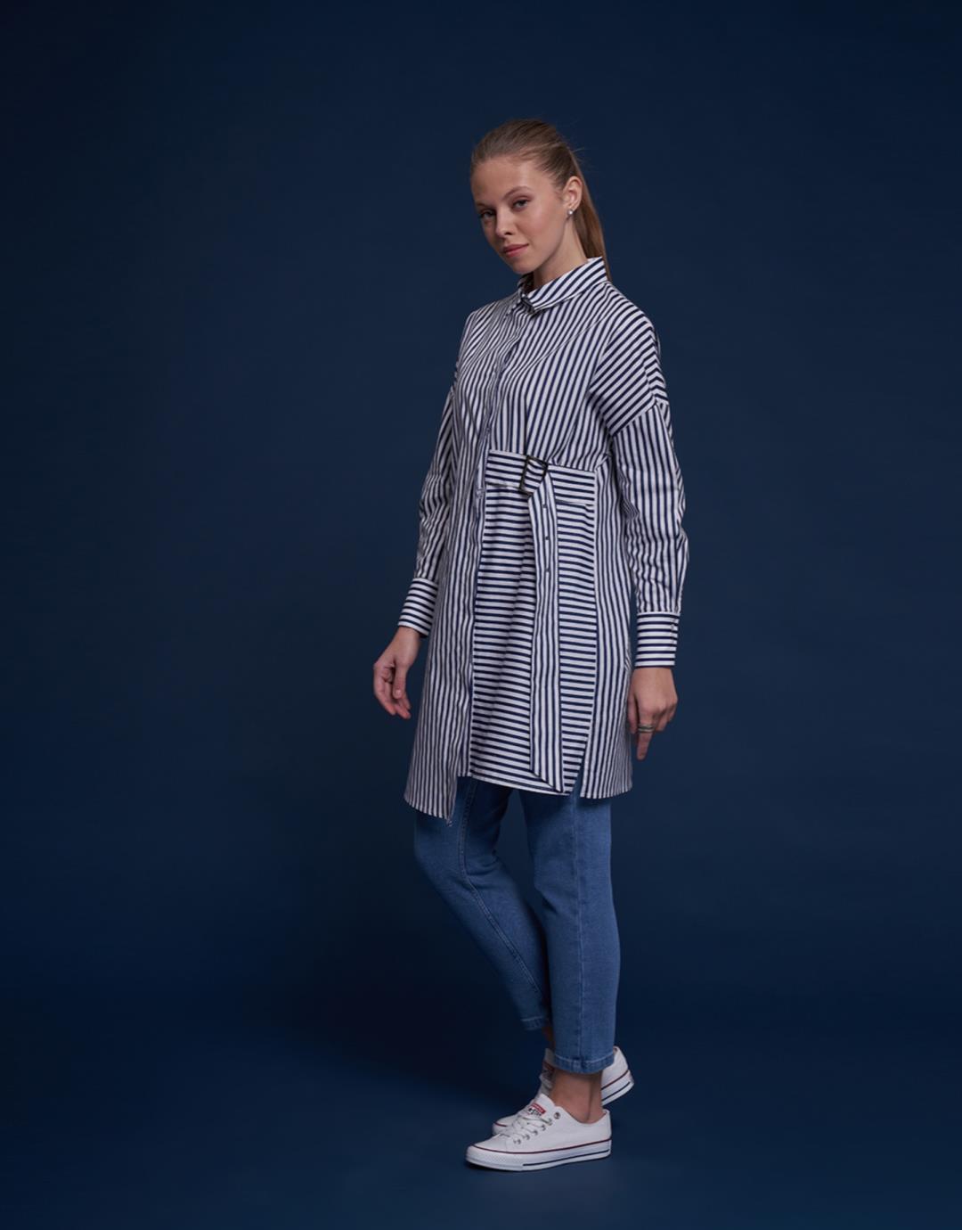 Home2020 Fall / WinterStriped Buckle Shirt – Navy Blue – 1080 Striped Buckle Shirt – Navy Blue – 1080 Category: 2020 Fall / Winter Product ID: 23484 Description Description Sample Size: 1 Fabric Information: 97% Cotton 3% Lycra Usage and Washing Instruction: Recommended Dry Clean.