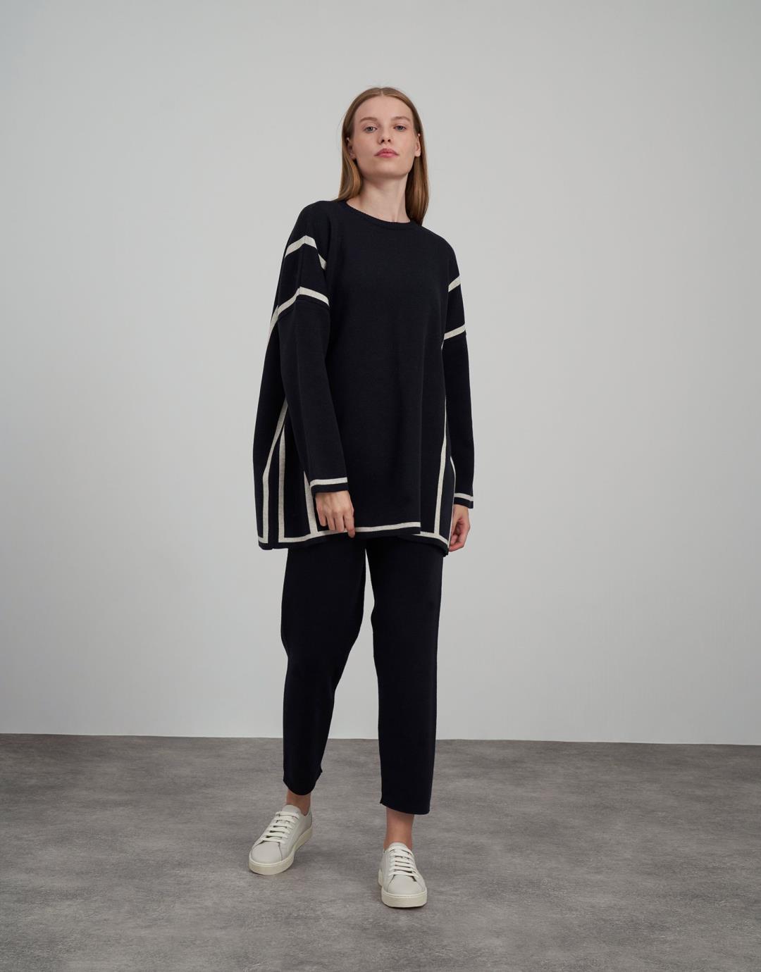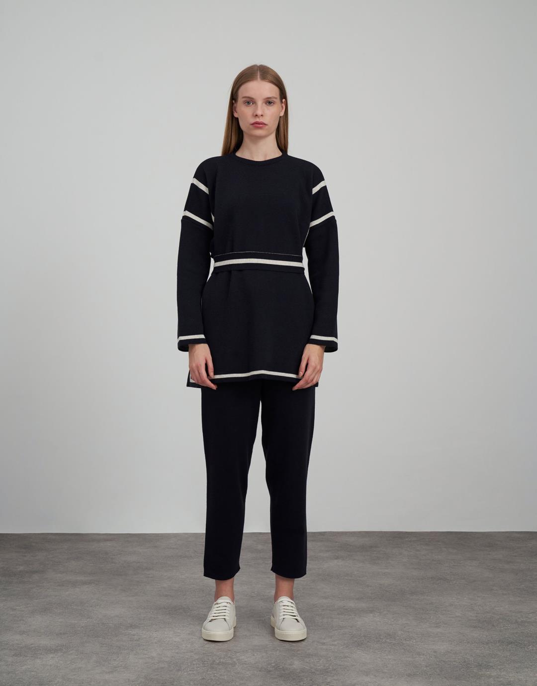 Fabric Content: 100% Akrylc Fabric Info: Knitted Tricot Sleeve Detail Long sleeve Product Details: Tunic with belt at the waist, trousers with elasticated waist Mould Information: Loose Model Size : 36 Model Height : 1.78 The product on the Model is size 1. Usage and Washing Instructions : Wash in delicate programme at low temperature.