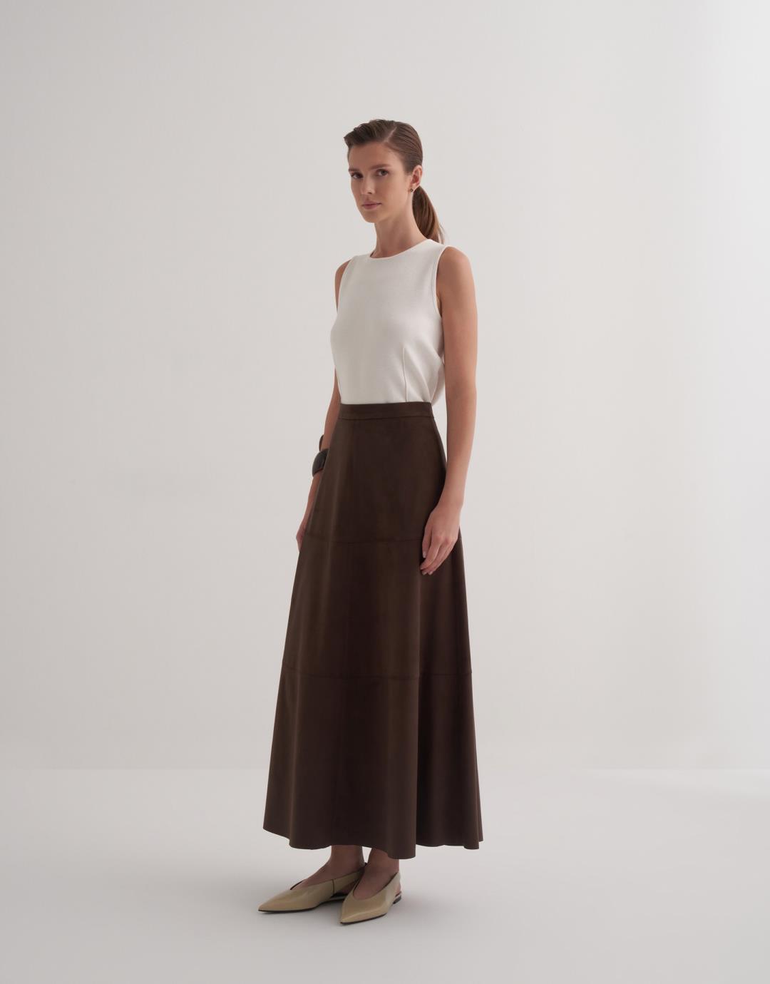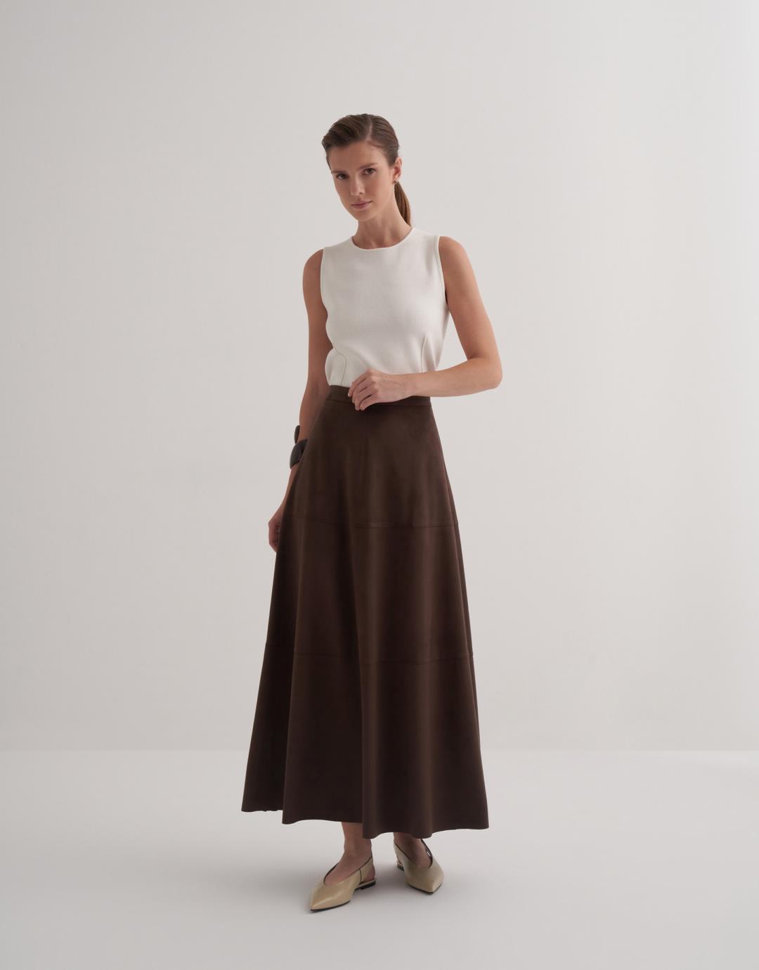 Suede Skirt with Cutout Details – Brown – 25140