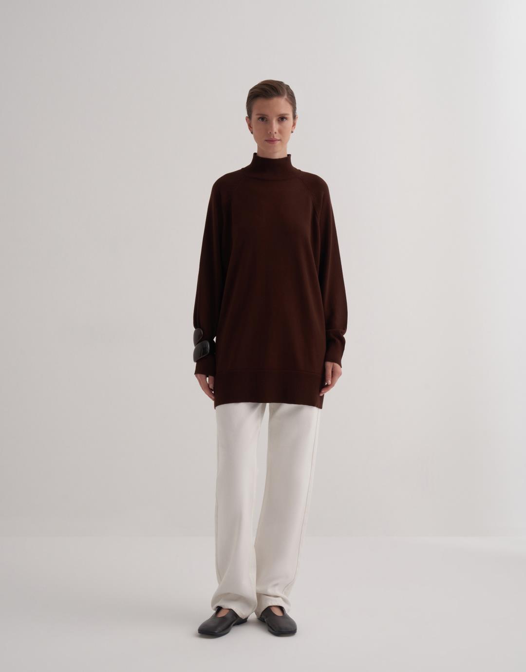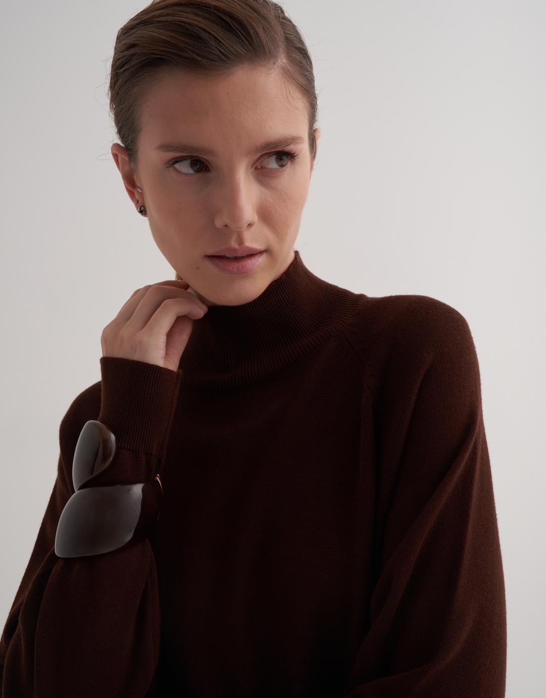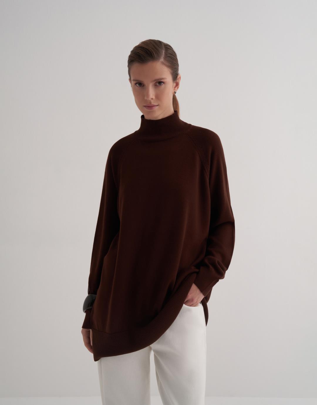 Turtleneck Knitted Sweater – Brown – 14153
