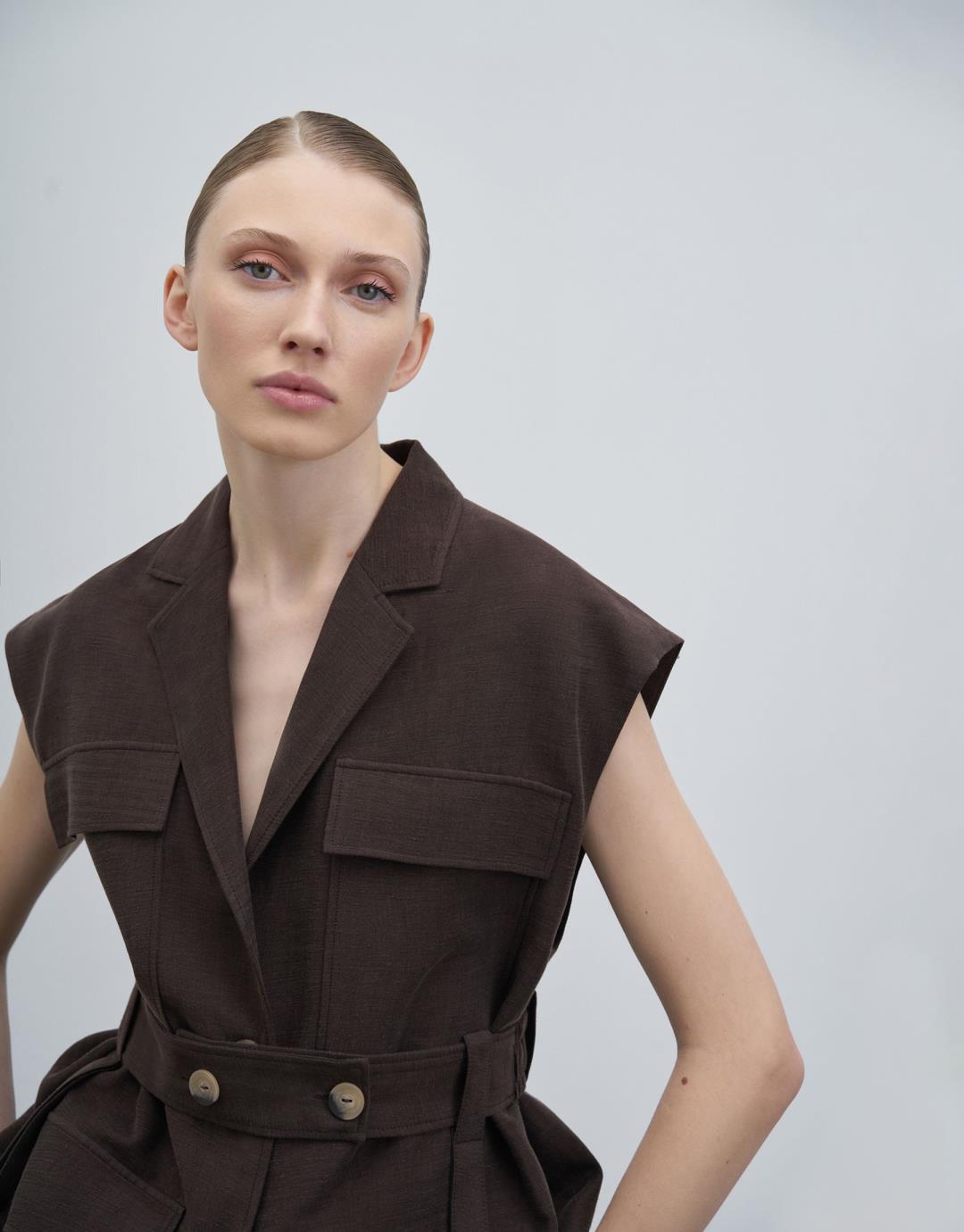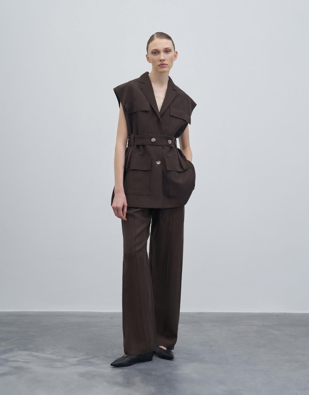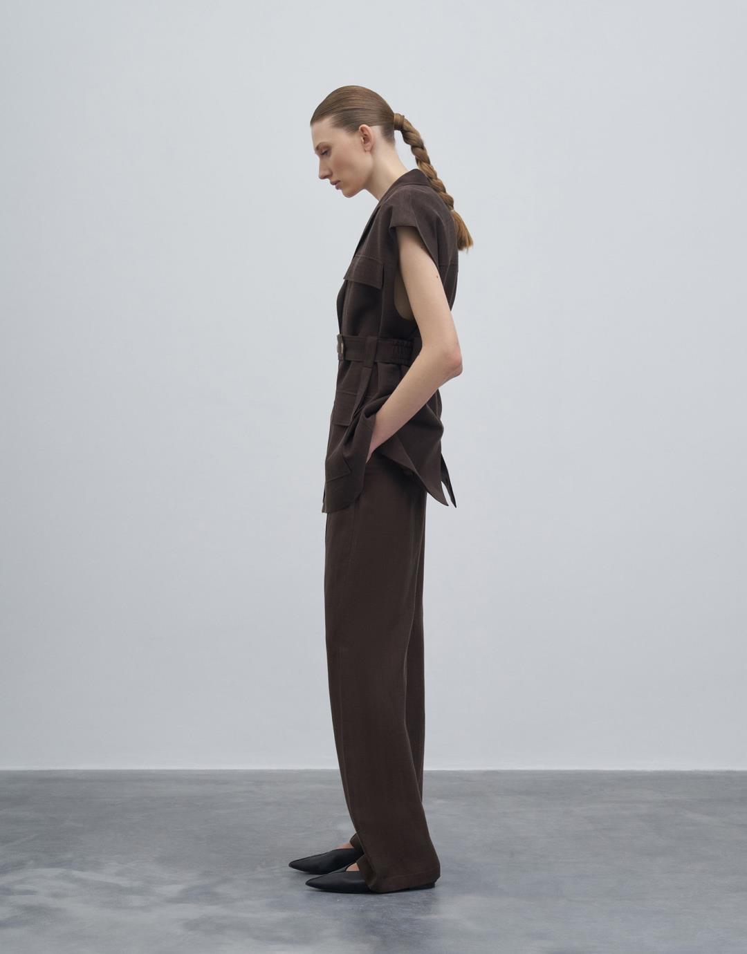 Fiber Content: %58LINEN %42CUPRO Lining: %100PES Model Size: 36 Model Height: 1.78 The product on the model is size S/M. Usage and Washing Instructions : – Dry cleaning. – No tumble drying. – Do not use to bleach. – Don't use with metal accesesories. – It's a delicate product. This fabric, which is one of the world's first vegan fabric collection, has been developed and produced in a way that is produced without harming nature and animals, is completely destructible in nature, and is easy to clean and use. We believe in the transformative power that clothes exert on those who wear them. But above all, we believe in responsibility for people and our world. For this reason, we do not perceive sustainability as a goal, but as a common axis of our business, connected with our entire environment. Our goal is to choose more environmentally and animal-friendly materials, to support processes with less environmental impact, and to reduce our footprint in nature. We manage to be closer to our goal every day: We are actively working to make fashion more responsible. We invite you to an age of elegant comfort where silky touch is possible with this special collection made of vegan fabrics that are environmentally and animal friendly.