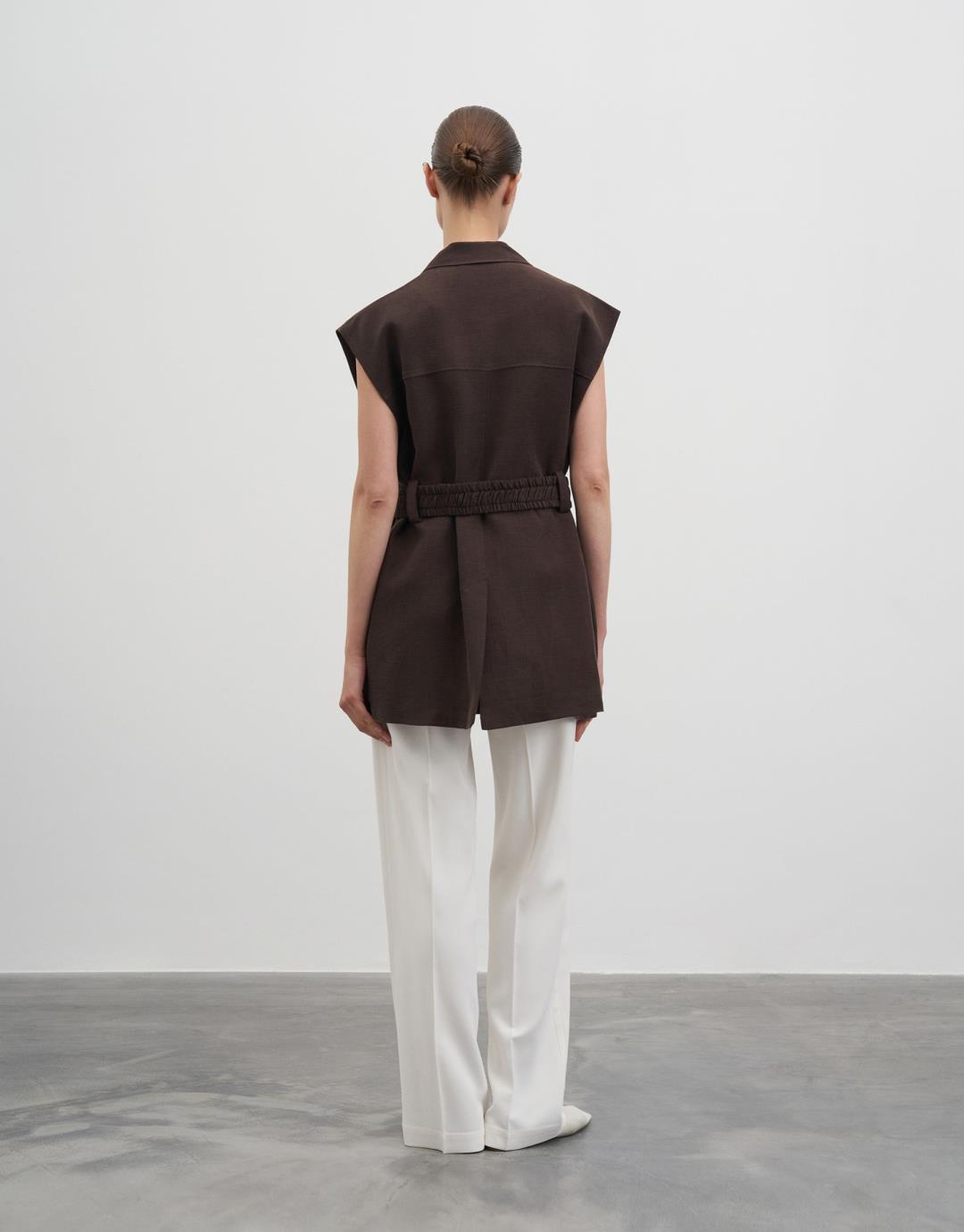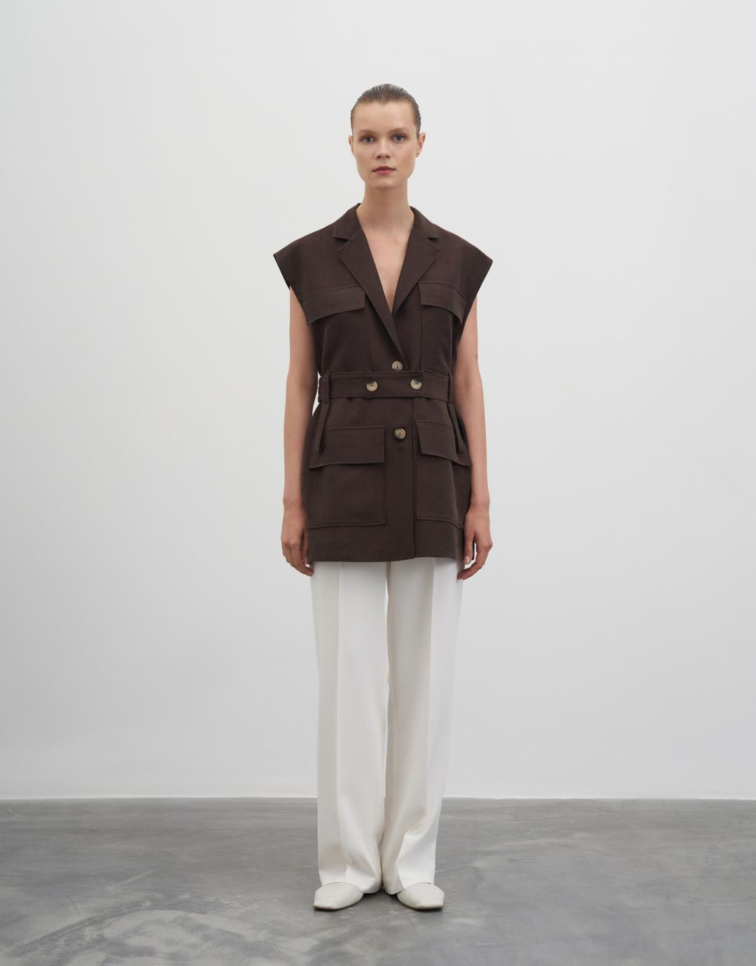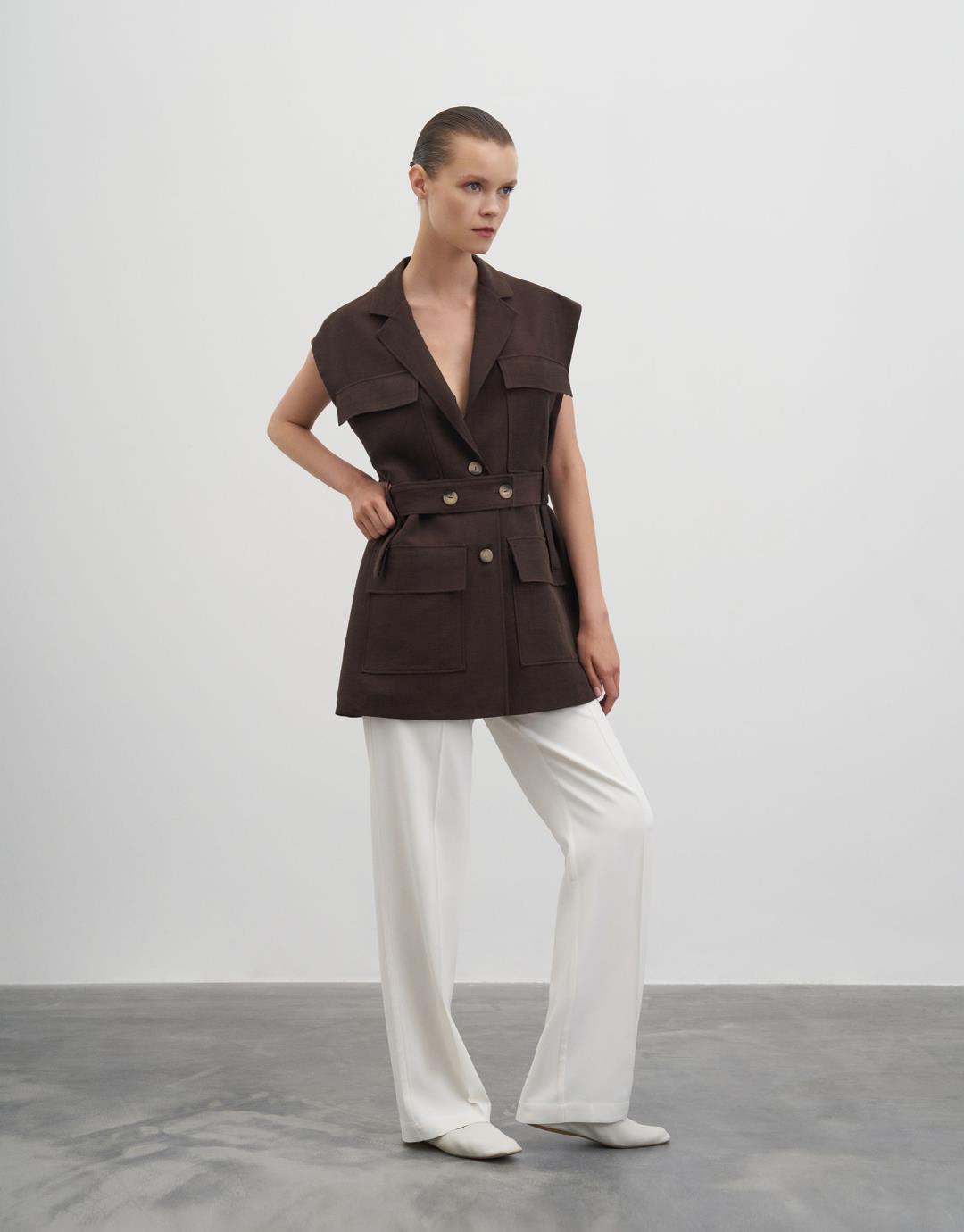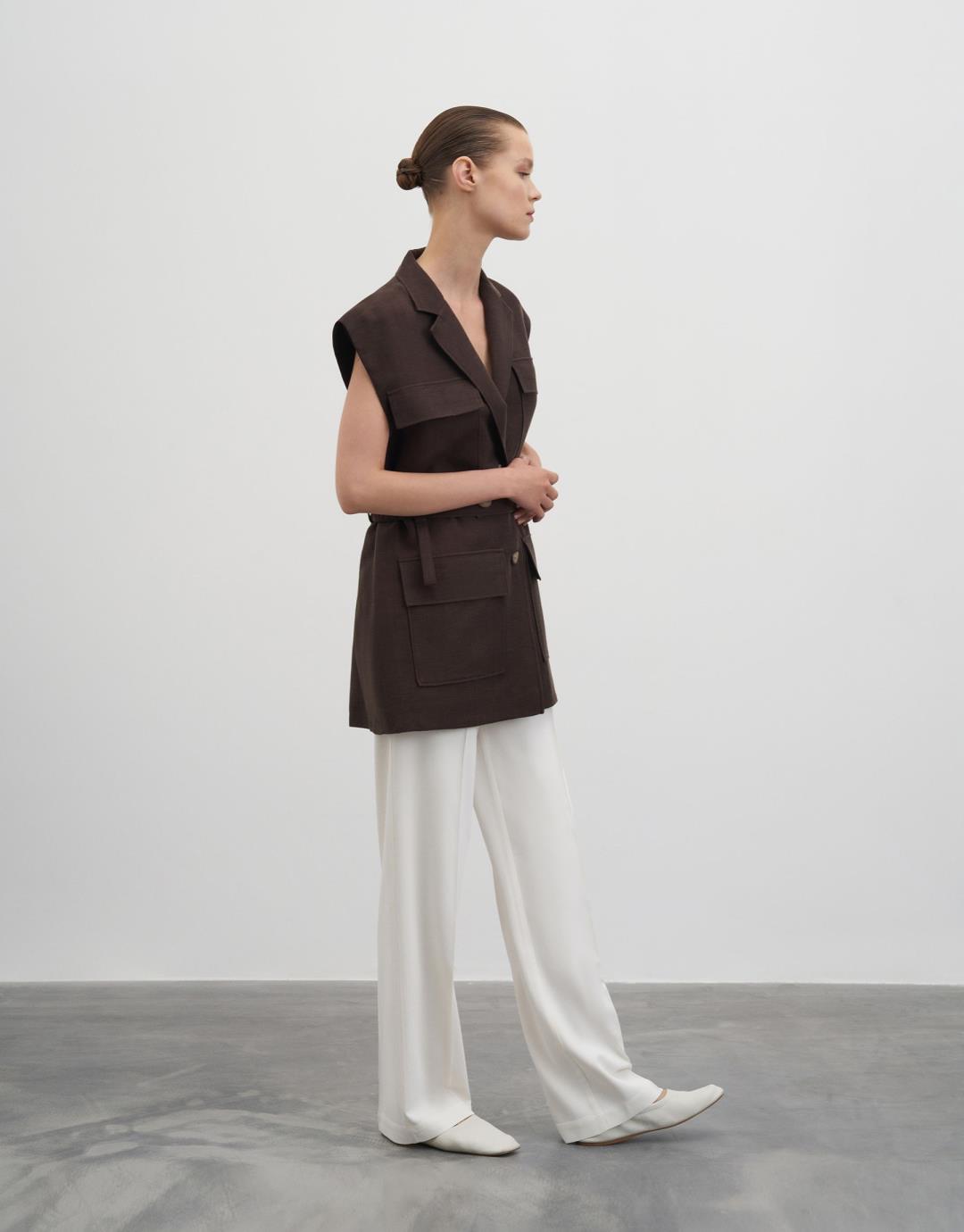 Fiber Content: %58LINEN %42CUPRO Lining: %100PES Model Size: 36 Model Height: 1.78 The product on the model is size S/M. Usage and Washing Instructions : – Dry cleaning. – No tumble drying. – Do not use to bleach. – Don't use with metal accesesories. – It's a delicate product. This fabric, which is one of the world's first vegan fabric collection, has been developed and produced in a way that is produced without harming nature and animals, is completely destructible in nature, and is easy to clean and use. We believe in the transformative power that clothes exert on those who wear them. But above all, we believe in responsibility for people and our world. For this reason, we do not perceive sustainability as a goal, but as a common axis of our business, connected with our entire environment. Our goal is to choose more environmentally and animal-friendly materials, to support processes with less environmental impact, and to reduce our footprint in nature. We manage to be closer to our goal every day: We are actively working to make fashion more responsible. We invite you to an age of elegant comfort where silky touch is possible with this special collection made of vegan fabrics that are environmentally and animal friendly.