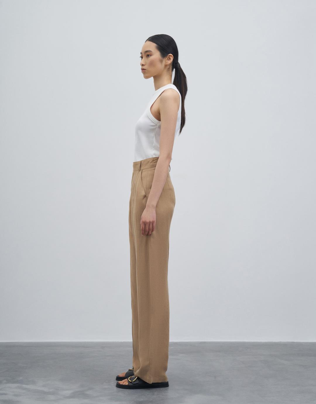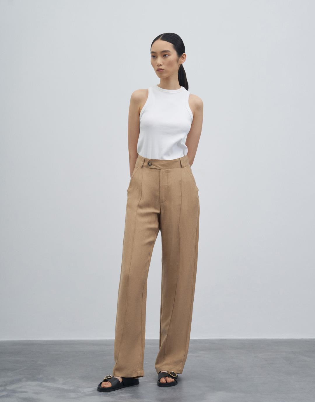 Fiber Content: %58 LINEN %42CUPRO Model Size: 36 Model Height: 1.76 The product on the model is size 36. Usage and Washing Instructions : – Max. Wash at 30°C. – Iron on medium heat. – Not tumble drying – Do not use to bleach. – Can dry cleaning. This fabric, which is one of the world's first vegan fabric collection, has been developed and produced in a way that is produced without harming nature and animals, is completely destructible in nature, and is easy to clean and use. We believe in the transformative power that clothes exert on those who wear them. But above all, we believe in responsibility for people and our world. For this reason, we do not perceive sustainability as a goal, but as a common axis of our business, connected with our entire environment. Our goal is to choose more environmentally and animal-friendly materials, to support processes with less environmental impact, and to reduce our footprint in nature. We manage to be closer to our goal every day: We are actively working to make fashion more responsible. We invite you to an age of elegant comfort where silky touch is possible with this special collection made of vegan fabrics that are environmentally and animal friendly.