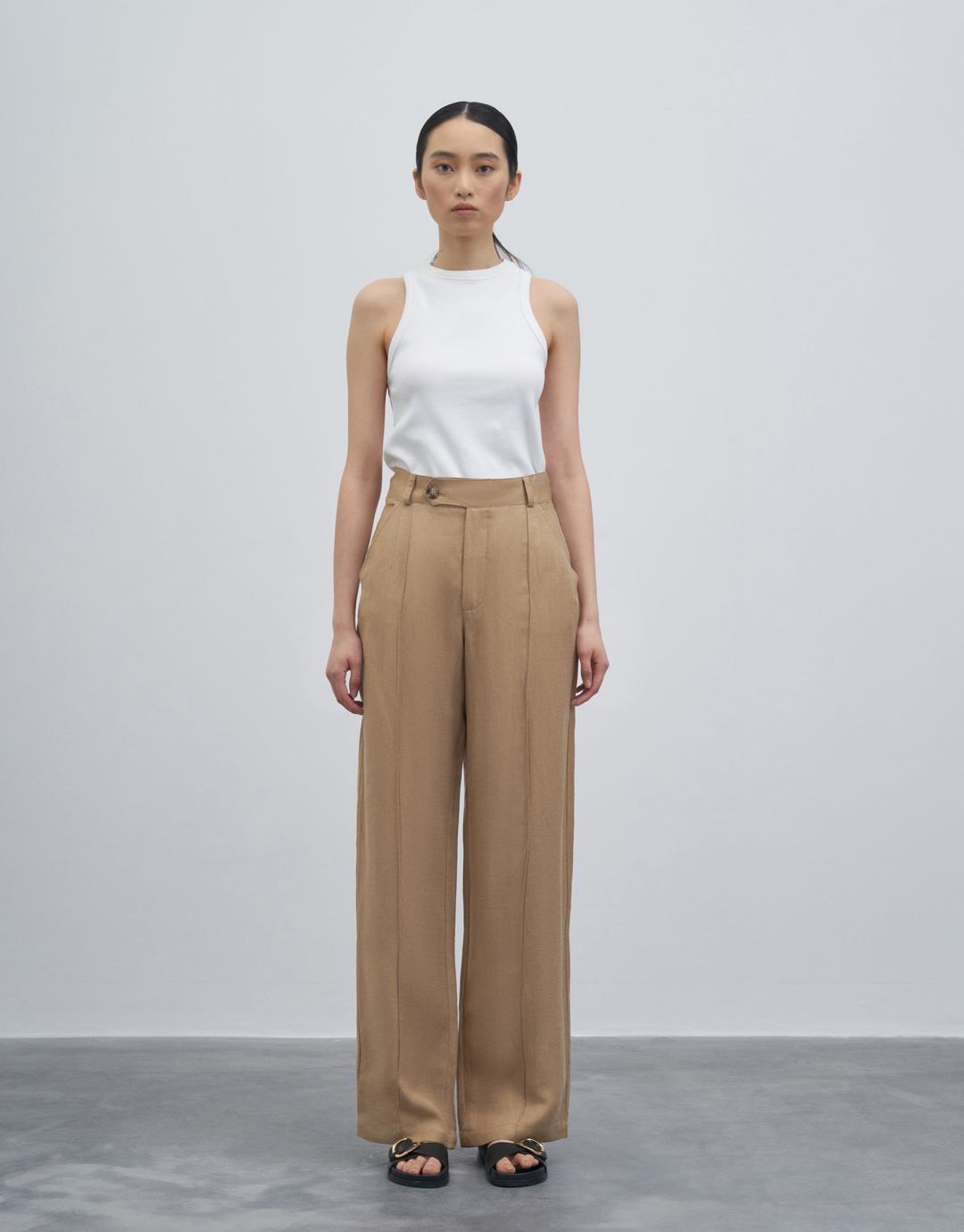 Fabric Content: 58%LINEN 42%CUPRO Product Details: Palazzo form. With pocket. Loose fit. High waist. Model Size: 36 Model Height: 1.78 The product on the model is size 36. Usage and Washing Instructions: – Wash at max. 30°C. – Iron at low temperature. – Tumble drying is not done. – Bleach is not used. – Dry cleanable. – Do not use with metal accessories. – It is a sensitive product. This fabric, which is one of the world's first vegan fabric collection, has been developed and produced in a way that does not harm nature and animals, is completely biodegradable, and is easy to clean and use. We believe in the transformative power that clothes have on the people who wear them. But above all, we believe in responsibility to people and our world. Therefore, we perceive sustainability not as a goal, but as a common axis of our business, connected to our entire environment. Our goal is to choose more environmentally and animal-friendly materials, to support processes with less environmental impact, and to reduce our footprint on nature. We manage to get closer to our goal every day: We actively work to make fashion more responsible. We invite you to an era of elegant comfort where a silky touch is possible with this special collection produced from vegan fabrics that are environmentally and animal friendly…