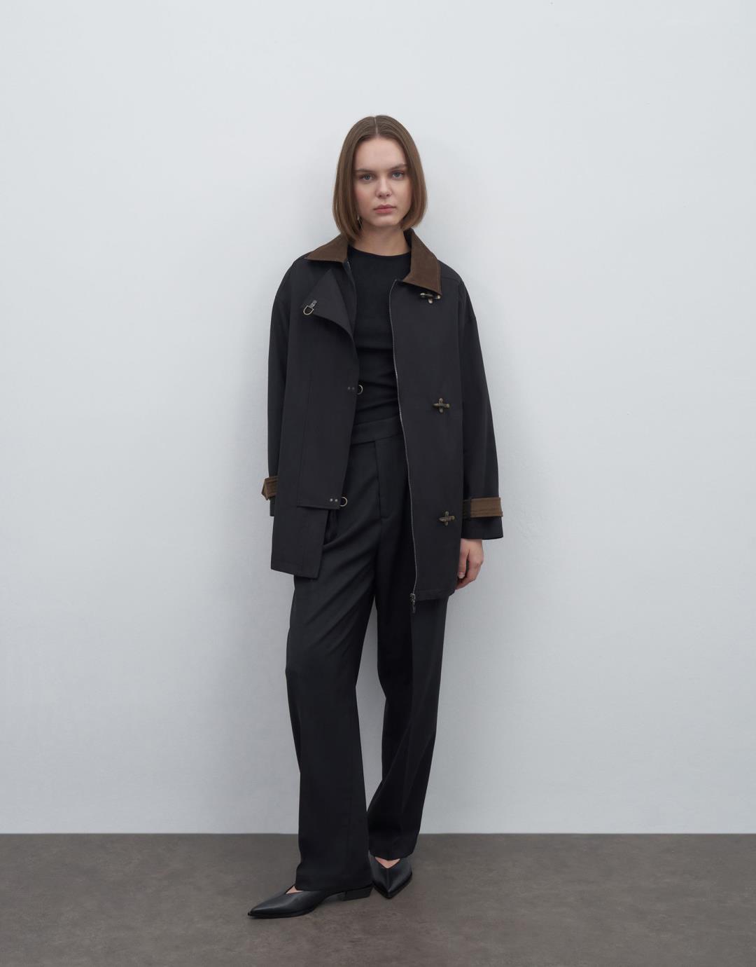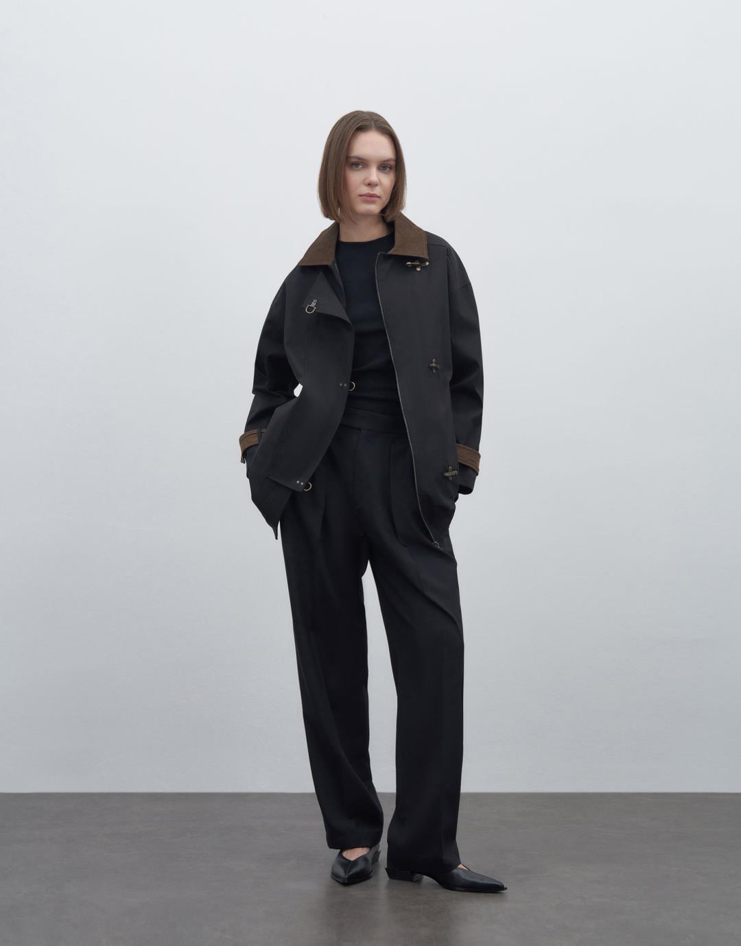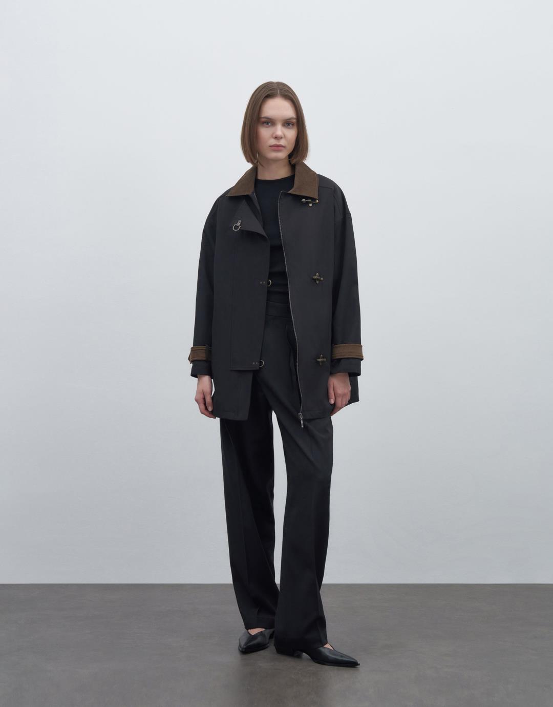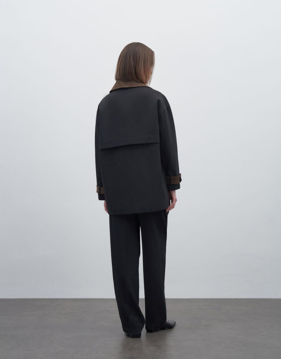 Fabric Content: 65%PES 35%COT Lining: 100%PES Product Details: Corduroy collar. With pocket. Quilted lining. Front zipper and hook detail. Model Size: 36 Model Height: 1.74 The product on the model is size 36. Usage and Washing Instructions: – Dry clean. – Tumble drying is not done. – Bleach is not used. – Do not use with metal accessories. – It is a sensitive product.