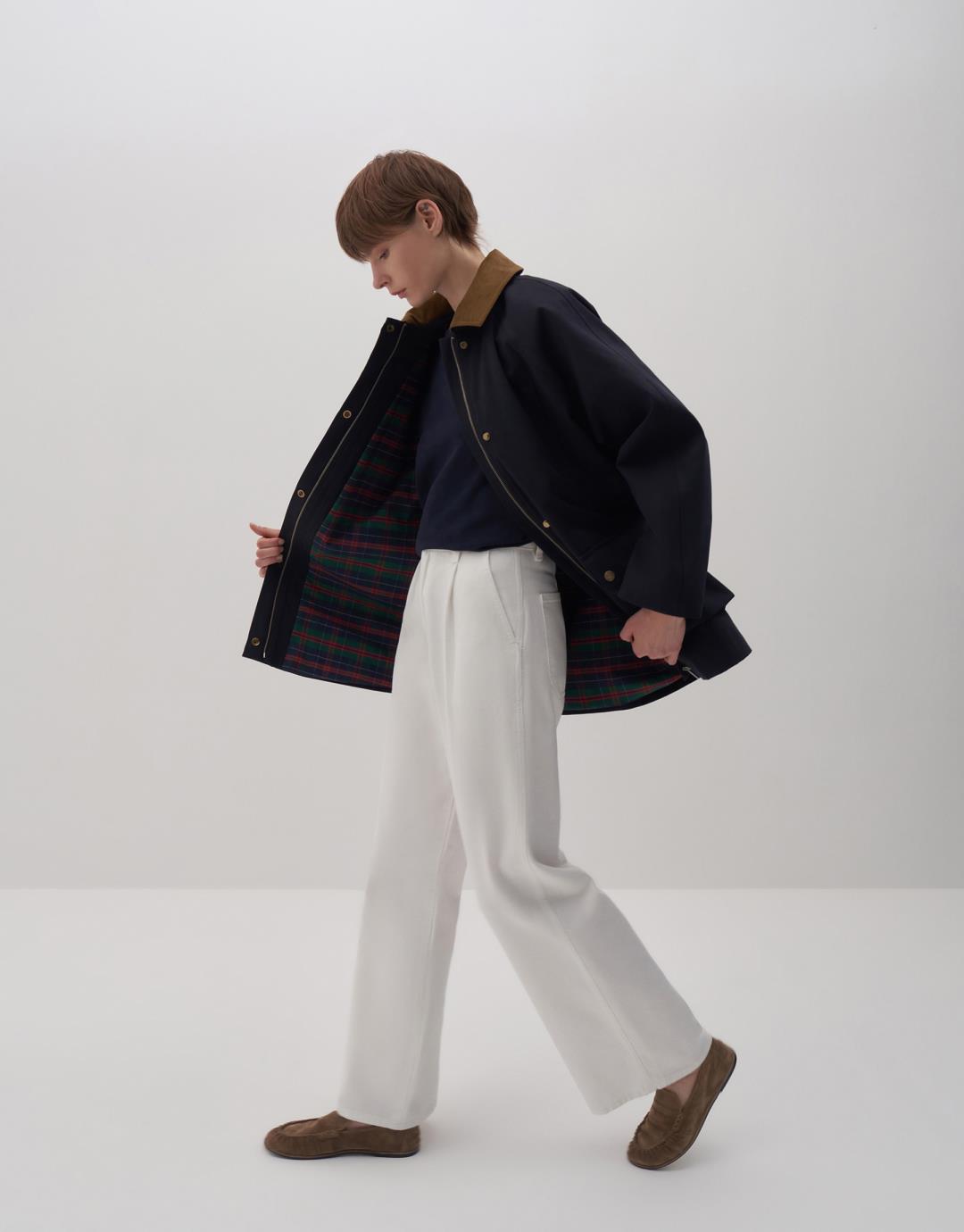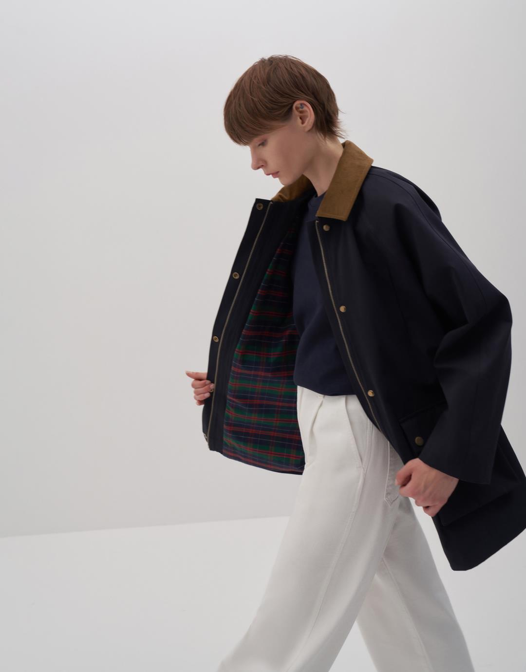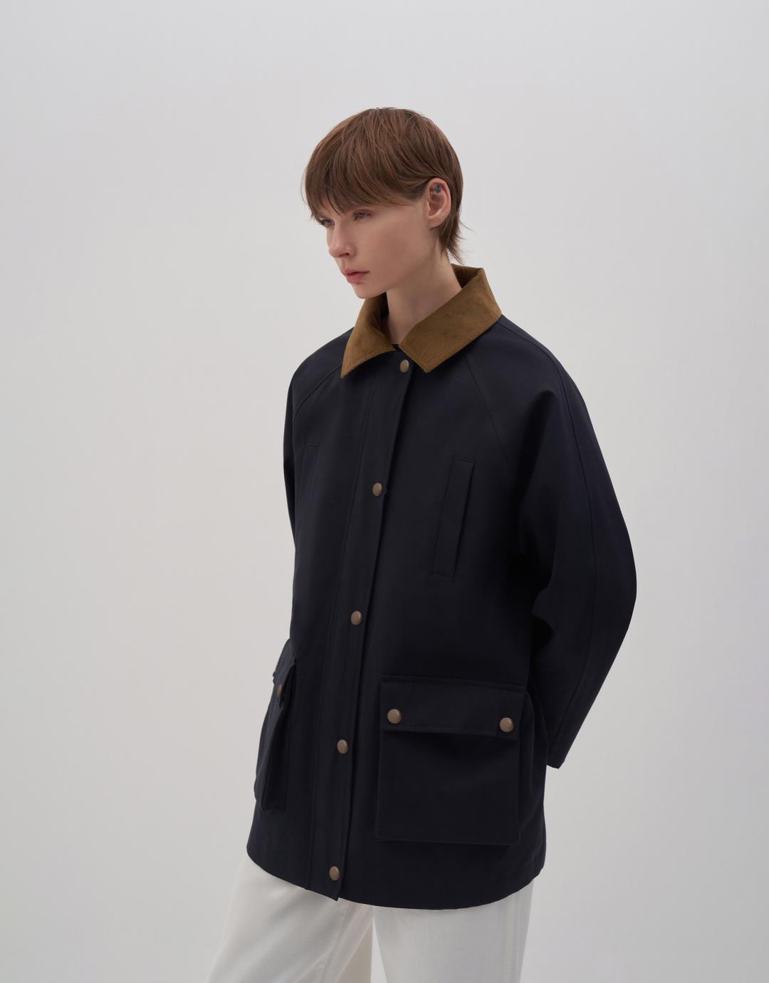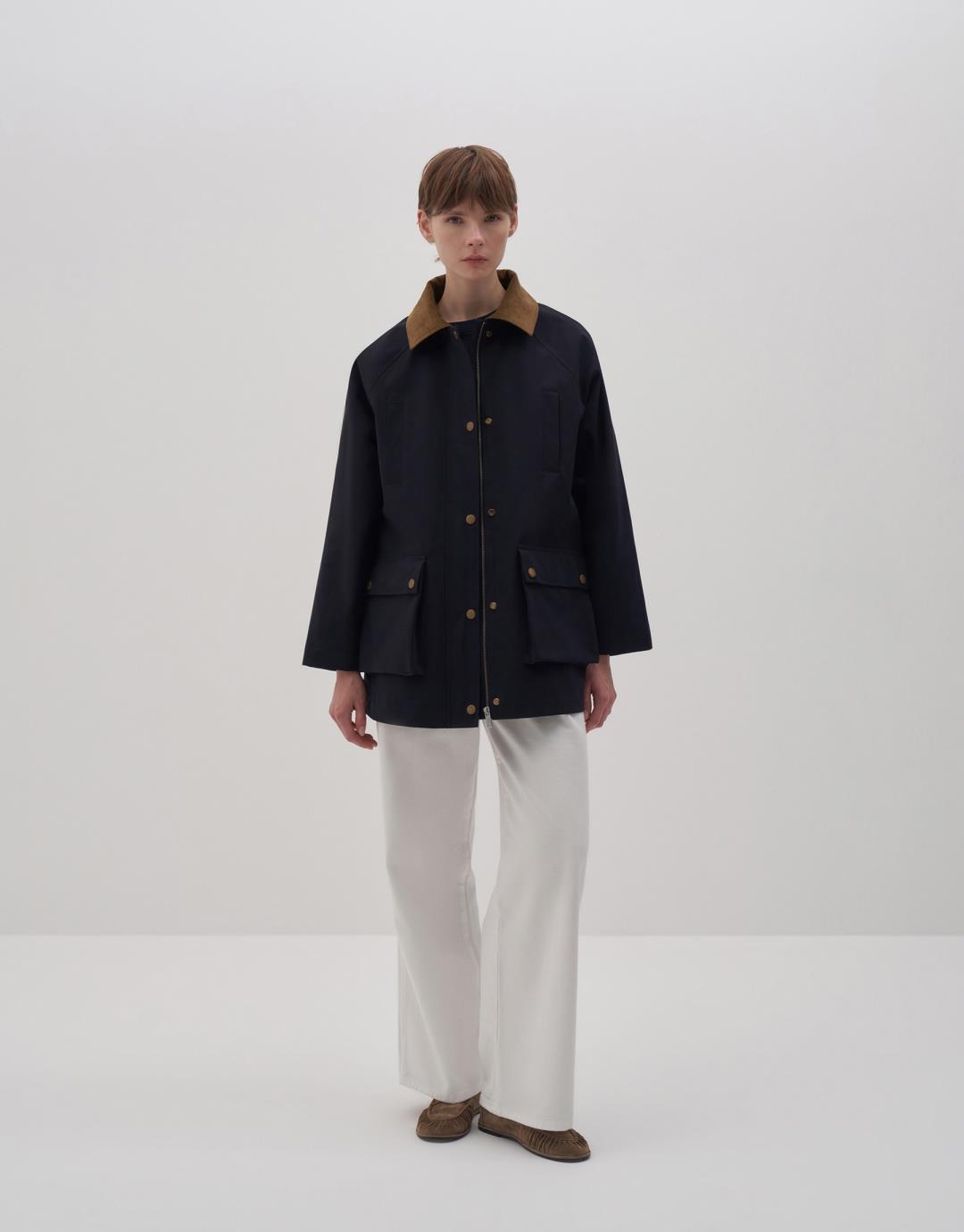 Fabric Content: NAVY BLUE: %65 CO %35 CO CAMEL: %61 COT %36 TEN %3 EA Product Details: Shirt collar. Contrast collar. Zippered and snap closure in front. Two snap closure bellows pockets. At chest level. Lined. Model Size: 36 Model Height: 1.78 The product on the model is S/M size. Usage and Washing Instructions: Tetrachloroethylene Dry Cleaning. Roller cleaning is not allowed. Tumble drying is not allowed. Bleach and whitener are not used.