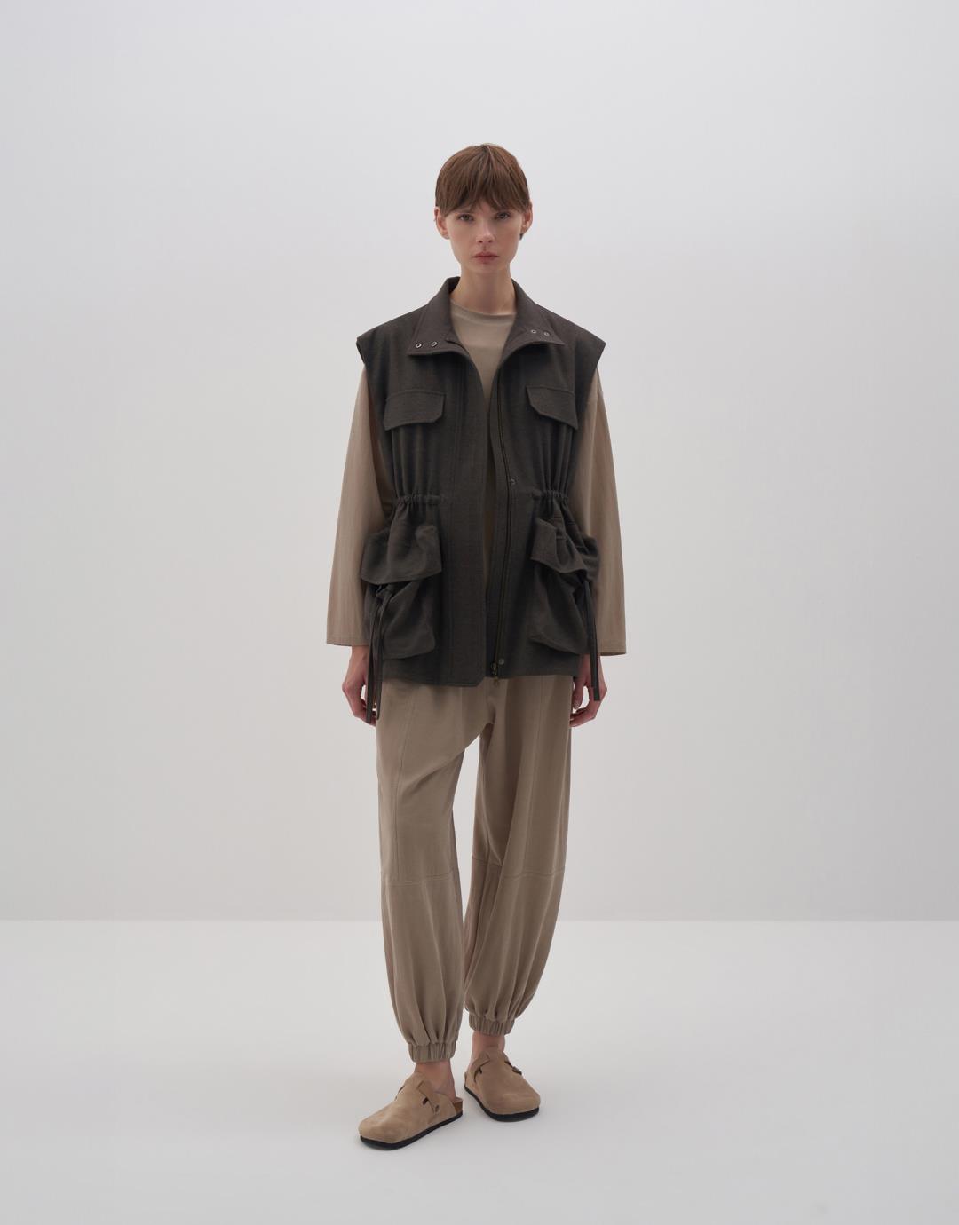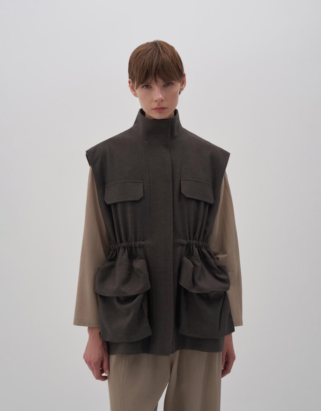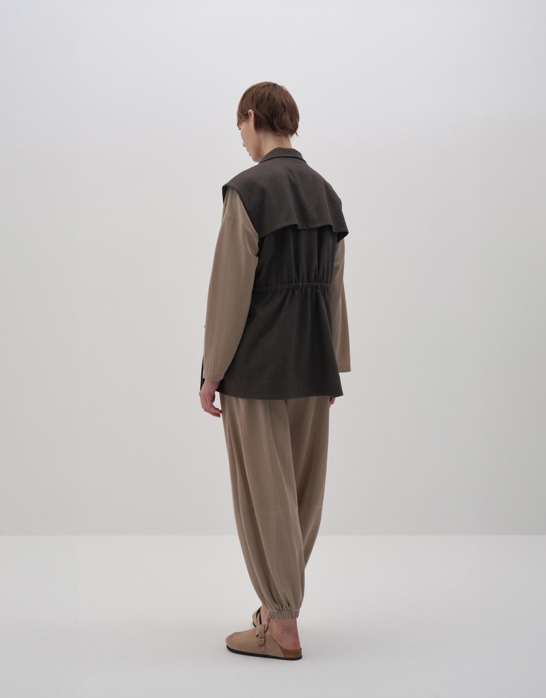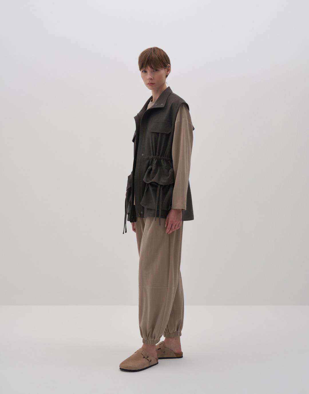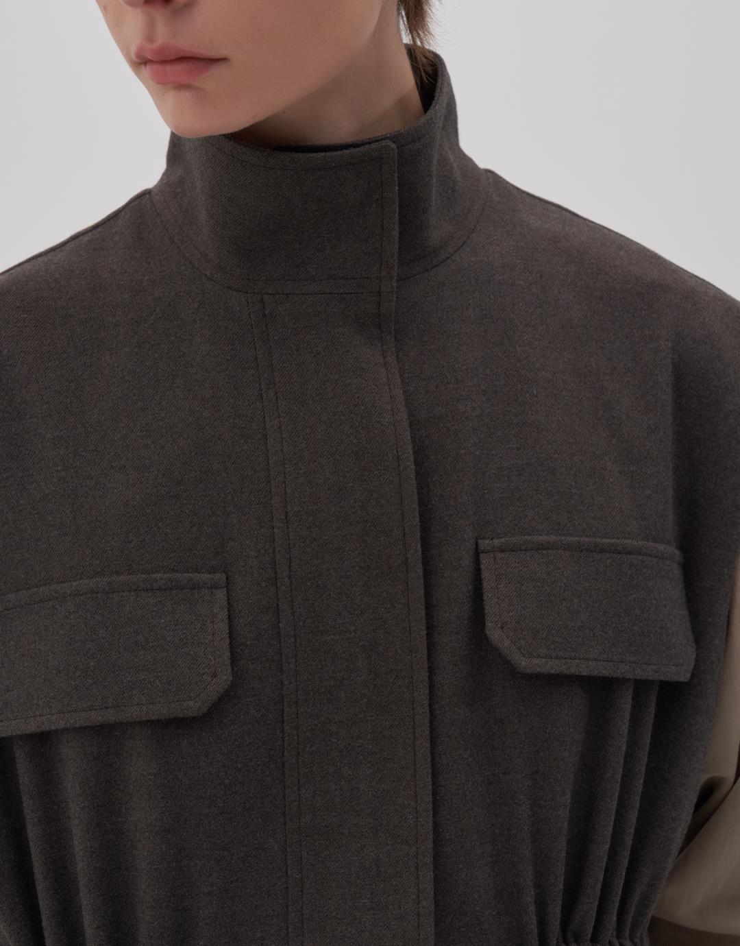 Fabric Content: 64 %PLY 33 %VIS 3 %LYC Product Details: Folding upright collar. The hidden patened snap is closed. Two pockets with bellows. Ornamental cover detail at chest level. Adjustable shrinkage detailed from the waist. Model Body: 36 Model Length: 1.78 The product on the model is S/m. Usage and Washing Instructions: Tetrakloroethylene dry cleaning. No roller cleaning is done. There is no drum drying. Bleach whitening is not used.