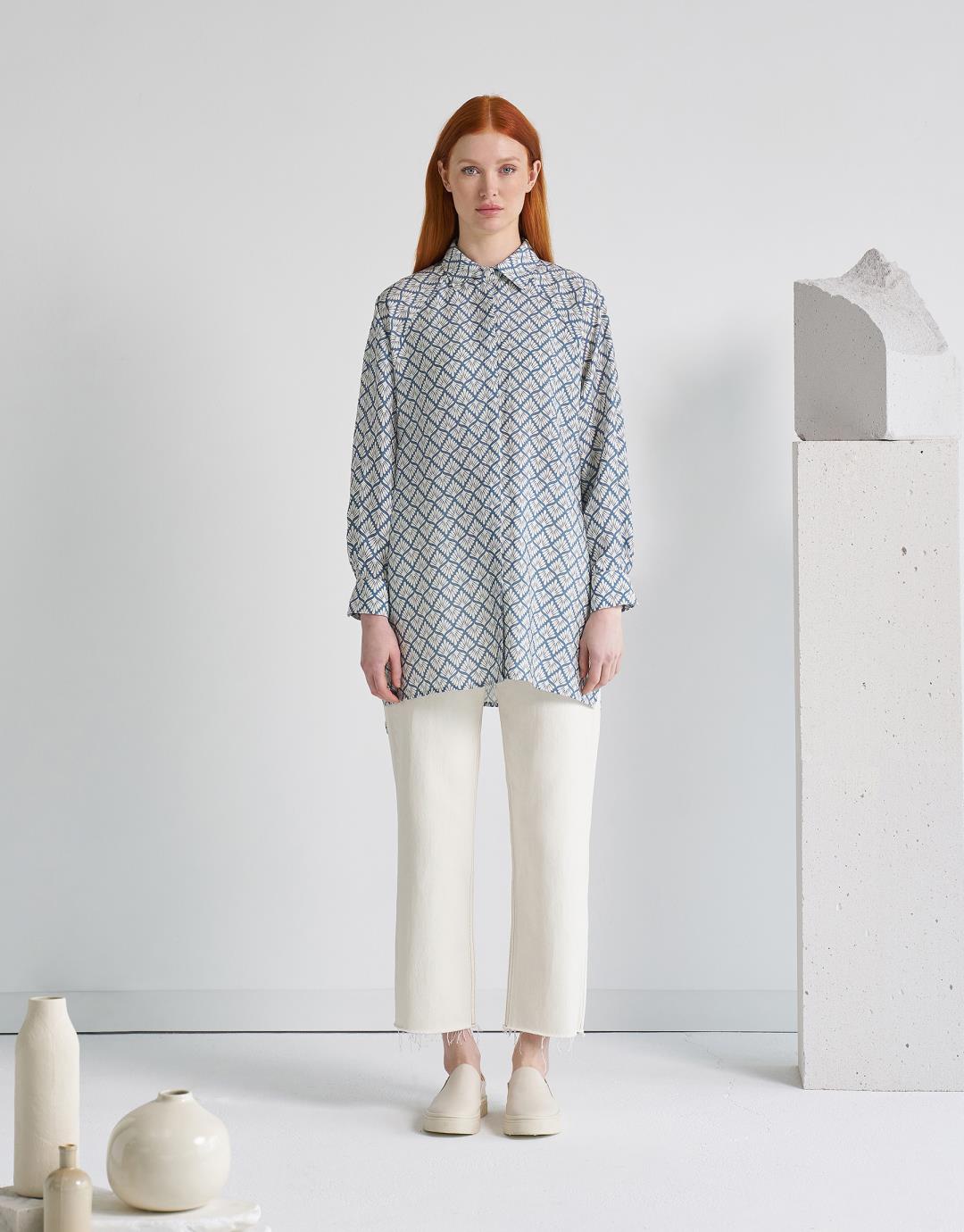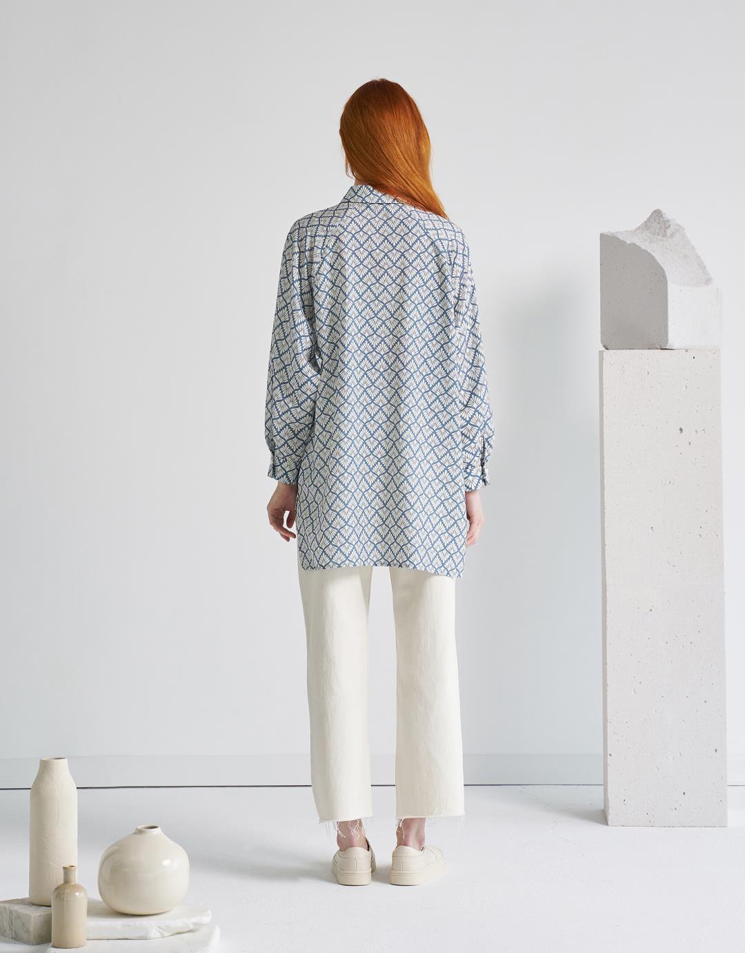 Viscose Printed Shirt – Baby Blue – 4025