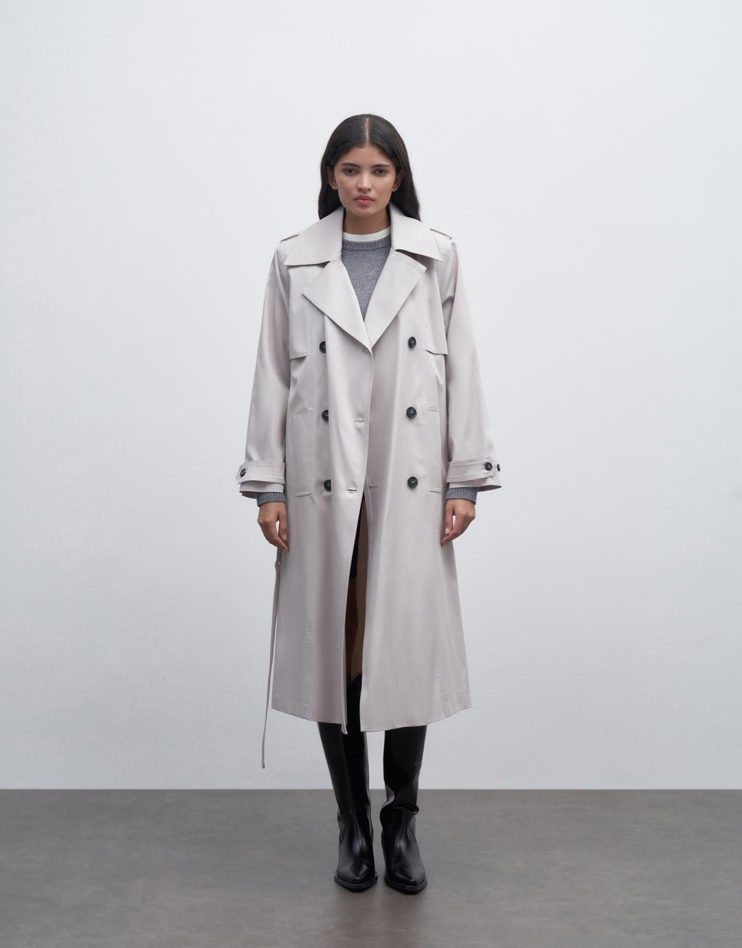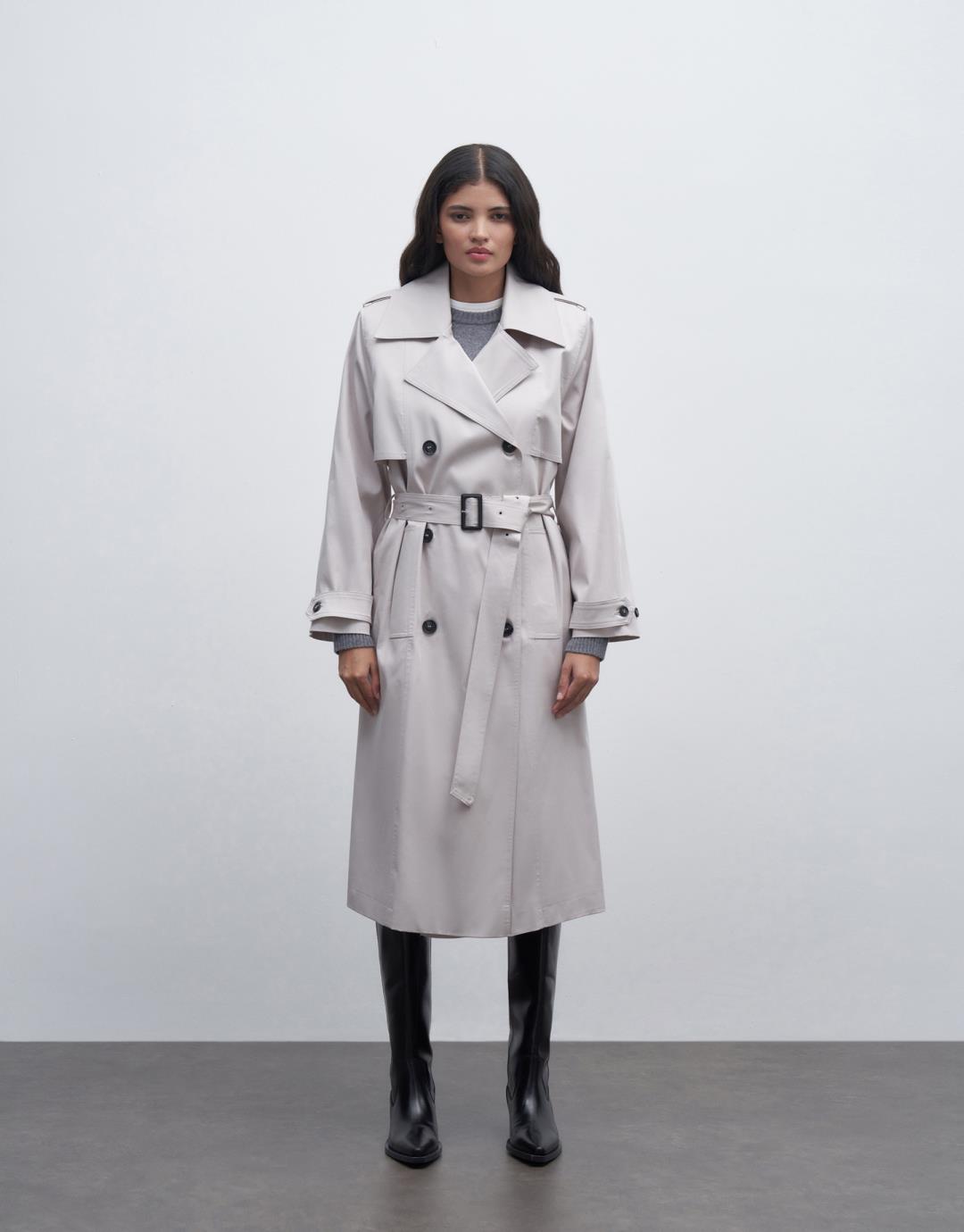 Fabric Content: 98% COTTON 2%EA Lining: 100%PES Product Details: Double Breasted Collar. Double buttoned. Long sleeve. Padded. Lined. With pockets and a belt. It has an oversize mold. It is recommended to choose 1 size smaller. Model Size: 36 Model Height: 1.78 The product on the model is size 38. Usage and Washing Instructions: – Dry clean. – Tumble drying is not done. – Bleach is not used. – Do not use with metal accessories. – It is a sensitive product.