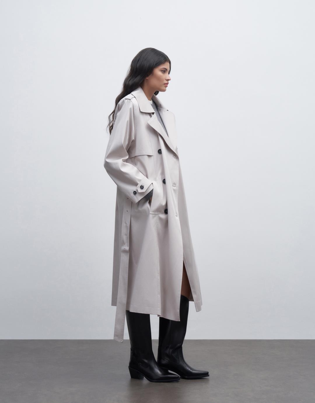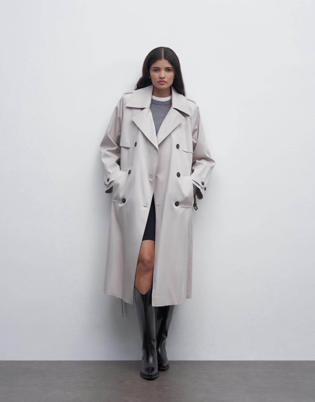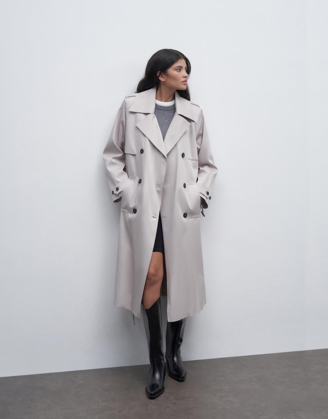 Fabric Content: 98% COTTON 2%EA Lining: 100%PES Product Details: Double Breasted Collar. Double buttoned. Long sleeve. Padded. Lined. With pockets and a belt. It has an oversize mold. It is recommended to choose 1 size smaller. Model Size: 36 Model Height: 1.78 The product on the model is size 38. Usage and Washing Instructions: – Dry clean. – Tumble drying is not done. – Bleach is not used. – Do not use with metal accessories. – It is a sensitive product.