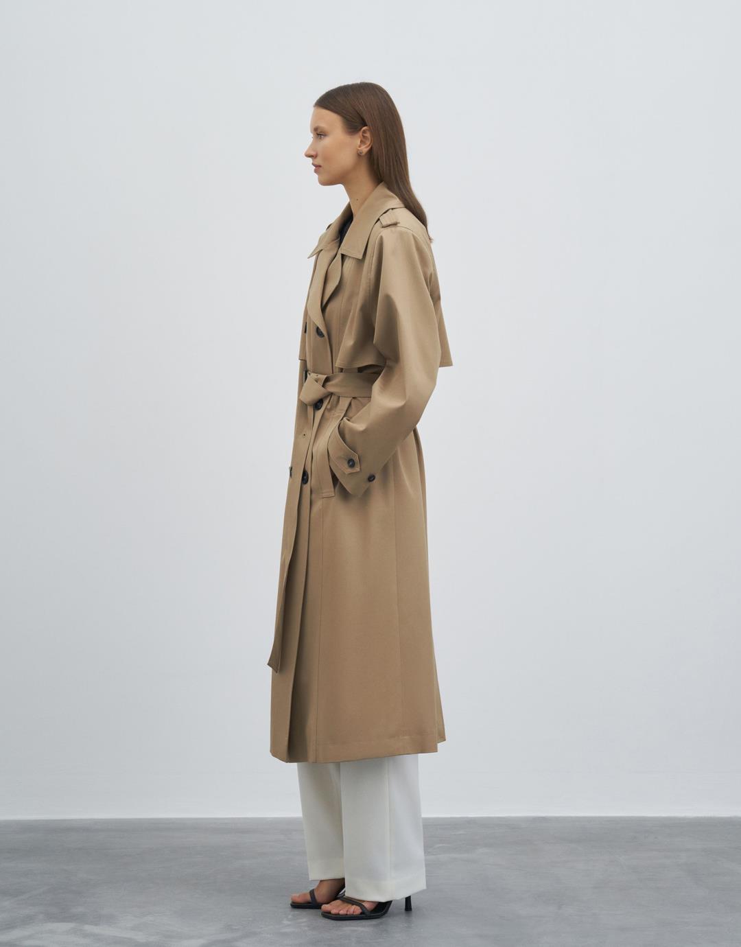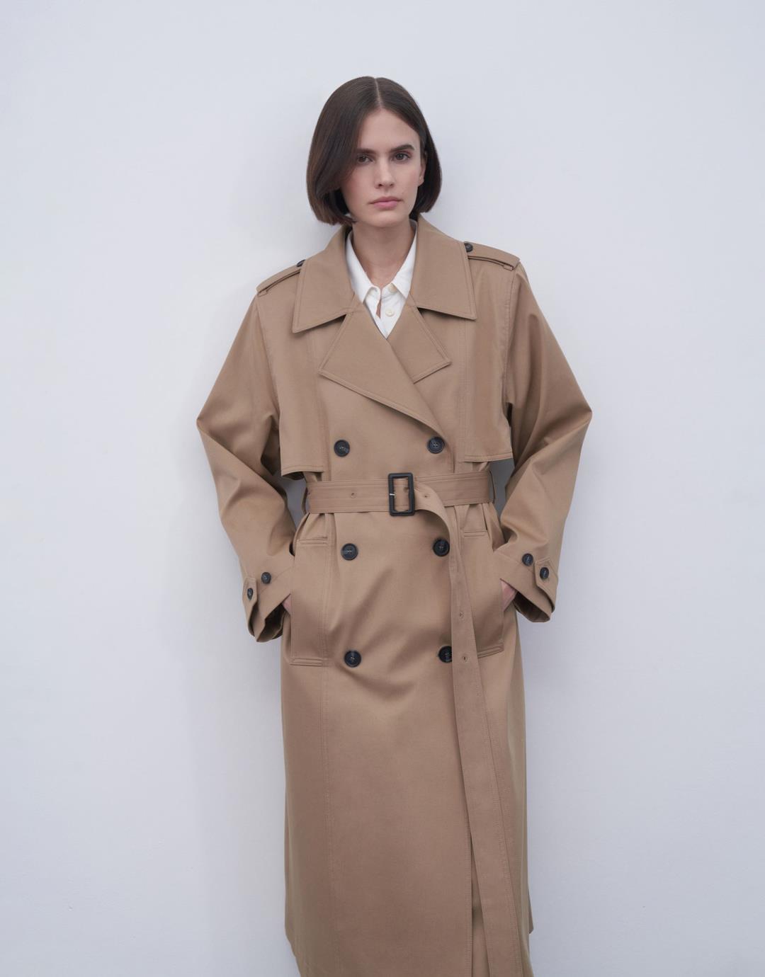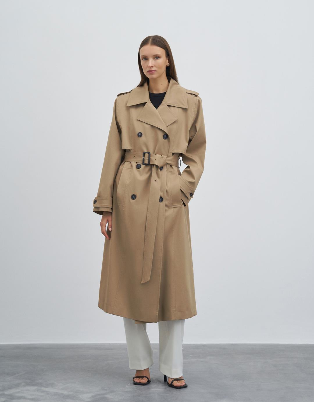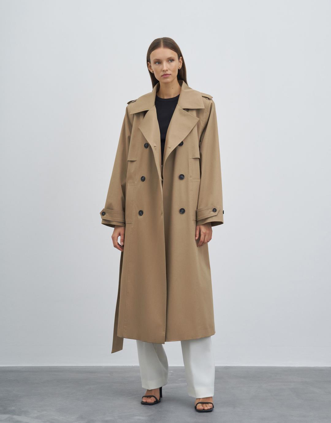 Fabric Content: 98% COTTON 2%EA Lining: 100%PES Product Details: Double Breasted Collar. Double buttoned. Long sleeve. Padded. Lined. With pockets and a belt. It has an oversize mold. It is recommended to choose 1 size smaller. Model Size: 36 Model Height: 1.78 The product on the model is size 38. Usage and Washing Instructions: – Dry clean. – Tumble drying is not done. – Bleach is not used. – Do not use with metal accessories. – It is a sensitive product.
