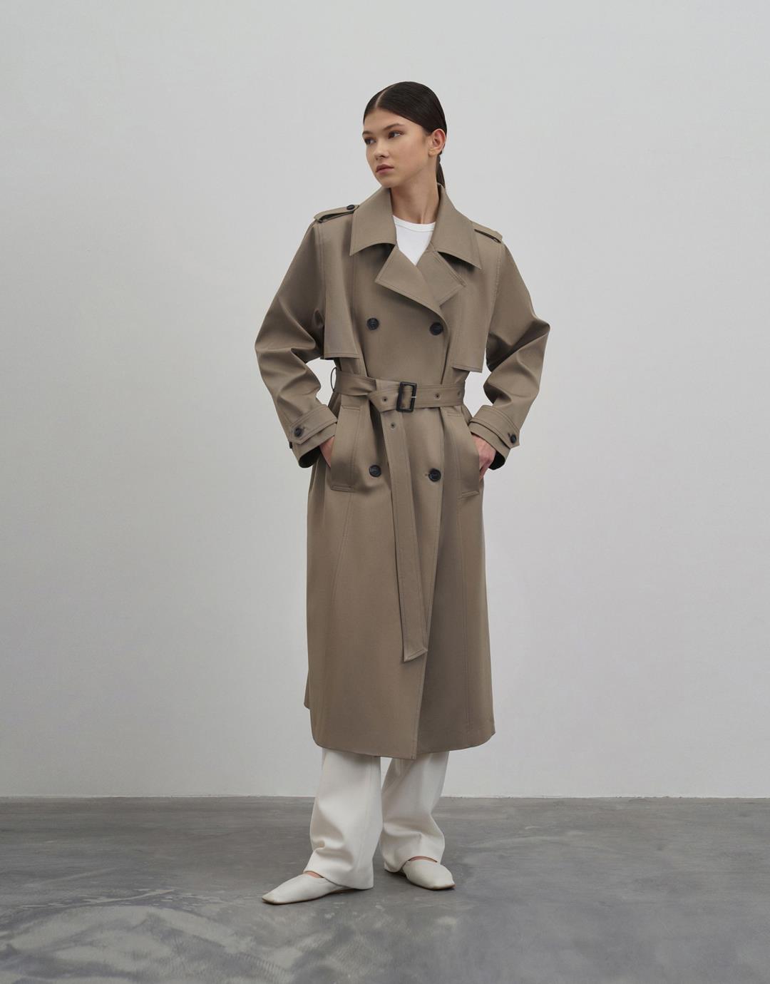 Fabric Content: 98% COTTON 2%EA Lining: 100%PES Product Details: Double Breasted Collar. Double buttoned. Long sleeve. Padded. Lined. With pockets and a belt. It has an oversize mold. It is recommended to choose 1 size smaller. Model Size: 36 Model Height: 1.78 The product on the model is size 38. Usage and Washing Instructions: – Dry clean. – Tumble drying is not done. – Bleach is not used. – Do not use with metal accessories. – It is a sensitive product.