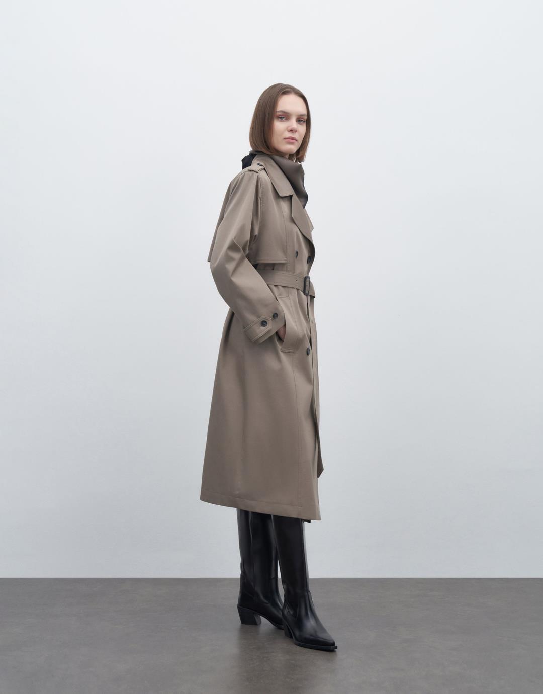 Fabric Content: 98% COTTON 2%EA Lining: 100%PES Product Details: Double Breasted Collar. Double buttoned. Long sleeve. Padded. Lined. With pockets and a belt. It has an oversize mold. It is recommended to choose 1 size smaller. Model Size: 36 Model Height: 1.78 The product on the model is size 38. Usage and Washing Instructions: – Dry clean. – Tumble drying is not done. – Bleach is not used. – Do not use with metal accessories. – It is a sensitive product.