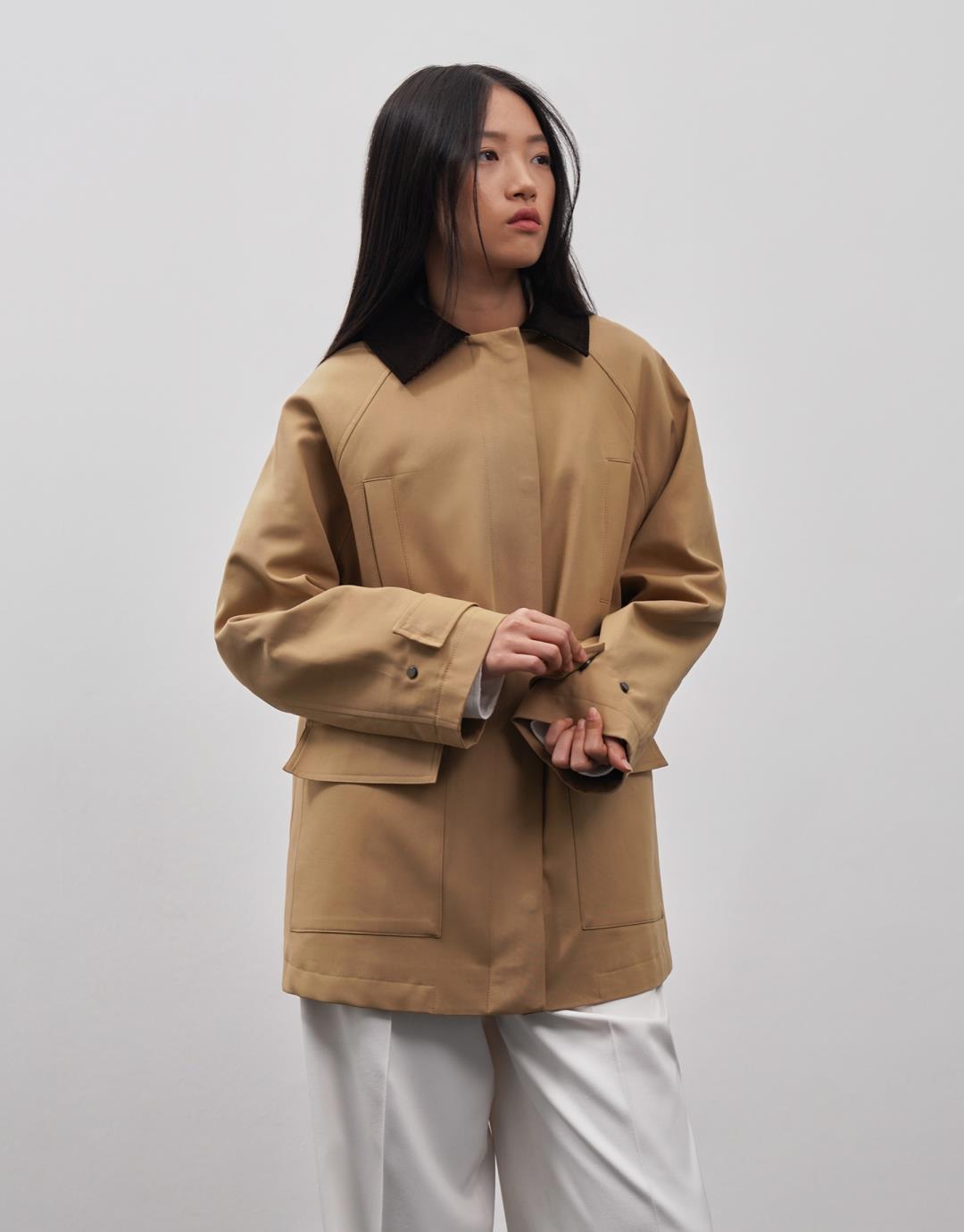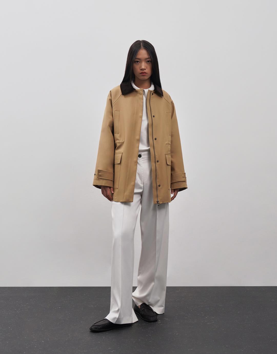 Fabric Content: 85% COT 15% PES Product Details: Shirt collar. Front half zipper closure. Long sleeves. Ribbed cuff detail. Model Size: 36 Model Height: 1.78 The product on the model is S/M size. Usage and Washing Instructions: Tetrachloroethylene Dry Cleaning. Roller cleaning is not done. Tumble drying is not done. Bleach whitener is not used.