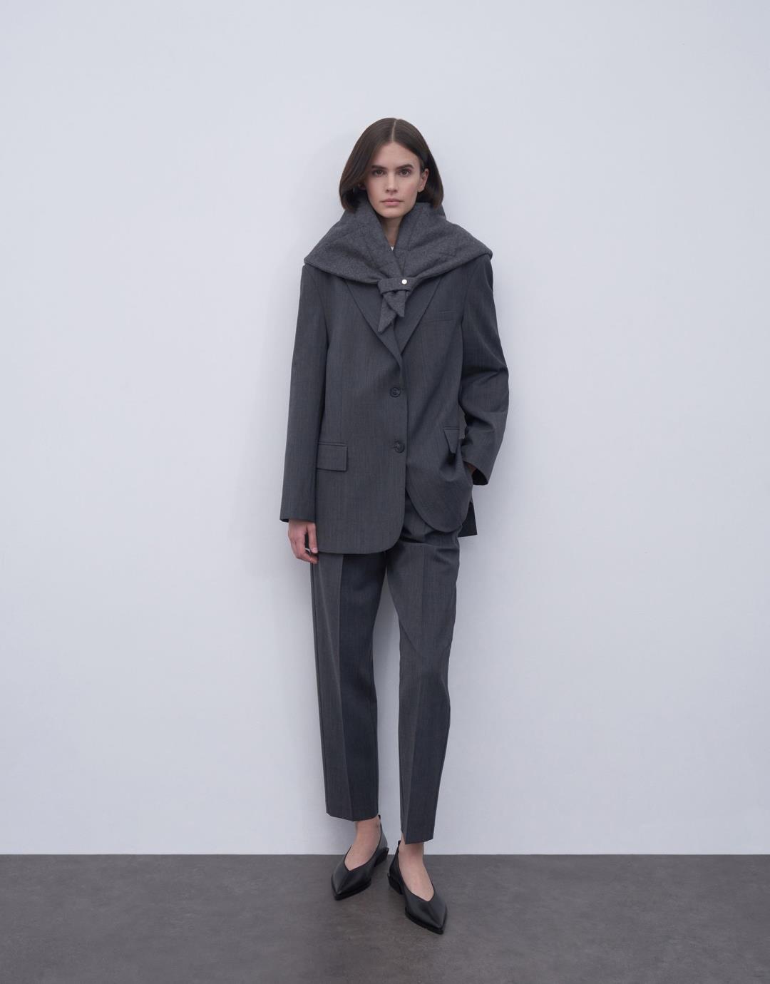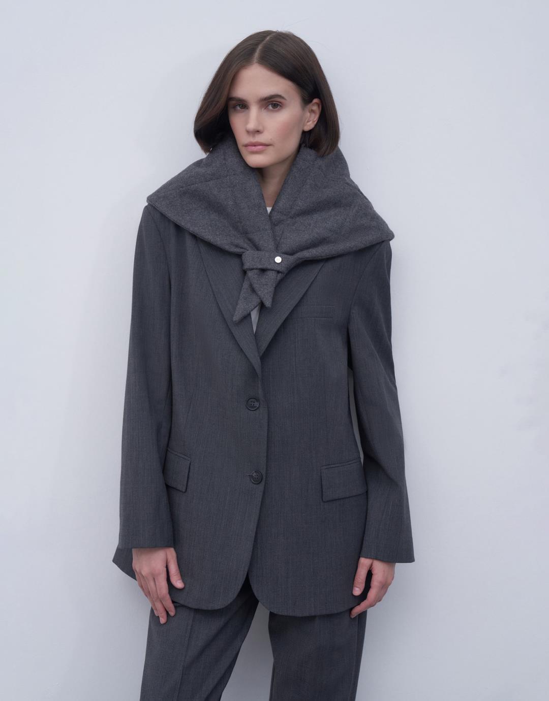Fabric Content: 43%WOOL 43%PES 9%AF 5%PA Product Details: Quilted wool textured scarf. Usage and Washing Instructions: Tetrachlorethylene Dry Cleaning. Roller cleaning is not possible. Tumble drying is not done. No bleach is used.