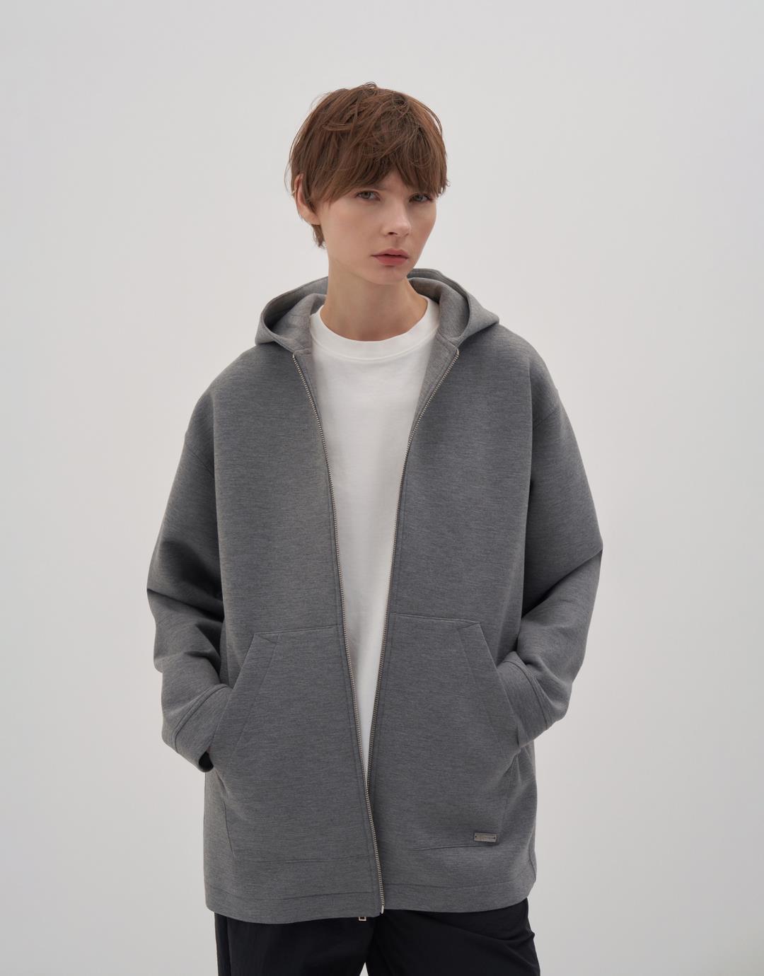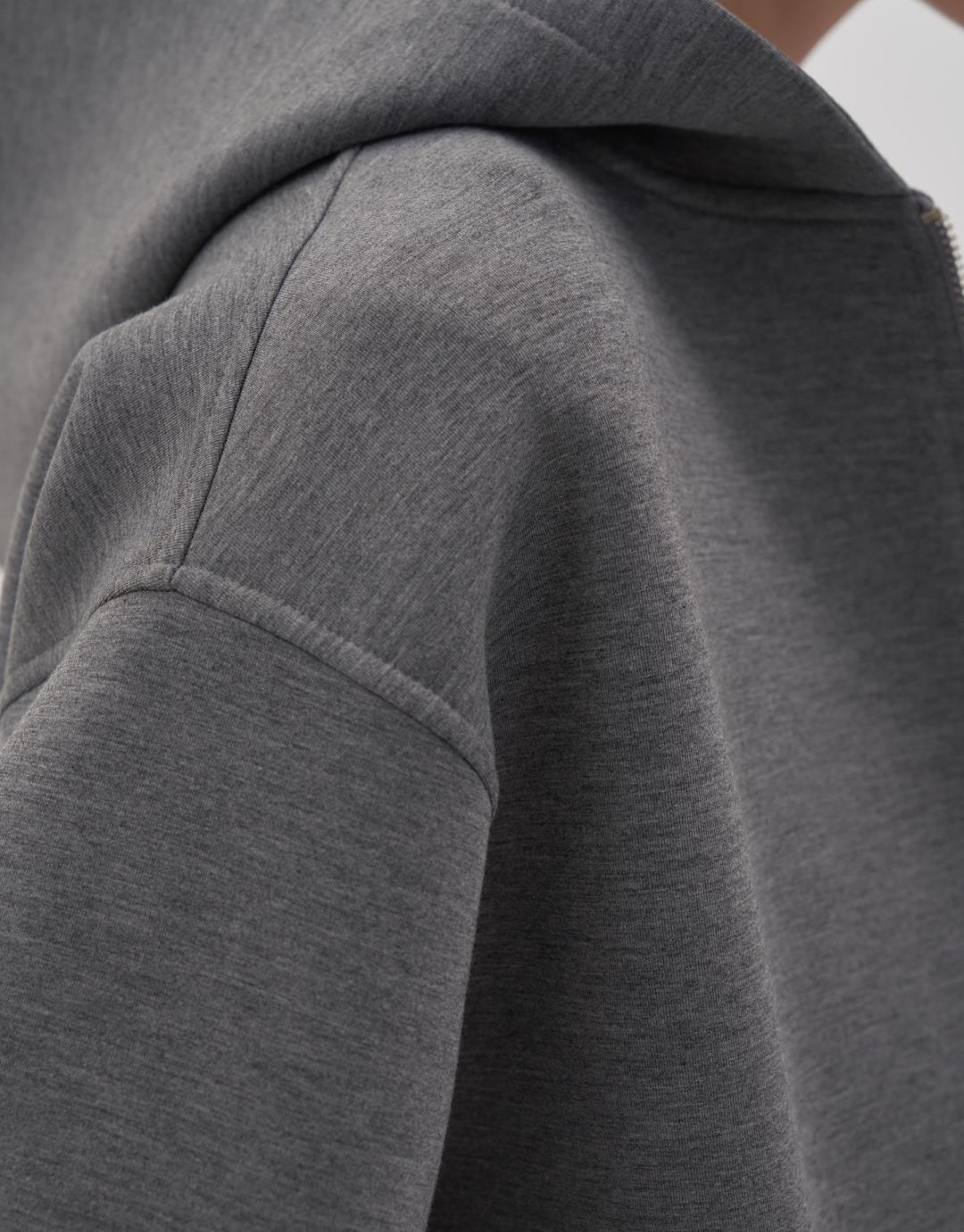Zippered Puffy Scuba Sweatshirt – Grey – 23377-25