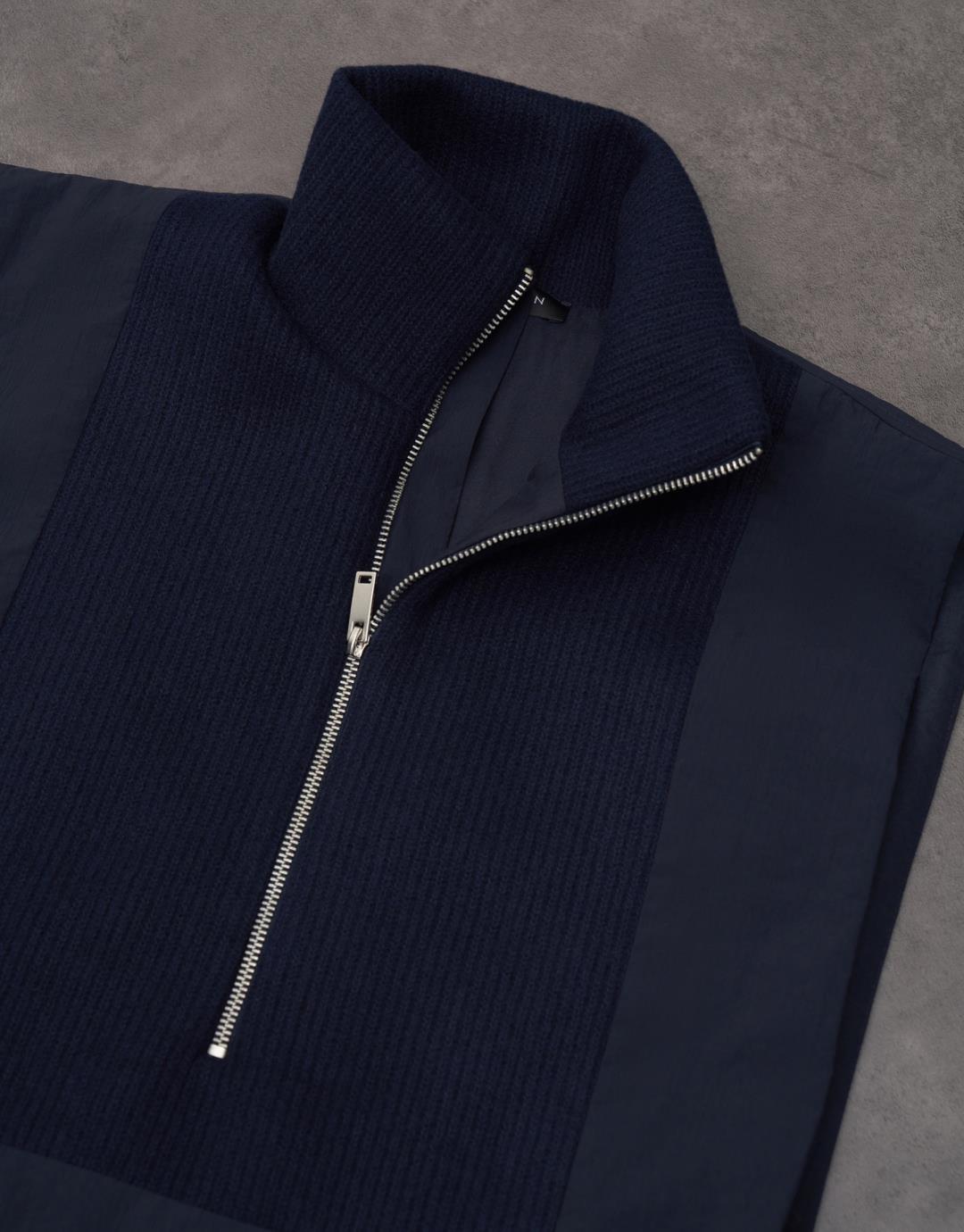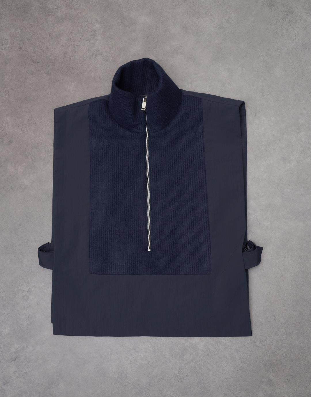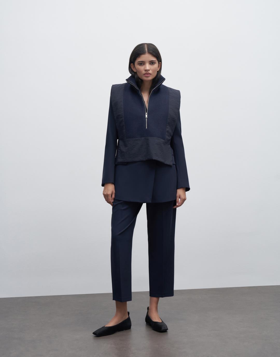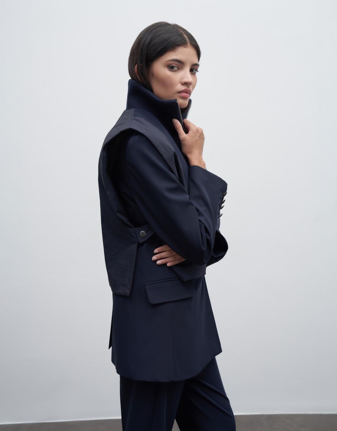 Fabric Content: EXTERIOR 100% PES Knitwear 35% WOOL 65% PES Product Details: Front zipper closure. It should close with snaps on the sides. Model Size: 36 Model Height: 1.78 The product on the mannequin is size S/M. Usage and Washing Instructions: Tetrachlorethylene Dry Cleaning. It is not washed. Roller cleaning is not possible. Tumble drying is not done. Bleach is not used.